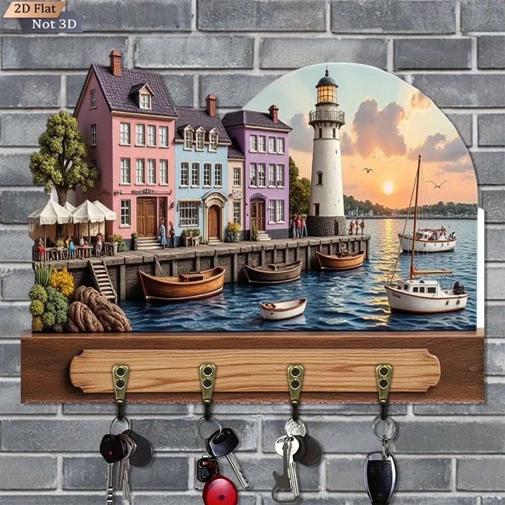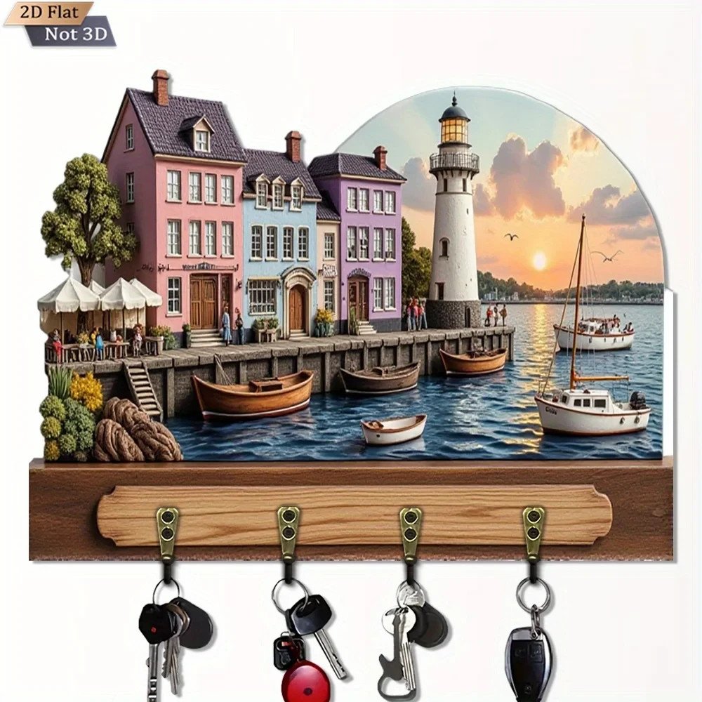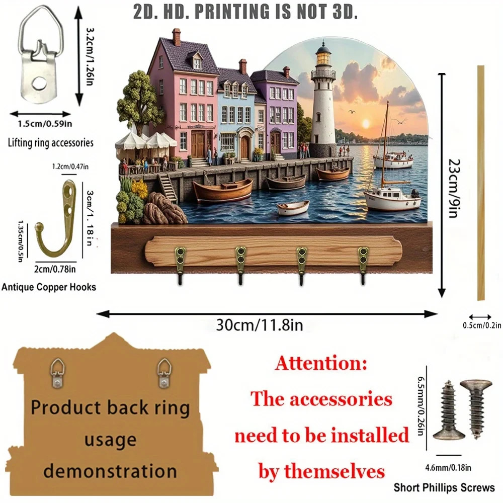 Wall Keychain 30cm - Elegant Coffee Shop Organizer 2D 4 Hooks Entrance