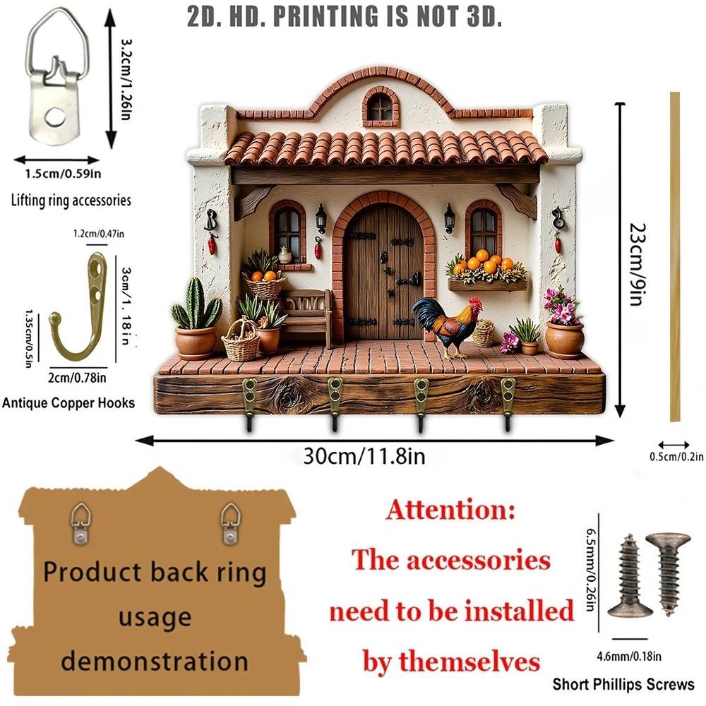 $ 15.3930cm Wall Key Holder – Tuscan Landscape 2D Organizer 4 Hooks Entrance