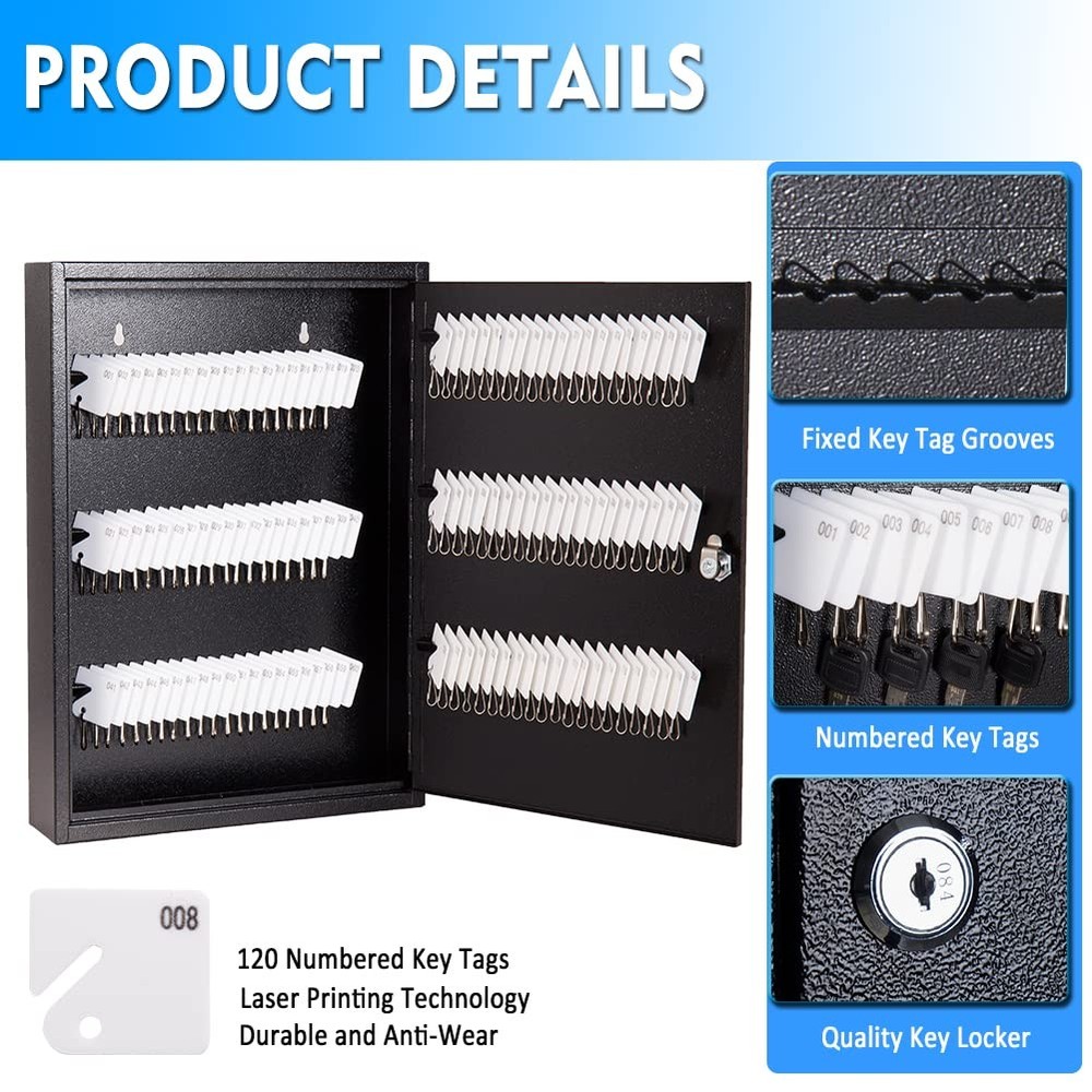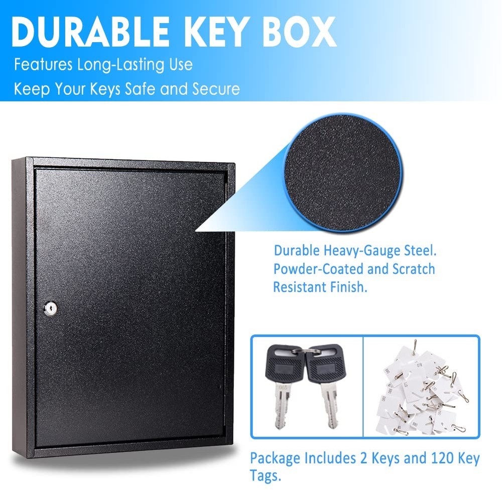 Key Box Wall Mount 120 Position Metal Valet Key Cabinet Lock Box with Key Tags, KEY STORAGE BOX: The 120 position key lock box from UMEKEN features a groove-style cabinet that allows you to hang individual keys or multiple keys with the included key tags, makes key organization easy and convenient. VERSATILE KEY CABINET: Groove-style shelves and numbered key tags keep your keys well organized. Ideal for home, office, property managers, apartment complexes, car lots, car dealerships, repair shops, and many more. DURABLE CONSTRUCTION: Made of durable heavy-gauge steel, with a powder-coated and scratch resistant black finish, the key organizer lock box will keep your keys safe and secure. The stable structure also features long-lasting use. WALL MOUNT DESIGN: The key locker has pre-drilled mounting holes and mounting hardware make for easy installation. Package also includes 120 numbered key tags and 2 keys. Box Dimension: 14" x 3.15" x 17.13" SATISFIED SERVICE: As your satisfaction is of the utmost importance to us. UMEKEN is committed to offering you premium products and caring service. Please feel free to contact us if you have any questions about our products. SATISFIED SERVICE: As your satisfaction is of the utmost importance to us. UMEKEN is committed to offering you premium products and caring service. Please feel free to contact us if you have any questions about our products. Shipping We offer FREE shipping on all orders! We ship within Three business days of payment, usually sooner. We use a selection of shipping services such as UPS, FedEx, USPS etc. We only ship to the lower 48 states, no APO/FPO addresses or PO Boxes allowed. Local pickups and combined shipping options are not provided at this time. Return You can return a product for up to 30 days from the date you purchased it. Any product you return must be in the same condition you received it and in the original packaging. Please keep the receipt. Payment We accept payment by any of the following methods: PayPal Please pay as soon as possible after winning an auction, as that will allow us to post your item to you sooner! Feedback Customer satisfaction is very important to us. If you have any problem with your order, please contact us and we will do our best to make you satisfied. Contact Us If you have any queries, please contact us via ebay. We usually respond within 24 hours on weekdays. Please visit our eBay store to check out other items for sale! Thank you for shopping at our store.
