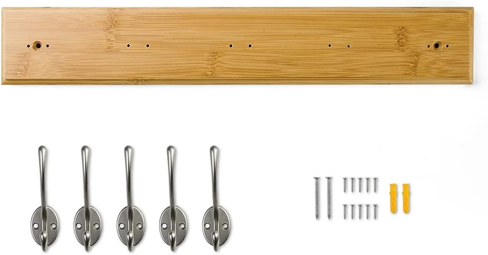Store New Arrivals Add to Favorite View Feedback Contact Wall Mount Bamboo Coat Rack, 17 Inch 5 Double Hooks, Natural Description Weight Capacity Maximum 22 Pounds Mounting Type Wall Mount Item Dimensions 17.72 x 2.96 x 1.96 inches Color Natural Included Components Mounting Hardware Material Metal, Bamboo Material Type Metal, Bamboo Weight Supported 22 Pounds Model Number JH-HR2011-N5 Minimum Weight Capacity 22 Pounds Item Weight 0.54 Kilograms Number of Hooks 5 Shape Irregular shape Recommended Uses For Product Key Hanger, Hat, Coat Finish Types Painted Additional Features Heavy Duty Finish Type Painted Style Name Rustic Size 5 hooks(17 inch) - 1-pack [Size]17 inches long, width is about 4.3 inches, provide a big space for you to hanging items [Details]Wall-mountable coat rack with bamboo base and 5 modern double metal hooks, perfect for organization and storage of plenty items [Materials]Made of bamboo and metals, health paint, elegant qualities, natural eco-friendly materials with no smell [Easy installation]Screws and anchor come with package, providing perfect outlook and easy installation [Heavy duty]With max weight capacity of about 22 pounds, it can hold heavy stuffs and offer more hanging choices Product Description Specifications Size-Approximately 17-Inch long Width-around 2.8-Inch Material: Bamboo; Metal; Screw: stainless steel Weight: 1.02 lbs Note: please install it after you read the installation Details It’s very heavy-duty and rust-resistant. There will not be any problem for install in the bathroom, bedroom or kitchen. Function It can save so many space for you, perfect for the storage. Style Featuring a simplified European style, it’s simple but beauty and attractive. Installation First, check if the part of the rack is complete. We have 1 piece base + 5 hooks + 10 little screws + 3 large screws + 3 plastic screw anchor. Second, measure the place you want to install in, make sure you have enough room to put it. Third, put the base on the wall and keep it parallel to the ground, mark the 3 holes spacing and then drill 3 holes on the wall. Fourth, put the 3 plastic screw anchor on each hole, put on the base, drive the screws into the hole. Fifth, pick up the hook, aim at the small hole, and put the screw in. Finally, make sure all the screws are tightened and don’t shake, that will do it. ABOUT US We offer the best prices around on high quality products. Our E-store includes media such as books, movies, music and games while offering electronics, toys, sporting apparel, clothing, tools, general home, garden items and more. SHIPPING We are always working hard to ensure your package arrives as soon as possible. Please understand that some factors like weather, high postal traffic, and the performance of shipping companies are outside of our control. We offer free shipping to the lower 48 states and ship within 2 business days of payment, usually sooner. We do not accept P.O. Boxes. Please provide a physical address. For shipping outside of the continental USA, we only use eBay's Global Shipping Program.The item is shipped to KY and then sent to the rest of the world. International customers are responsible for all duties and taxes. Continue to check out in order to calculate costs for shipping the item to your country. Messages regarding eBay's Global Shipping Program MUST be directed at eBay EXCLUSIVELY. RETURNS We offer a 30-Day Return Policy on items which you are not completely satisfied with. You have the option for a full-refund or an exchange of the item. No returns are available on items shipped outside of the USA. PAYMENT We accept PayPal. CONTACT US This page content is yet to come Please ad us to your favorite seller and visit again later Thank You CUSTOMER SATISFACTION We try our very best to make sure every customer is completely satisfied. If there's a problem, message us! We're happy to help. WE ACCEPT Copyright © 2021 AutoDS. | All Rights Reserved