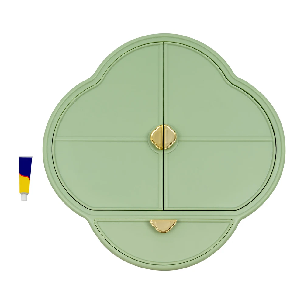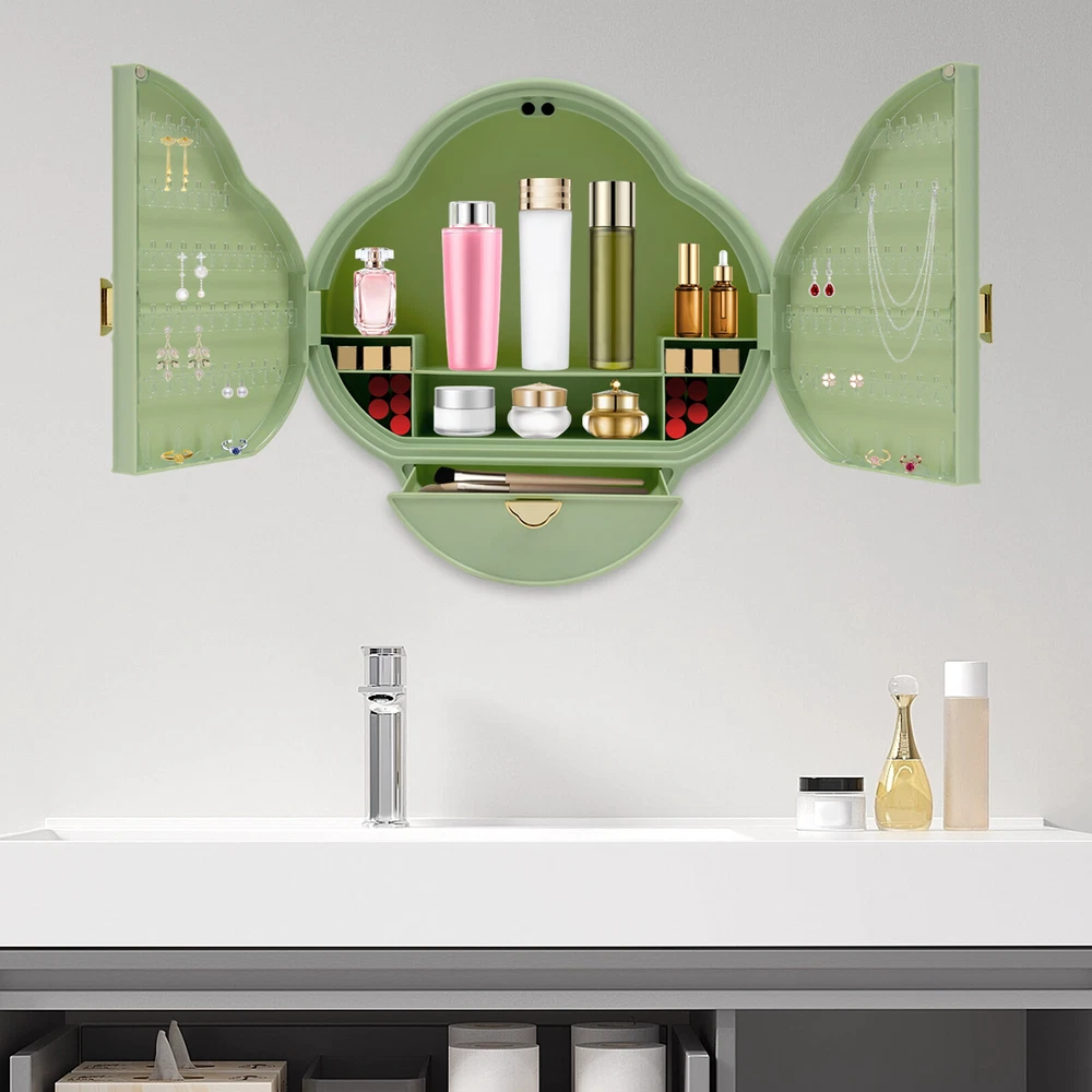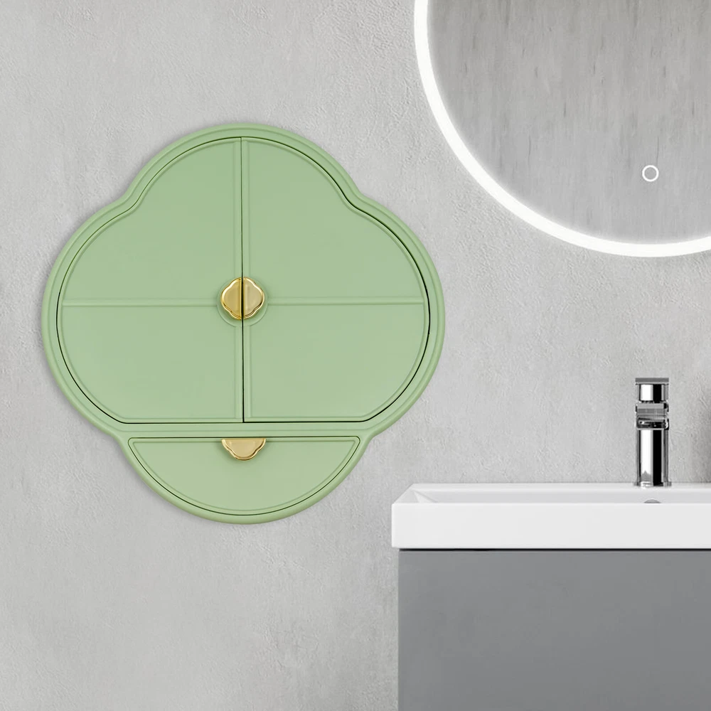 Have a nice day~ Description Are you still feeling annoyed by the chaotic situation on the table? Our wall-mounted storage box can hold a large number of skincare products, cosmetics, makeup tools, and jewelry, helping you clean up the clutter on the countertop. The beautiful appearance and fresh green make this product not only a practical tool but also a beautiful decoration. Key Features Good Material: High-quality plastic has good waterproof performance, has undergone injection molding and electroplating treatment, and will not easily breed bacteria , allowing you to use it safely for a long time. Large Capacity: The size of 14.96*14.96*4.72 inches allows this product to accommodate approximately 15-20 bottles of skincare products, as well as many other cosmetics and jewelry. Strong Load-Bearing Capacity: The sturdy structure and thickened board give this product a load-bearing capacity of up to 11.02 lbs, allowing you to safely put your cosmetics inside. Neat Storage: Its interior is divided into high bottle area, low bottle area, drawer area, and jewelry area. You can place skincare products, makeup tools, cosmetics, and jewelry in different areas to look neater and easier to find. Improve Space Utilization: The wall-mounted design saves a lot of countertop space while maximizing vertical space utilization. Beautiful Appearance: The fresh green and four-leaf clover shape make this product look very fashionable and exquisite, while the gold handle adds a touch of nobility, making this product a beautiful decoration. Easy Clean-up: The surface of the product is smooth and the structure is simple. You can easily use a soft cloth to wipe it clean. Ideal Gift: Thanks to its function and beautiful appearance, you can give it as a gift to your friends on their birthday, Christmas, or any other holiday. Details Elevated Interior: The highest position inside reaches 8.27 inches, making storing taller bottles convenient. Magnetic Suction Door: It not only facilitates the opening and closing of the box door but also prevents the items inside from falling. Practical Handles: You can quickly open or close box doors and the drawer through them. Application This product can be installed in bathrooms, bathrooms, washrooms, dressing rooms, bedrooms, lounges, and other places with ceramic tiles, marble, glass, and stainless steel walls to store cosmetics, skincare products, makeup brushes, necklaces, earrings, pendants, rings, and other jewelry. How to Install 1. Wipe the wall clean. 2. Apply the nail-free glue on the product. 3. Paste the product on the wall. 4. Wait for 48 hours before using. Specification Material: Plastic Process: Injection Molding, Electroplating Color: Green Shape: Four-leaf Clover Style: New-Chinese Style Mount Type: Wall-mounted Indoor/Outdoor Use: Indoor Max. Overall Load Capacity: 5kg/11.02lbs Product Size: 38*38*12cm/14.96*14.96 *4.72in Package Size: 35.5*35*14.5cm/13.98*13.78*5.71in Gross Weight: 1.7kg/ 3.75lbs Net Weight: 1.35kg/2.98lbs Package Included 1* Wall-mounted Storage Box 1* Nail-free Glue Notes Please note that this product cannot be installed on brick, concrete, painting, latex paint, diatomaceous earth walls, or outdoors. Please allow the slight color difference caused by the shooting light and 1-3cm error due to manual measurement, and make sure you do not mind before ordering. Payment Delivery details Terms of sales About us Contact us Payment We accept ebay payment 。 Fees such as import duties, taxes are not included in the item price or shipping costs. These charges are the buyer's responsibility. Delivery details Shipping: 2-9 working days to: USA Terms of sales We maintain high standards of excellence and strive for hundred percent customer satisfaction. Feedback is very important to us. We hope that you contact us immediately before you give neutral or negative feedback, so that we can address your concerns. It is impossible to address issues if we do not know about them! About us Your satis faction is our ultimate goal. We work hard to earn your trust and future business. Our certified technicians have tested each item before shipping. The unit comes with 1 year limited warranty on all manufacturing defects. a) If you receive a defective item, you may return it or ask for a discount. Please contact us within 14 days after you receive the package. b) What you returned must be intact and in its original packaging as re? u. Customer is responsible for shipping costs of the returned item. c) We will cover the cost of shipping back t with the shipping rate indicated in the registration page. We will send you a new unit or refund the full payment you paid. Thank you. Contact us Business Hour Business Hour: Monday To Friday: 8:30 AM to 5:00 PM (Beijing China time) Due to time zones, our reply to your questions may not be immediately. But within above working time, we will reply your email within 24 hours. If it's non-workdays, please kindly be patient and wait till Monday. Please contact us with ebay message. Please feel free to contact us if you have any questions. Monday To Friday: 8:30 AM to 5:00 PM (Beijing China time) Due to time zones, our reply to your questions may not be immediately. But within above working time, we will reply your email within 24 hours. If it's non-workdays, please kindly be patient and wait till Monday. Please contact us with ebay message. Please feel free to contact us if you have any questions. On Feb 6, 2025 at 02:11:41 PST, seller added the following information: