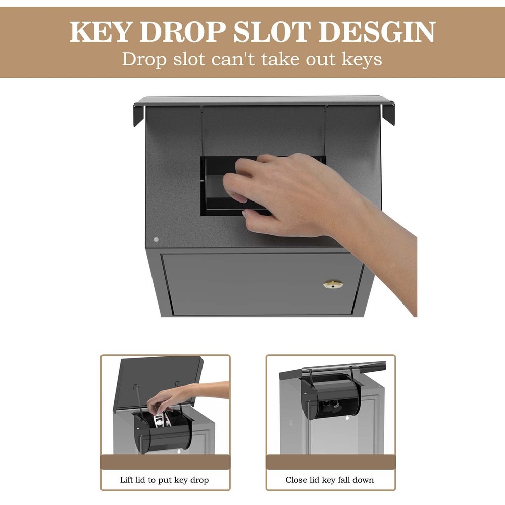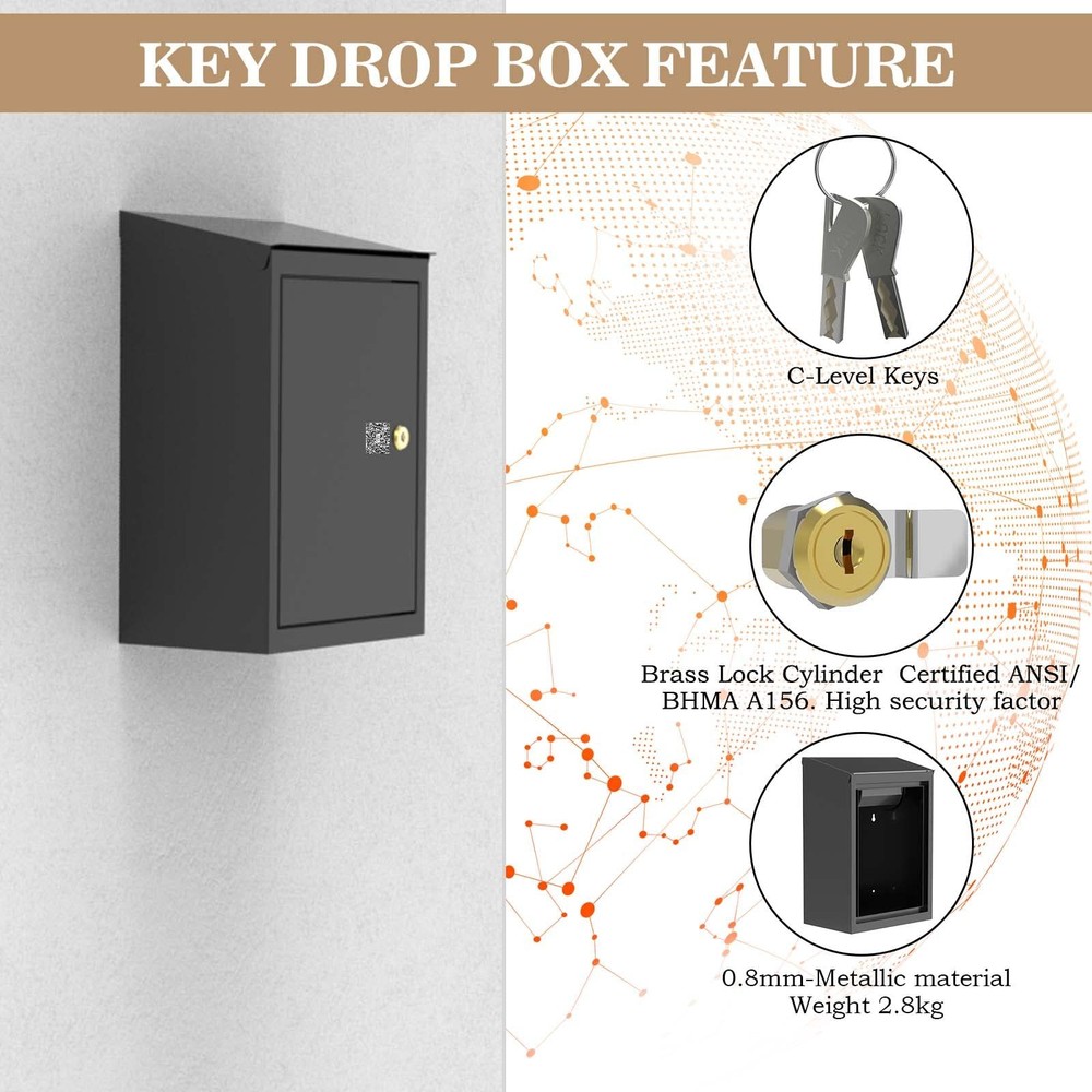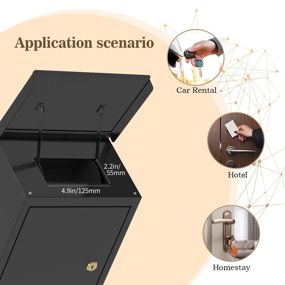 This key drop box is a must-have for secure key exchanges! The sturdy 0.6mm steel construction feels durable, and the clever roller mechanism ensures smooth key dropping. I love the waterproof drain slot—no worries about rain damage. Perfect for rentals, offices, or even home use. Great quality and reliable for peace of mind!
