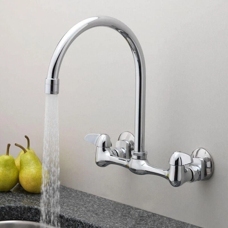 Wall Mount Kitchen Faucet 2-Handle High-Arc Chrome Brass Water Saving 1.8 GPM US