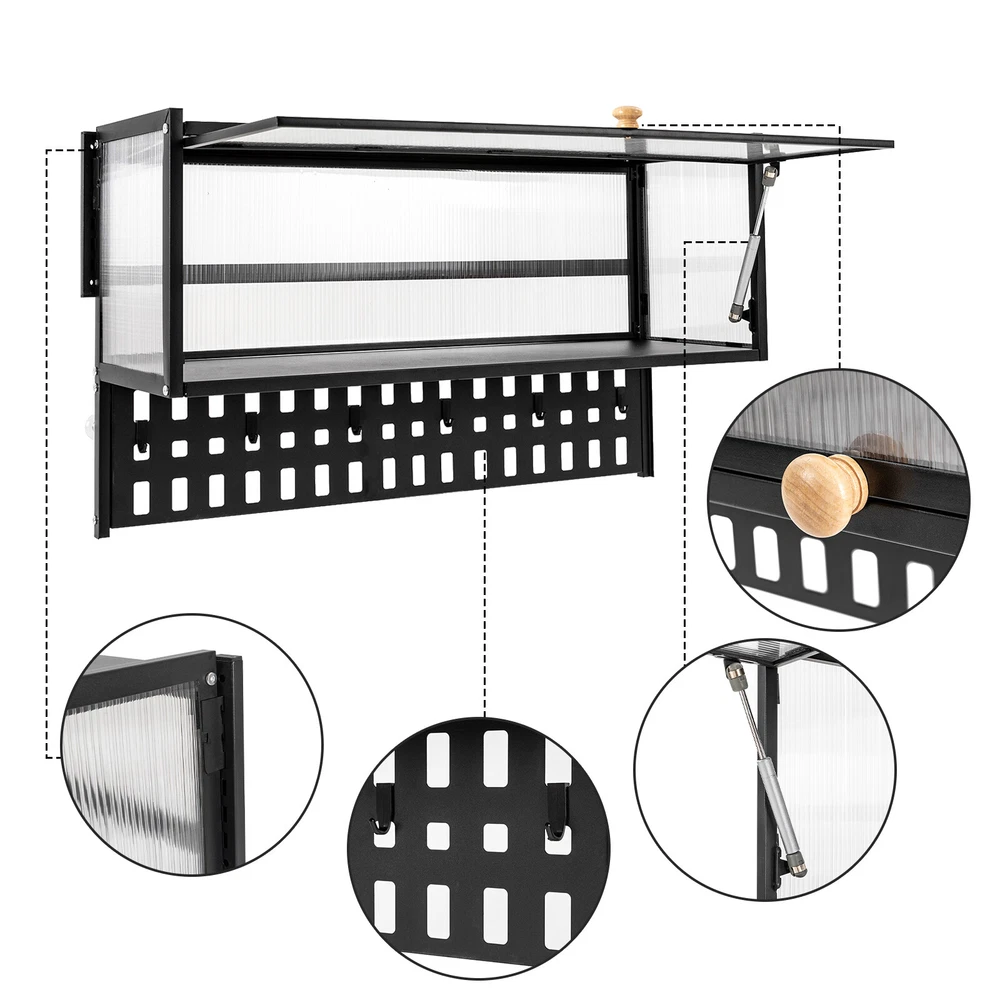 Specification Material: Carbon Steel, Polycarbonate Hollow Sheet, Wood Surface Treatment: Painting Color: Black, Translucent Special Feature: Flip-up Load Capacity: 25kg/55lbs Hanging Board Load Capacity: 5kg/11 lbs Product Size: 85*28*30cm/33.5*11*11.8in Hanging Board Size(L*W): 85*8cm/33.5*3.1in Package Included 1x Wall-mounted Cabinet 1x Hanging Board 5x Hooks 1x Chinese&English Installation Diagram All Accessories for Assembly Notes: For firmness and safety, hollow walls, gypsum walls, and other walls that cannot withstand gravity cannot be installed with the wall cabinet. Please allow the slight color difference caused by the shooting light and the 1-3 cm error due to manual measurement, and make sure you do not mind before ordering. Wall-mounted Cabinet Kitchen Flip-Up Door Cabinet Shelf Storage Organizer 55lbs Description~~ Wall Cabinet Balcony Kitchen Wall Cabinet Living Room Bedroom Storage Cabinet Flip-Up Door Wall Cabinet Wall-mounted Locker ( Color : Black , Size : 85*28cm ) Description This wall cabinet can make full use of space and become an ornament on the white wall. The minimalist shape design can enhance the style of the room, and the translucent strip cabinet door brings the overall value to a higher level. It is not only a cabinet, but also expresses your pursuit of exquisite life. Key Features High-quality Selection: The high-quality carbon steel and polycarbonate hollow panels, combined with coating technology, make this product resistant to rust and scratches, and suitable for long-term use. Wall-mount Design : The wall cabinet can make full use of wall space, especially suitable for small rooms and can be integrated with various occasions. You can install it at a suitable height for quick access to your items. Worry-free Installation : The equipped suction cups, auxiliary stickers, detailed English installation video, and glues, ensure a stable installation without damaging the wall. Flip-up Design : The hydraulic support rod allows the opening and closing angle to reach 90 ° , making it easier to take items, achieving silent closing and reducing the risk of hitting heads. Maximize Your Storage : Large capacity allows easy storage of kitchen spices, and the flat top can also be used to store items to save space. The hanging board with holes plus five hooks can be used to hang spoons, rags, etc. Hanging things is much neater than if they were scattered in a drawer. High Load-bearing Capacity: This cabinet not only looks good but also has a big load-bearing capacity of about 55lbs , so you can place items as you like without worrying about them collapsing. Beautiful Appearance: The unique textured cabinet door plus the wooden handle demonstrate a unique texture. Meanwhile, the semi-transparent visual effect presents a hazy aesthetic of storage. Easy to Clean : The cabinet door can play a dustproof and antifouling role while the smooth surface of the product also enables easy and fast cleaning, and you only need to wipe away the stains with a towel. Details Solid Back Plate : Enlarged and thickened back plate provides stronger support, so you can use this item with peace of mind. Rounded Edges : The edges of this product have been polished smooth to avoid damage caused by bumping, making it safe and comfortable. Application This wall cabinet is an all-around item and is suitable for the kitchen, living room, office, etc. Specification Material: Carbon Steel, Polycarbonate Hollow Sheet, Wood Surface Treatment: Painting Color: Black, Translucent Special Feature: Flip-up Load Capacity: 25kg/55lbs Hanging Board Load Capacity: 5kg/11 lbs Product Size: 85*28*30cm/33.5*11*11.8in Hanging Board Size(L*W): 85*8cm/33.5*3.1in Package Included 1x Wall-mounted Cabinet 1x Hanging Board 5x Hooks 1x Chinese&English Installation Diagram All Accessories for Assembly Notes: For firmness and safety, hollow walls, gypsum walls, and other walls that cannot withstand gravity cannot be installed with the wall cabinet. Please allow the slight color difference caused by the shooting light an d the 1-3 cm error due to manual measurement, and make sure you do not mind before ordering. tu 2 Payment Delivery details Terms of sales About us Contact us Payment We accept ebay payment 。 Fees such as import duties, taxes are not included in the item price or shipping costs. These charges are the buyer's responsibility. Delivery details Shipping: 2-9 working days to: USA Terms of sales We maintain high standards of excellence and strive for hundred percent customer satisfaction. Feedback is very important to us. We hope that you contact us immediately before you give neutral or negative feedback, so that we can address your concerns. It is impossible to address issues if we do not know about them! About us Your satis faction is our ultimate goal. We work hard to earn your trust and future business. Our certified technicians have tested each item before shipping. The unit comes with 1 year limited warranty on all manufacturing defects. a) If you receive a defective item, you may return it or ask for a discount. Please contact us within 14 days after you receive the package. b) What you returned must be intact and in its original packaging as re? u. Customer is responsible for shipping costs of the returned item. c) We will cover the cost of shipping back t with the shipping rate indicated in the registration page. We will send you a new unit or refund the full payment you paid. Thank you. Contact us Business Hour Business Hour: Monday To Friday: 8:30 AM to 5:00 PM (Beijing China time) Due to time zones, our reply to your questions may not be immediately. But within above working time, we will reply your email within 24 hours. If it's non-workdays, please kindly be patient and wait till Monday. Please contact us with ebay message. Please feel free to contact us if you have any questions. Monday To Friday: 8:30 AM to 5:00 PM (Beijing China time) Due to time zones, our reply to your questions may not be