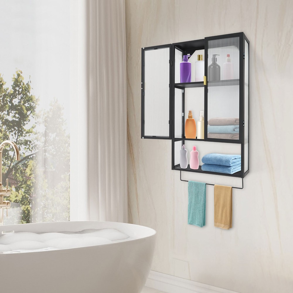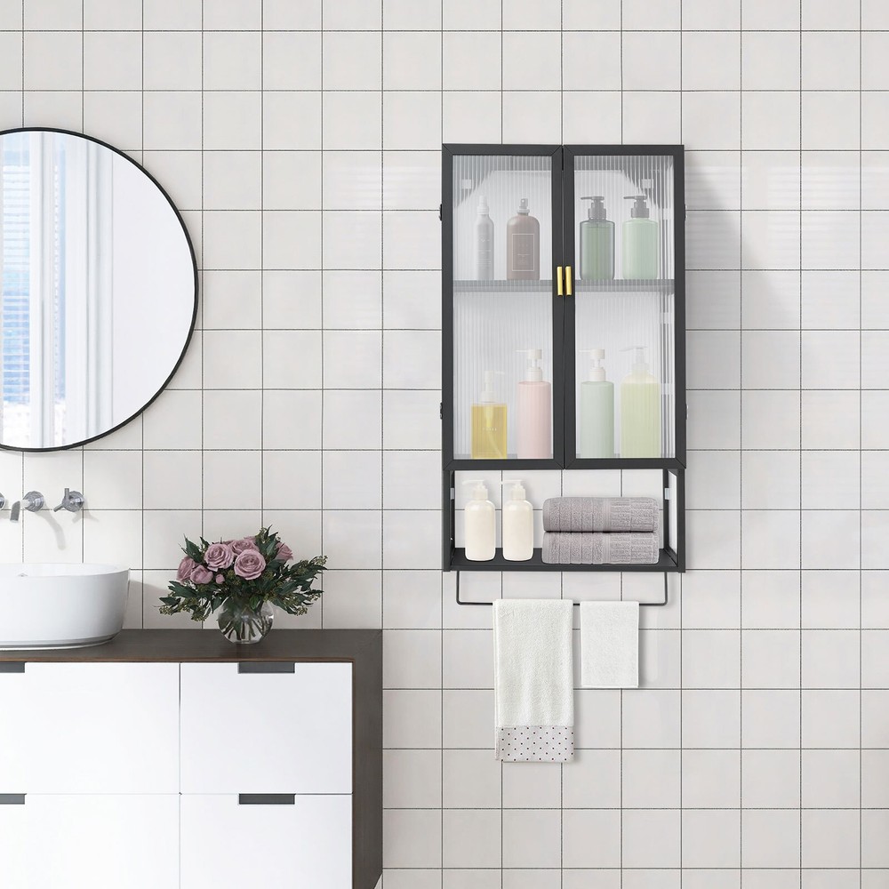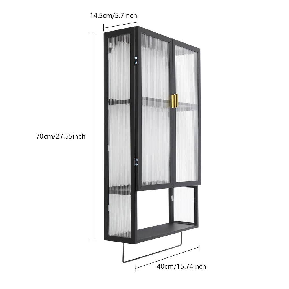 Bathroom Wall Mounted Cabinet Shelf Bath Kitchen With 2 Door Storage Organizer Description In daily life, a neat and organized space can make us feel relaxed and happy. Let's take a look at this wall-mounted storage cabinet, which is made of high-class steel and PC materials with exquisite workmanship , sturdy and durable. Large capacity can meet your daily needs. The simple structure and smooth surface make it easy for you to install and clean. It is such a practical piece of home furnishing, bring it home soon! Key Features Sturdy and Durable: The premium steel and PC materials with phosphating, e lectrostatic spraying, and other fine processes make this product wear-resistant, waterproof , and less prone to deformation, ensuring long-term use in a wet environment. Storage Assistant: The 3-tier storage space with heightened tier spacing maximizes the vertical space, and allows cosmetics, shower supplies, and seasoning bottles(all are not included) to be organized neatly and orderly to say goodbye to messy countertops. Strong Load-bearing Capacity: The product's high-strength materials and sturdy construction can withstand approximately 33.07 lbs of weight without deforming or falling off, which is ideal for your daily use. Save Your Space: The wall-mounted design allows for efficient use of wall space without taking up countertops, helping you to plan your room and save space. Stylish Appearance: The black frame and clear design show a modern style and simple and elegant aesthetics that will be a great addition to your home decoration. Simple Installation: The simple one-piece structure, mounting brackets with pre-drilled holes, and practical accessories allow you to install this product on the wall easily and quickly. Easy to Clean: Because of the smooth surface and simple structure, you can wipe the dirt from it with a wet cloth(not included). Ideal Gift: With a beautiful appearance and practical performance, it is a great surprise for your wife, mother, friend, or loved one. Buy with Confidence: We stand behind all our guests and look forward to assisting you with your purchase. It is our pleasure to answer your confusion and questions. The end of the story between us is not "we sell and you buy". Details Clear Cabinet Doors: They allow you to clearly see what is stored inside and make it easy to find. This design also prevents moisture, dust, and insects for hygienic storage. Hanging Rod: It allows you to hang towels and other items(not included). Practical Handles: They can be great for helping you open or close the cabinet doors. Smooth Edge: The rounded and smooth edges not only add to the aesthetics of the product but also improve the safety of use. Application It is suitable for the kitchen, bathroom, bedroom, dresser, and more to store cosmetics, kitchen spices, toiletries, snacks, and other items. How to Install Determine the mounting position first. Apply nail-free glue to the fitting. Align the nail-free glue accessory with the newly determined mounting position. Apply the anti-slip auxiliary sticker. After the two sides of the position are affixed, rest for 72 hours. Align the wall-mounting frame with the mounting hardware and insert it. Use a screwdriver to install the cabinet handle. Complete the installation. Specifications Color: Black Style: Modern Shape: Rectangular Material: Steel, PC Process: Phosphating, Electrostatic Spraying Number of Tiers : 3 Installation Required: Yes Mounting Type: Wall Mounted Indoor/Outdoor Usage: Indoor Overall Load-bearing Capacity: About 15kg/33.07lbs(Hanging Rod Load Not Included) Plate Thickness: 0.4mm/0.016in Wall Thickness: 0.8mm/0.03in Steel Frame Diameter: About 15mm/0.59in Product Size: 40*14.5*70cm/15.75*5.71*27.56in Package Size: 75.5*47*19cm/29.72*18.5*7.48in Gross Weight: 4.3kg/9.48lbs Net Weight: 4kg/8.82lbs Package Included 1* Storage Cabinet Other Accessories for Installation Notes Please double-check the size before ordering. Please note that this product does not include other stored items shown in the picture. Please note that this product is not suitable for plastered or wallpapered walls if mounted with screws, or for non-smoot h wall surfaces if mounted with nail-free glue. Please allow the slight color difference caused by the shooting light and 1-3cm error due to manual measurement, and make sure you do not mind before you order. Payment Delivery details Terms of sales About us Contact us Payment We accept ebay payment 。 Fees such as import duties, taxes are not included in the item price or shipping costs. These charges are the buyer's responsibility. Delivery details Shipping: 2-9 working days to: USA Terms of sales We maintain high standards of excellence and strive for hundred percent customer satisfaction. Feedback is very important to us. We hope that you contact us immediately before you give neutral or negative feedback, so that we can address your concerns. It is impossible to address issues if we do not know about them! About us Your satis faction is our ultimate goal. We work hard to earn your trust and future business. Our certified technicians have tested each item before shipping. The unit comes with 1 year limited warranty on all manufacturing defects. a) If you receive a defective item, you may return it or ask for a discount. Please contact us within 14 days after you receive the package. b) What you returned must be intact and in its original packaging as re? u. Customer is responsible for shipping costs of the returned item. c) We will cover the cost of shipping back t with the shipping rate indicated in the registration page. We will send you a new unit or refund the full payment you paid. Thank you. Contact us Business Hour Business Hour: Monday To Friday: 8:30 AM to 5:00 PM (Beijing China time) Due to time zones, our reply to your questions may not be immediately. But within above working time, we will reply your email within 24 hours. If it's non-workdays, please kindly be patient and wait
