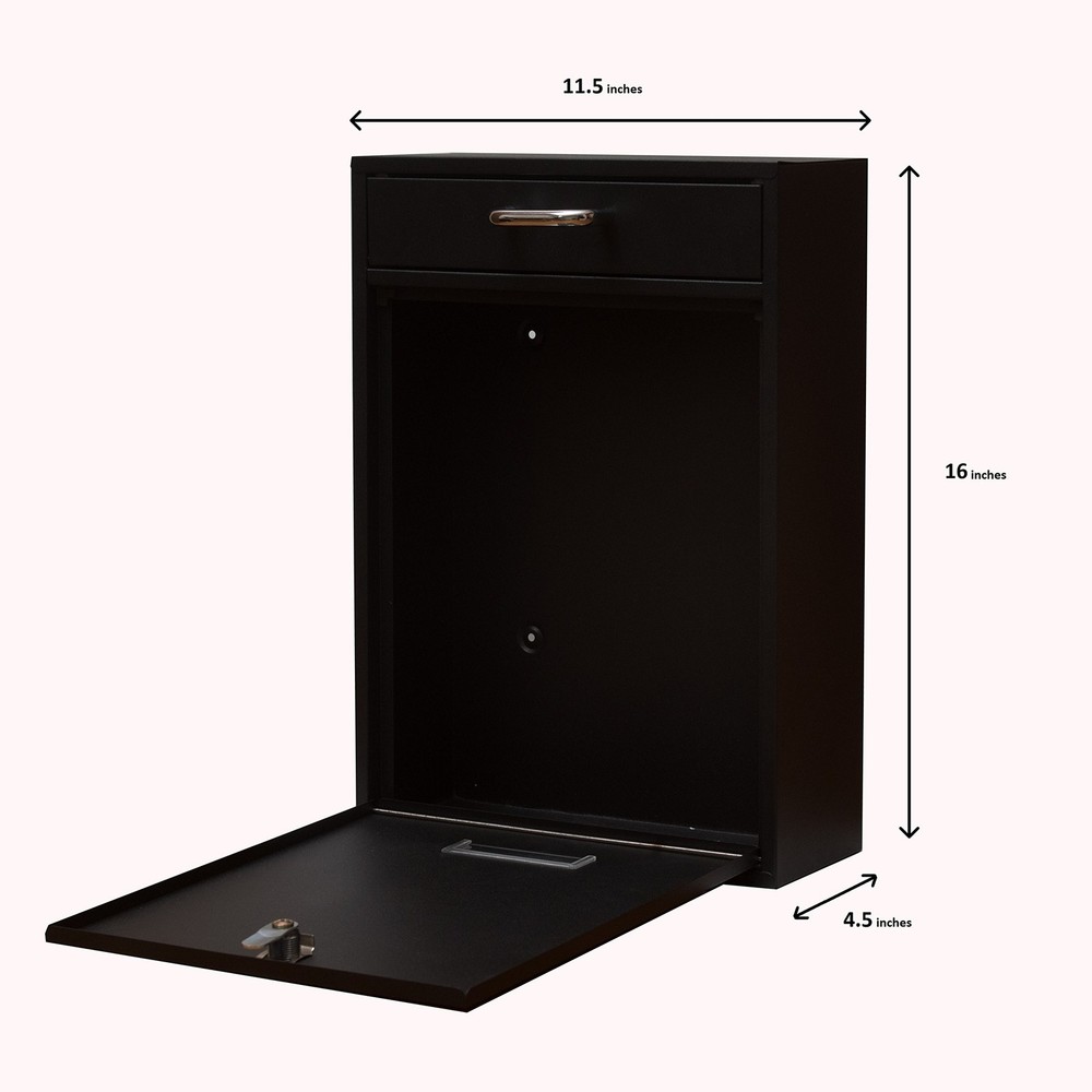 Wall Mounted Locking Vertical Dropbox Mailbox - Safe and Secure (Large) | Made with Galvanized Steel (Black Combination Lock) Product Details Color: Black Combination Lock Brand: Yulli MPN: CO1 UPC: 852130008216 EAN: 0852130008216 Material: Alloy Steel Color: Black Combination Lock Included Security Features: Lockable Brand: Yulli Mounting Type: Wall Mount Material: Alloy Steel Color: Black Combination Lock Included Security Features: Lockable Brand: Yulli Mounting Type: Wall Mount Product Dimensions: 4.75"D x 11"W x 16"H Style: Classic Item Weight: 2.27 Kilograms Access Location: Front UPC: 852130008216 Manufacturer: Yulife, LLC Item Weight: 4.99 pounds Country of Origin: China Item model number: CO1 Is Discontinued By Manufacturer: No Batteries required: No Included Components: mounting_hardware Heavy-Duty Construction: Built with 24-gauge galvanized steel for durability and weather resistance Secure Locking Mechanism: Equipped with a combination lock to prevent unauthorized access Space-Saving Design: Measures 4.75"D x 11"W x 10"H to fit perfectly on walls Large Mail Capacity: Narrow opening allows for larger mail and magazines Easy Wall Mount Installation: Mounting type is wall mount, making it convenient to install Identity (ID) theft is a crime where a thief steals your personal information, such as your full name or social security number, to commit fraud. The identity thief can use your information to fraudulently apply for credit, file taxes, or get medical services. These acts can damage your credit status, and cost you time and money to restore your good name. You may not know that you are the victim of ID theft until you experience a financial consequence (mystery bills, credit collections, denied loans) down the road from actions that the thief has taken with your stolen identity. The Federal Trade Commission estimates 400,000 Americans have had their mail and their identities stolen. It is important to take preventative measures to NOT have your identity stolen so you will not have your credit destroyed. Identity theft takes many years to undo and rectify. This mailbox is made with 24 gauge galvanized sheet metal with a powdered finish to resist corrosion from weather. In addition to the strong construction, the design of the mailbox prevents theft by prohibiting hands from reaching inside. The narrow opening still allows for larger mail and magazines so the mailbox is very convenient and practical. Caution: While this mailbox will deter common thefts, this mailbox is not intended to store valuables. Warning: It is important to note that it is not the responsibility of mail carriers to open mailboxes that are locked, accept keys for this purpose, or lock mailboxes after delivery of mail.