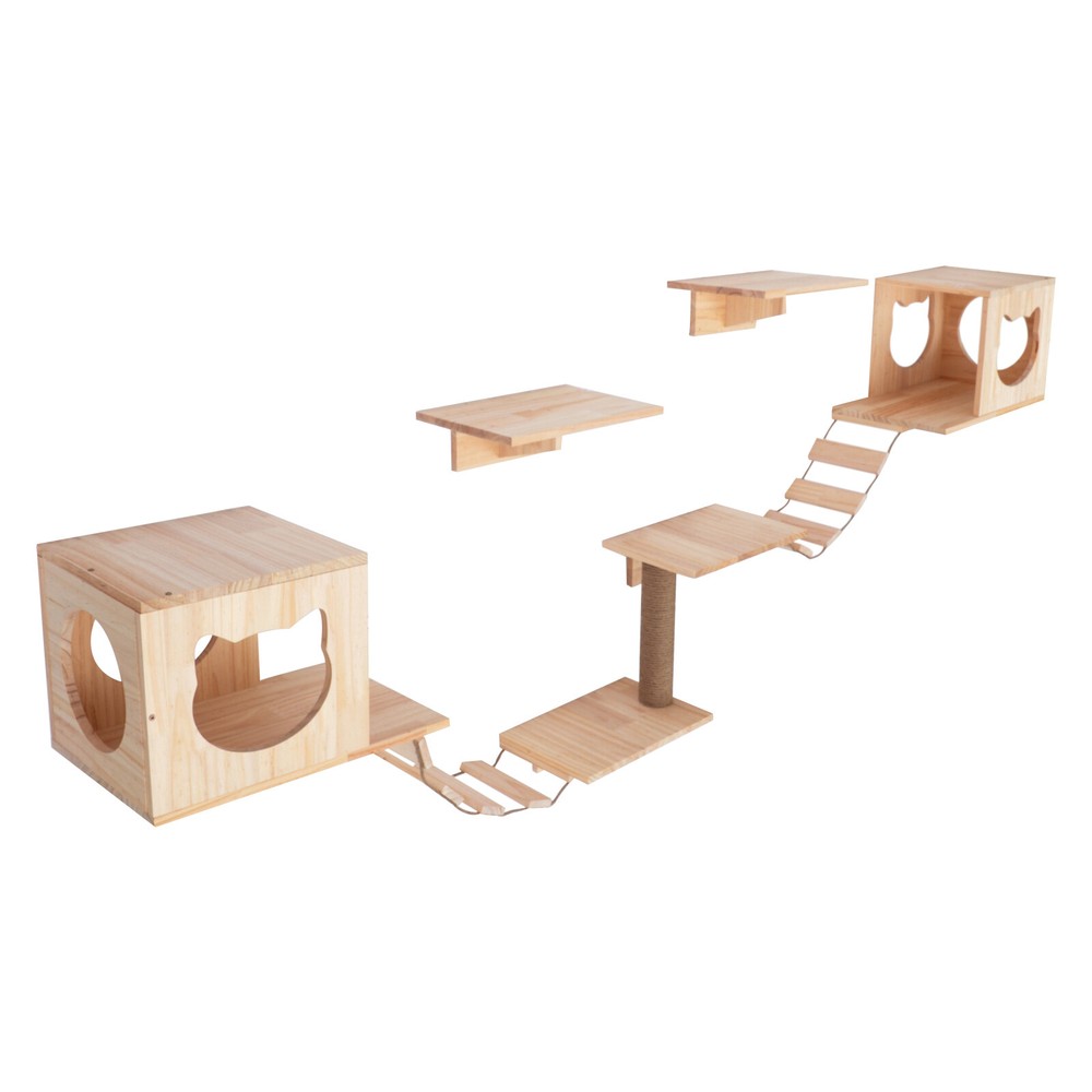 Wall Mounted Solid Wood Cat Climbing Shelf with Kitten Bed House Indoor