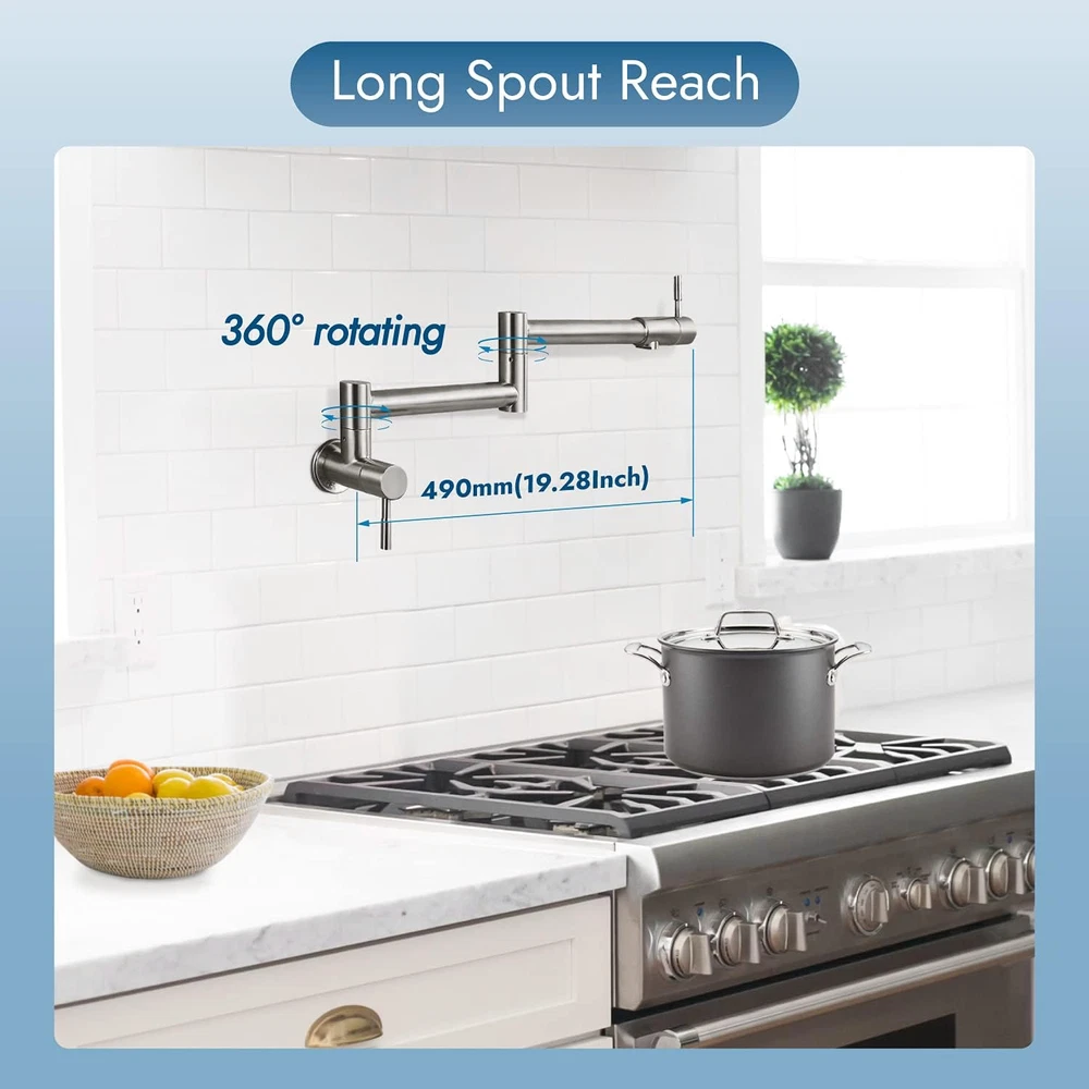 Store New Arrivals Add to Favorite View Feedback Contact Pot Filler Faucet Wall Mounted Folding Stretchable Kitchen Sink Water Tap with Double Joint Swing Arm Single Hole Two Handles Restaurant Kitchen Faucets, Brushed Nickel, Level Handle Description Item model number B095BPJSDC Style Level Handle Handle Location Side Hole Count 1 Units Pattern Modern Country of Origin China Warranty Description Seller Is Electric No Maximum Flow Rate 1.78 Gallons Per Minute Batteries Included? No Usage Wall Mounted Over Stove Pot Filler Faucet Number of Pieces 1 Batteries Required? No Finish Brushed Material Stainless Steel Installation Type Wall Mounted Over Stove Pot Filler Faucet Model Name Wall Mount Pot Filler Spout Reach 19.5 Inches Finish Type Brushed Package Dimensions 12.48 x 10.51 x 2.05 inches Included Components Faucet Body Spout Design Extended, flexible gooseneck Number of Handles 2 Item Weight 2.97 pounds Special Features Kitchen Faucet, Over Stove, Wall Mounted, Pot Filler Special Feature Kitchen Faucet, Over Stove, Wall Mounted, Pot Filler Valve Type Cartridge Valve Mounting Type Wall Mount Series ID Pot Filler Color Brushed Nickel Handle Material Stainless Steel Recommended Uses For Product Sink Handle Type Lever 【American Standard Design】Flow rate:1.78GPM 8.09 L/min.Cinwiny wall mounted over stove pot filler faucet use NPT 1/2" male connecting thread, fit for US standard, with a installation flange for stability. 【Premium Quality】The core material of Cinwiny wall mount over stove pot filler faucet is SUS304 stainless steel, which increases the durability and reliability of the structure. Solid brass rough-in valve ensures the quality of water, provide smooth turning action and prevent dripping. 【Convenience and Easy Use】 Faucet maximum extension length is 19.5 inches, and spout maximum water supply radius is 18 inches.Equipped with exquisite aerator, it can provide stable pressure and straight constant water flow. Use for only cold water or only hot water, one hole inlet wall mount, dual swing joints that can rotate 360 degrees, dual valve control has greater flexibility when used. 【Modern Design】 Dual handles over stove pot filler with two brass valves provide smooth turning action and prevent dripping. The surface of the plating layer has anti-scratch and anti-corrosion properties and is not easy to oxidize. 【What’s Include】A wall mounted over stove pot filler faucet body, a decorative cover, a teflon tape and easy-understanding instruction. Wall-mounted pot fillers are the perfect addition to any kitchen with the convenience of filling large pots directly above the stove. Product Description Cinwiny Pot Filler Brushed Nickel Wall Mounted Folding Stretchable Kitchen Restaurant Sink Faucet with Double Joint Swing Arm Single Hole Product Specification Material : 304 stainless steel Style: Modern Finish : High Quality Brushed Nickel Design:NPT 1/2" connecting thread, fit for US standard, with a installation flange for stability ABOUT US We offer the best prices around on high quality products. Our E-store includes media such as books, movies, music and games while offering electronics, toys, sporting apparel, clothing, tools, general home, garden items and more. SHIPPING We are always working hard to ensure your package arrives as soon as possible. Please understand that some factors like weather, high postal traffic, and the performance of shipping companies are outside of our control. We offer free shipping to the lower 48 states and ship within 2 business days of payment, usually sooner. We do not accept P.O. Boxes. Please provide a physical address. For shipping outside of the continental USA, we only use eBay's Global Shipping Program.The item is shipped to KY and then sent to the rest of the world. International customers are responsible for all duties and taxes. Continue to check out in order to calculate costs for shipping the item to your country. Messages regarding eBay's Global Shipping Program MUST be directed at eBay EXCLUSIVELY. RETURNS We offer a 30-Day Return Policy on items which you are not completely satisfied with. You have the option for a full-refund or an exchange of the item. No returns are available on items shipped outside of the USA. PAYMENT We accept PayPal. CONTACT US This page content is yet to come Please ad us to your favorite seller and visit again later Thank You CUSTOMER SATISFACTION We try our very best to make sure every customer is completely satisfied. If there's a problem, message us! We're happy to help. WE ACCEPT Copyright © 2021 AutoDS. | All Rights Reserved