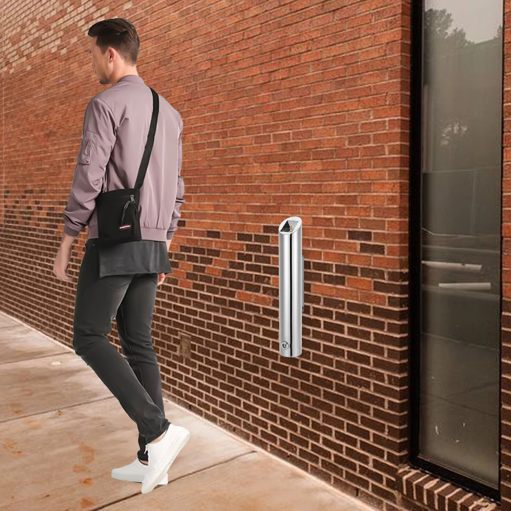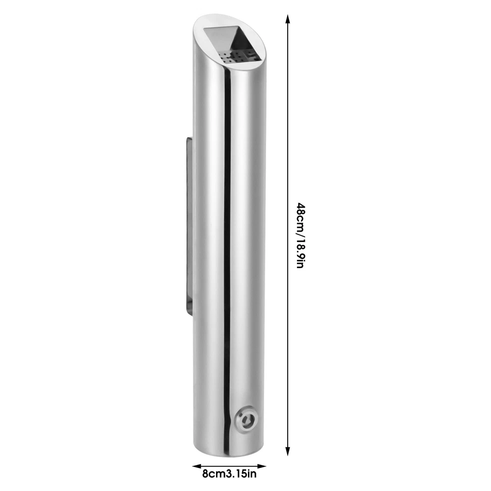 Specification Color: Silver Style: Modern Shape: Cylindrical Process: Brushed Material: 201 Stainless Steel Assembly Required: No Mounting Type: Wall Mounted Handle Size: 20cm/7.87in Product Size(D*H): 8*48cm/3.15*18.9in Package Size: 49.5*12.5*12.5cm/19.49*4.92*4.92in Gross Weight: 2kg/4.41lbs Net Weight: 1.7kg/3.75lbs Package Included 1* Wall-mounted Trash Can 1* Stainless Steel Hoop 1* Key 2* Expansion Screws Wall Mounted Trash Can, Indoor/Outdoor Waste Comtainer, Large Capacity Trash Bin Description~ Description Throwing cigarette butts or small paper waste in public places is not only uncivilized but also may cause a series of potential safety hazards or bad environments. To avoid this situation, our wall-mounted trash can is the right product for you. It can be set up in public areas, your home, and other places in demand, to help remove small trash such as tissues and cigarette butts to protect us from fire danger and dirty environment. Key Features Made to Last: This product is made of 201 stainless steel with a brushed surface, which is sturdy, rust-proof, and ensures a long service life. Large Capacity: Its 18.9-inch height ensures larger capacity than other products to store more cigarette butts and tissue waste , avoids frequent cleaning, and reduces the cleaning workload. Exquisite Appearance: The cylindrical shape and minimalist color palette can enrich the beauty of most spaces, easily integrating and enhancing any public decor. Thoughtful Design: The 7.87" long handle with 2 pre-drilled holes not only allows for easy carrying but also makes it convenient to install this product on the wall. The equipped stainless steel hoop also allows this product to be directly fixed to a cylindrical body for use. Environmental-friendly : The flip lid on the bottom suppresses odors when closed, keeping the indoor environment clean and the air fresh. Throwing cigarette butts and small waste into this product to reduce the workload of sanitation workers and the environmental pollution brings civilization to our city as well. Space Saving: It's compact(3.15-inch in diameter) and can be directly installed beside the door of public places or on the wall near the entrance, without occupying floor space. Effortless Cleaning: You just need to turn the key to open the bottom and take a bucket/garbage bag(not included) below to collect the waste and cigarette butts. You can also easily wipe dust and stains off the surface with a damp cloth. Ideal Gift: With good performance and a modern appearance, it can be used as an ideal housewarming gift for parents, friends, and lovers so that they can also enjoy a more exquisite life. Good Customer Service: We aim to provide quality products and services. If you have problems, please feel free to contact us. We will reply and solve the problem for you as soon as possible. Details Key& Lock: They make it easy for you to open the bottom of this product for convenient clean-up. Holes on the Top: The evenly distributed holes on the top groove make it convenient for you to extinguish cigarette butts. Smooth Edges: The smooth and burr-free edges enhance the beauty of the product and better care for your skin when installing and cleaning it. Application It can be widely used in many kinds of places such as shopping malls, hotels, KTVs, homes, offices, bars, cafes, restaurants, airports, parks, residential areas, streets, clubs, tourist areas, and parties. Specification Color: Silver Style: Modern Shape: Cylindrical Process: Brushed Material: 201 Stainless Steel Assembly Required: No Mounting Type: Wall Mounted Handle Size: 20cm/7.87in Product Size(D*H): 8*48cm/3.15*18.9in Package Size: 49.5*12.5*12.5cm/19.49*4.92*4.92in Gross Weight: 2kg/4.41lbs Net Weight: 1.7kg/3.75lbs Package Included 1* Wall-mounted Trash Can 1* Stainless Steel Hoop 1* Key 2* Expansion Screws Notes Please check the product size carefully before ordering. Normally, the expansion screw will blow up after the force is applied. Please allow the slight color difference caused by the shooting light and 1-3cm error due to manual measurement, and make sure you do not mind before ordering. Payment Delivery details Terms of sales About us Contact us Payment We accept ebay payment 。 Fees such as import duties, taxes are not included in the item price or shipping costs. These charges are the buyer's responsibility. Delivery details Shipping: 2-9 working days to: USA Terms of sales We maintain high standards of excellence and strive for hundred percent customer satisfaction. Feedback is very important to us. We hope that you contact us immediately before you give neutral or negative feedback, so that we can address your concerns. It is impossible to address issues if we do not know about them! About us Your satis faction is our ultimate goal. We work hard to earn your trust and future business. Our certified technicians have tested each item before shipping. The unit comes with 1 year limited warranty on all manufacturing defects. a) If you receive a defective item, you may return it or ask for a discount. Please contact us within 14 days after you receive the package. b) What you returned must be intact and in its original packaging as re? u. Customer is responsible for shipping costs of the returned item. c) We will cover the cost of shipping back t with the shipping rate indicated in the registration page. We will send you a new unit or refund the full payment you paid. Thank you. Contact us Business Hour Business Hour: Monday To Friday: 8:30 AM to 5:00 PM (Beijing China time) Due to time zones, our reply to your questions may not be immediately. But within above working time, we will reply your email within 24 hours. If it's non-workdays, please kindly be patient and wait till Monday. Please contact us with ebay message. Please feel free to contact us if you have any questions. Monday To Friday: 8:30 AM to 5:00 PM (Beijing China time) Due to time zones, our reply to your questions may not be immedia