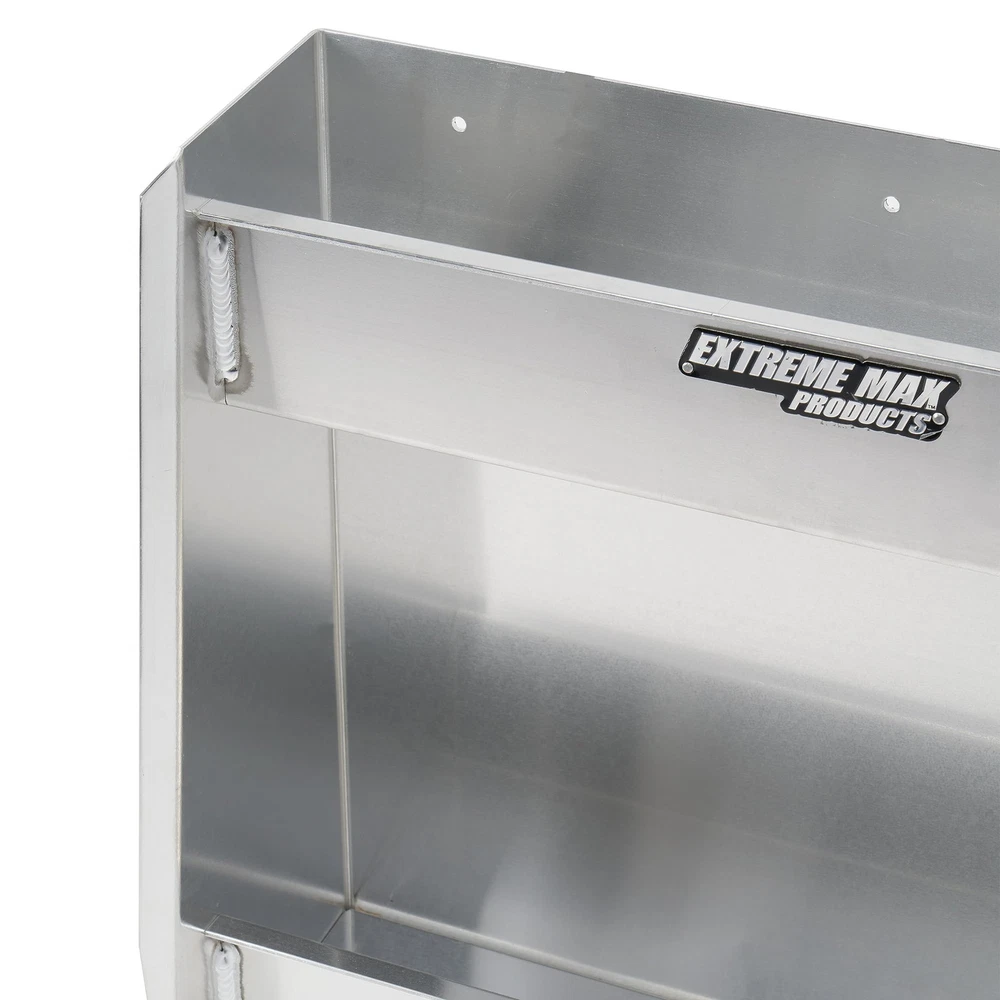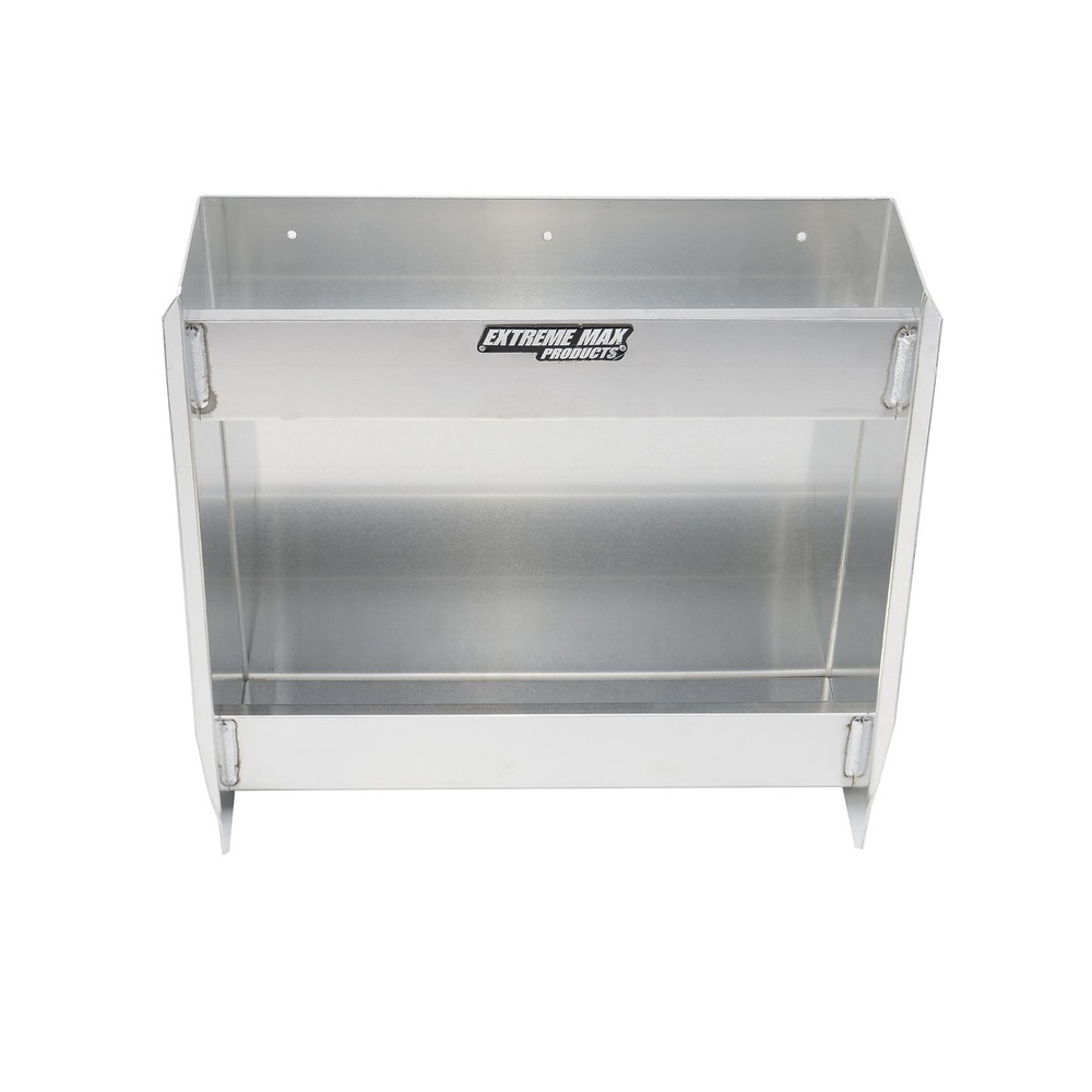 's 2-Shelf Open Storage Cabinet is the perfect storage addition to any garage or enclosed race trailer! The open-face design allows easy access to the shelf's contents, while the lipped edges keep the contents secure and in place during travel. Both shelves are deep enough to fit a variety of supplies, such as aerosol cans and quart-sized jugs. The cabinet features a lightweight aluminum construction with a sleek black powder coat finish, adding an eye-catching design. The cabinet contains pre-drilled mounting screw holes for ease of installation. Due to the variety of surfaces to which the cabinet may be mounted, mounting hardware is not included. Perfect storage addition to any garage or enclosed race trailer! Saves valuable interior space Two shelves with lipped edges keep the contents secure, even during travel Lightweight aluminum construction Includes pre-drilled mounting screw holes for ease of installation; Due to the variety of surfaces to which the cabinet may be mounted, mounting hardware is not included