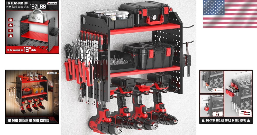 Power Tool Organizer - Wall-Mount Drill Holder & 12 Hook Storage Rack ‹ › ‹ › ‹ › ‹ › ‹ › ‹ › ‹ › ‹ › Power Tool Organizer - Wall-Mount Drill Holder & 12 Hook Storage Rack Quality Features: Exceptional craftsmanship with high-quality materials ensuring durability and longevity. Robust structural design for ample support and stability, making it perfect for heavy power tools. Ideal storage solution for multiple pieces of equipment. Compact Size: 16.7" width fits perfectly in garages, workshops, or studios. Practical add-on for walls with limited space. Four storage rack units to keep your essential tools organized and accessible. Highly Flexible: Adjustable middle plate with 6 height settings for tool customization. Made of cold-rolled steel (SPCC) for durability in heavy-duty tasks. Flat thickened steel tube designed to support various power tools comfortably. Bonus Feature: Side tray holds up to 30 drill bits, 7 pliers, and 7 screwdrivers for added convenience. Includes 4 long hooks and 8 curved hooks for efficient hanging storage. Ideal gift for men on Christmas or Father’s Day - keep it out of of little ones. Why Choose Our Power Tool Organizer? Transform your workspace with our Power Tool Organizer, where exceptional craftsmanship meets innovative design. With a compact size tailored for space-conscious areas, adjustable features to accommodate various tools, and additional storage solutions for small items, this organizer ensures you get the most out of your workspace. Our commitment to customer satisfaction means you can trust us for a seamless experience – money-back guarantees, free returns, and 24/7 support demonstrate our dedication. Declutter your workspace in style and efficiency; order your Power Tool Organizer today! Shipping Free & Fast Shipping - We offer free shipping to most of the USA with a normal delivery time of 3-7 days. However, due to the current situation, additional delivery time (up to 3 weeks) may be required for some items. Alternative Carriers - We may use alternative carriers (e.g. USPS, FedEx, UPS, etc.) to ensure your package arrives safely and on time. Due to the use of multiple carriers, we are unable to provide a tracking number automatically. Handling Time - Orders are processed and shipped within 1-2 business days of receiving cleared payment. Shipping Restrictions - Shipping to Alaska, Hawaii, Puerto Rico, Guam, and other US territories may incur shipping charges or delivery restrictions. Please contact us before ordering, or your order can be refunded/cancelled. State Restrictions - There may be restrictions based on your state of purchase. For example, certain items may not be shipped to California due to state regulations. Contact for Tracking Updates - If you require tracking updates or have any concerns about the delivery of your order, please feel free to contact us, and we will be happy to assist you. Return 30-Day Hassle-Free Returns - We want you to be completely satisfied with your purchase. If you are not, you can return the item within 30 days of receiving it for a full refund or exchange. Easy Return Process - To start a return, simply contact us and we will provide you with a prepaid return shipping label and detailed instructions. Restocking Fee - There are no restocking fees for returns. However, the buyer is responsible for return shipping costs if the return is not due to a seller's error. Refund Processing Time - Refunds will be processed within 5 business days of receiving the returned item in its condition. Payment We accept all major credit cards, PayPal, and Apple Pay for your convenience. Your payment information is secure and encrypted to ensure a safe and seamless transaction. Please complete your payment within 3 days of purchase to avoid any delays in shipping. Feedback Your feedback is extremely important to us. We strive to provide the best products and customer service possible. If you are satisfied with your purchase, please take a moment to leave us a positive review. If you have any concerns or issues with your order, please contact us before leaving negative feedback. We are committed to resolving any problems and ensuring your satisfaction. Contact Us If you have any questions or concerns, please feel free to out to our customer support team. You can contact us through the eBay messaging system. We are available Monday to Friday, 9:00 am to 5:00 pm EST, and we will do our best to respond to your inquiry within 24 hours. Buy it now and enjoy a pleasant shopping experience! Item Weight: 4.5 Kilograms Type: Details In Description Material: Iron Color: 4 Drill Holders Red