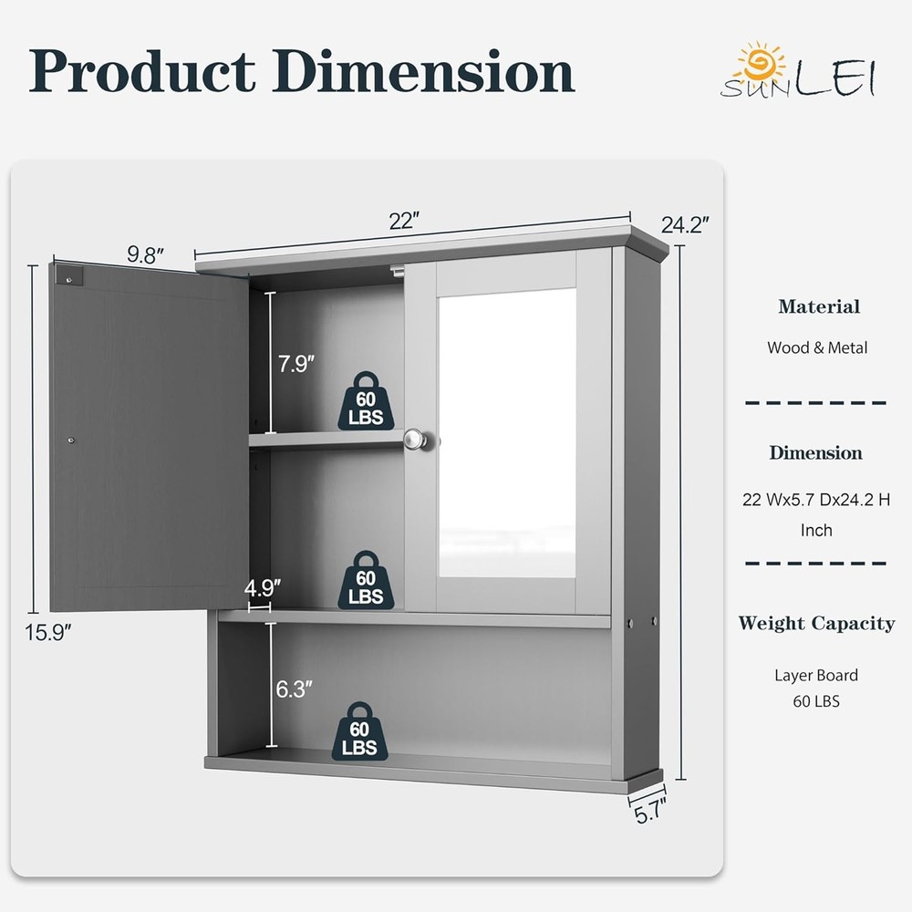 This bathroom cabinet is a game-changer! The sturdy MDF construction with waterproof finish holds up perfectly in humid spaces. I love how securely it mounts to the wall, and the adjustable shelves let me customize storage for all my toiletries. The mirrored door adds functionality while keeping everything neatly hidden. Perfect space-saving solution that looks sleek and modern in my bathroom. Installation was straightforward, and the quality exceeds expectations for the price. Highly recommend!