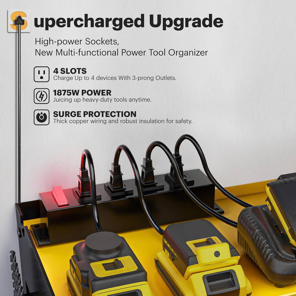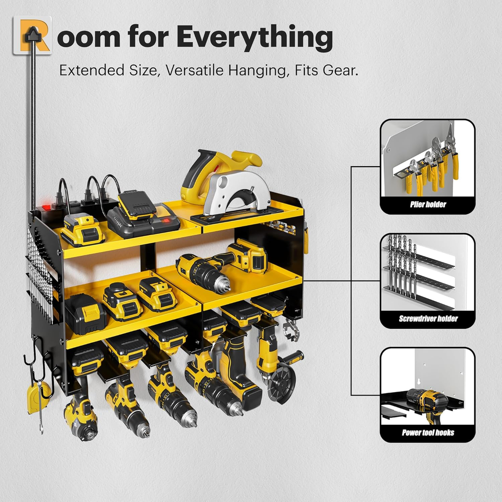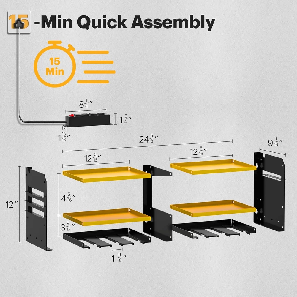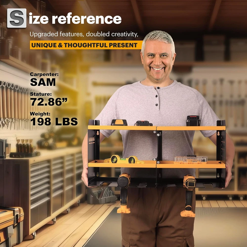 Store New Arrivals Add to Favorite View Feedback Contact Power Tool Organizer Wall Mount with Charging Station, Garage Shelving 6 Drill Holders, Tool Battery Holder with Screwdriver Heavy Duty Rack, Tool Storage Rack with 4 Outlet Power Strip Description Item model number 6 Holders Style With power strip Batteries Included? No Measurement System Metric Shelf Weight Capacity 150 Pounds Room Type Shed, Garage, Workshop, Pegboard, Tool room Is Customizable No Assembly Required Yes Product Dimensions 9.1"D x 24.6"W x 11"H Material Robust Carbon Steel Finish Type Powder Coated Indoor/Outdoor Usage Indoor Batteries Required? No Item Weight 14 pounds Finish Powder Coated Number of Shelves 3 Special Features Drill bit storage, Screwdriver storage rack, Hammer storage rack, Handheld tool storage, Battery holder storage Special Feature function(f) {var _np=(window.P._namespace("DetailPageProductOverviewTemplatesJava"));if(_np.guardFatal){_np.guardFatal(f)(_np);}else{f(_np);}}(function(P) { P.when('A').execute(function(A){ A.on('a:truncate:po-attribute-truncate-2:updated', function(data) { var isTruncated = !data.truncateInstance.getIfTextFits(); var seeMoreElement = document.getElementById('po-attribute-see-more-id-2'); if(seeMoreElement) { seeMoreElement.style.display = isTruncated ? '' : 'none'; } }) }); })); Drill bit storage, Screwdriver storage rack, Hammer storage rack, Handheld tool storage, Battery holder storage See more Shelf Type Floating steel frame Color Yellow Shape Rectangle Recommended Uses For Product Carpentry tools Included Components Hardware Size 6 Slots-Yellow 15- Min Fast Assembly: The installation process of the power tool storage rack is very easy, you just need to connect the gauge steel wire and plating with screws and hang it on the wall. We offer professional manuals and accessories. You only need a few minutes to assemble the perfect power tool organizer for the workroom 24.6-inch Large Size and More Storage: This wall-mounted tool holder features the latest high-capacity design, with a garage organizer height of 11 inches that offers more space than other tool holders, 6.3-inch mid-tier tool rack that can hold more charging stations and large power tools, and a pliers holder, drill bit storage and power strip are added to the sid 150 lbs Load-Bearing Capacity: The drill storage wall mount is made of heavy compact steel metal. After load-bearing testing, the utility racks can support up to 150 pounds on sturdy walls. Never again worry about the shelf breaking or the tool holder falling from the wall up and down. Our power tool rack can hold your power tools of any weight Store 50+ Kinds of Tools: Our cordless tool organizer is suitable for both indoor and outdoor use and compatible with pegboards. You can store your charging stations, batteries, toolboxes, drill bits, hammers, and other garage tools without any extra hassle.Considerate Father's Day gift and men's gift After-sales Service: "Spampur" is a professional tool storage design and production company, specializing in storage rack systems. If you have any questions about our wall shelving, please feel free to , We will provide you with a satisfactory solution Product Description The video showcases the product in use. The video guides you through product setup. The video compares multiple products. The video shows the product being unpacked. ABOUT US We offer the best prices around on high quality products. Our E-store includes media such as books, movies, music and games while offering electronics, toys, sporting apparel, clothing, tools, general home, garden items and more. SHIPPING We are always working hard to ensure your package arrives as soon as possible. Please understand that some factors like weather, high postal traffic, and the performance of shipping companies are outside of our control. We offer free shipping to the lower 48 states and ship within 2 business days of payment, usually sooner. We do not accept P.O. Boxes. Please provide a physical address. For shipping outside of the continental USA, we only use eBay's Global Shipping Program.The item is shipped to KY and then sent to the rest of the world. International customers are responsible for all duties and taxes. Continue to check out in order to calculate costs for shipping the item to your country. Messages regarding eBay's Global Shipping Program MUST be directed at eBay EXCLUSIVELY. RETURNS We offer a 30-Day Return Policy on items which you are not completely satisfied with. You have the option for a full-refund or an exchange of the item. No returns are available on items shipped outside of the USA. PAYMENT We accept PayPal. CONTACT US This page content is yet to come Please ad us to your favorite seller and visit again later Thank You CUSTOMER SATISFACTION We try our very best to make sure every customer is completely satisfied. If there's a problem, message us! We're happy to help. WE ACCEPT Copyright © 2021 AutoDS. | All Rights Reserved