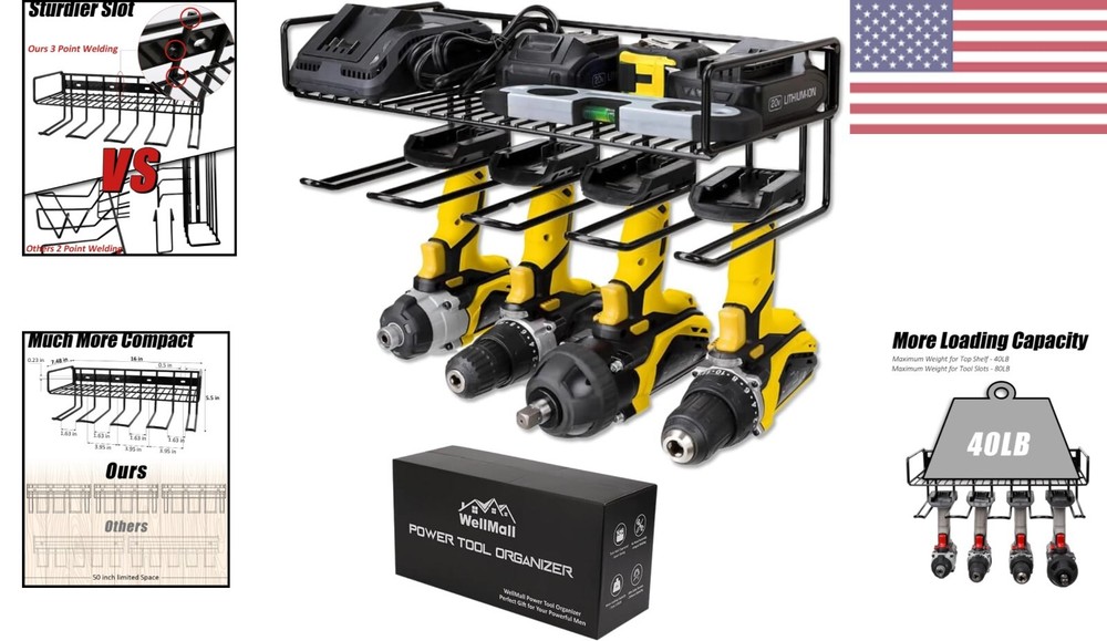 Compact Wall-Mounted Power Tool Rack with Sturdy Slots - Heavy-Duty Construction ‹ › ‹ › ‹ › ‹ › ‹ › ‹ › ‹ › ‹ › ‹ › ‹ › ‹ › Compact Wall-Mounted Power Tool Rack -Sturdy Slots -Heavy-Duty Construction Features: Turns tools mess workbench or wasted wall space into a tidy and high efficiency working place Can hold maximum 100 lb tools with all 4 wall mount anchors Top shelf can hold max load 40 lb and below 4 tool slots with max capacity 80 lb Sturdier slots with 3 point welding for added durability Compact design with 16" width, 7.48" height, and 5.51" depth 4 installation holes with 3.95inch spacing between each Can be mounted on pegboard, wood wall, or cement wall Great for workshop organization and storage Benefits: Efficiently organizes power tools like drills Heavy-duty design for maximum loading capacity Sturdy slots prevent tools from breaking or bending Compact design saves space and keeps tools easily accessible Easy to install and suitable for various types of walls Great gift idea for Father's Day or for any DIY enthusiast Why choose our Compact Wall-Mounted Power Tool Rack? Sick of a cluttered workbench or wasted wall space? Our Compact Wall-Mounted Power Tool Rack is the solution you need. With its heavy-duty construction and sturdy slots, this tool organizer can hold up to 100 lbs of tools, keeping your workspace neat and efficient. The compact design and easy installation make it a versatile choice for any workshop or garage. Don't settle for flimsy tool racks - choose our durable and reliable Compact Wall-Mounted Power Tool Rack today! Shipping Free & Fast Shipping - We offer free shipping to most of the USA with a normal delivery time of 3-7 days. However, due to the current situation, additional delivery time (up to 3 weeks) may be required for some items. Alternative Carriers - We may use alternative carriers (e.g. USPS, FedEx, UPS, etc.) to ensure your package arrives safely and on time. Due to the use of multiple carriers, we are unable to provide a tracking number automatically. Handling Time - Orders are processed and shipped within 1-2 business days of receiving cleared payment. Shipping Restrictions - Shipping to Alaska, Hawaii, Puerto Rico, Guam, and other US territories may incur shipping charges or delivery restrictions. Please contact us before ordering, or your order can be refunded/cancelled. State Restrictions - There may be restrictions based on your state of purchase. For example, certain items may not be shipped to California due to state regulations. Contact for Tracking Updates - If you require tracking updates or have any concerns about the delivery of your order, please feel free to contact us, and we will be happy to assist you. Return 30-Day Hassle-Free Returns - We want you to be completely satisfied with your purchase. If you are not, you can return the item within 30 days of receiving it for a full refund or exchange. Easy Return Process - To start a return, simply contact us and we will provide you with a prepaid return shipping label and detailed instructions. Restocking Fee - There are no restocking fees for returns. However, the buyer is responsible for return shipping costs if the return is not due to a seller's error. Refund Processing Time - Refunds will be processed within 5 business days of receiving the returned item in its original condition. Payment We accept all major credit cards, PayPal, and Apple Pay for your convenience. Your payment information is secure and encrypted to ensure a safe and seamless transaction. Please complete your payment within 3 days of purchase to avoid any delays in shipping. Feedback Your feedback is extremely important to us. We strive to provide the best products and customer service possible. If you are satisfied with your purchase, please take a moment to leave us a positive review. If you have any concerns or issues with your order, please contact us before leaving negative feedback. We are committed to resolving any problems and ensuring your satisfaction. Contact Us If you have any questions or concerns, please feel free to reach out to our customer support team. You can contact us through the eBay messaging system. We are available Monday to Friday, 9:00 am to 5:00 pm EST, and we will do our best to respond to your inquiry within 24 hours. Thank you for supporting our small family business!