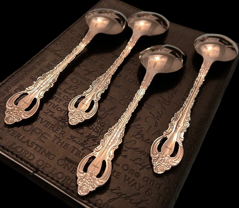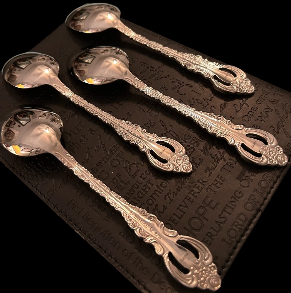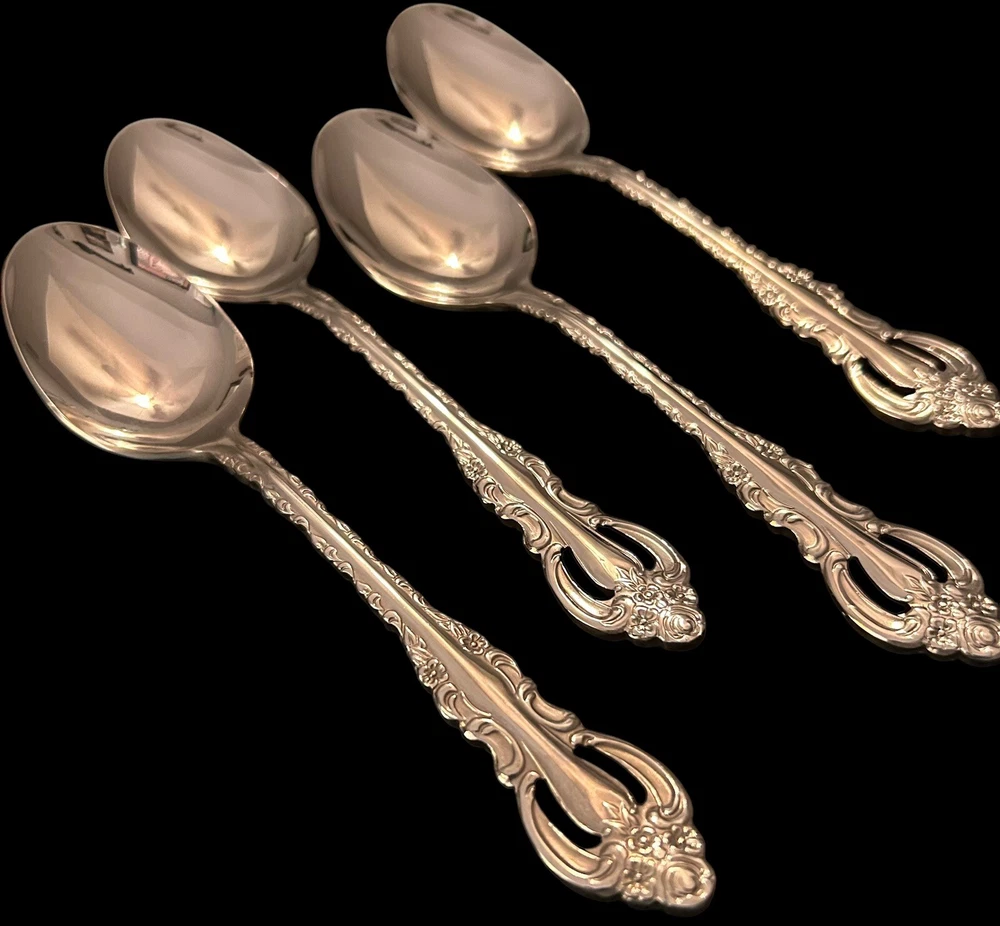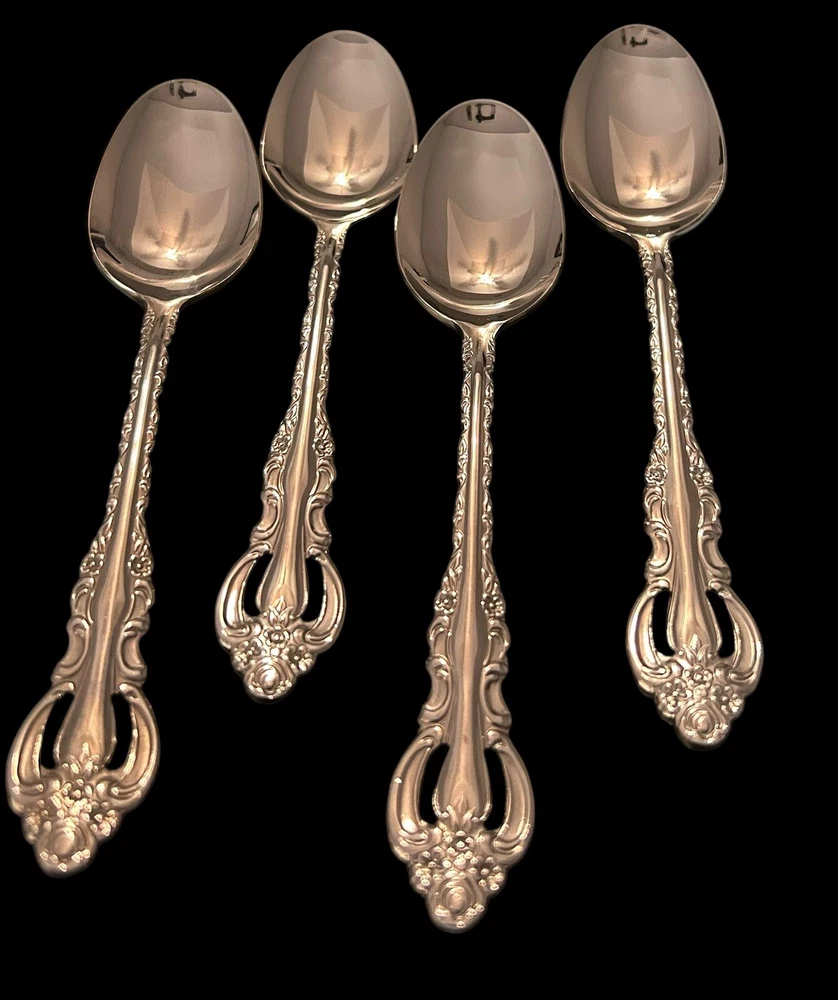 Wallace Countess 18/10 Stainless Oval Place Soup Spoons Glossy Flatware 4Pc Set