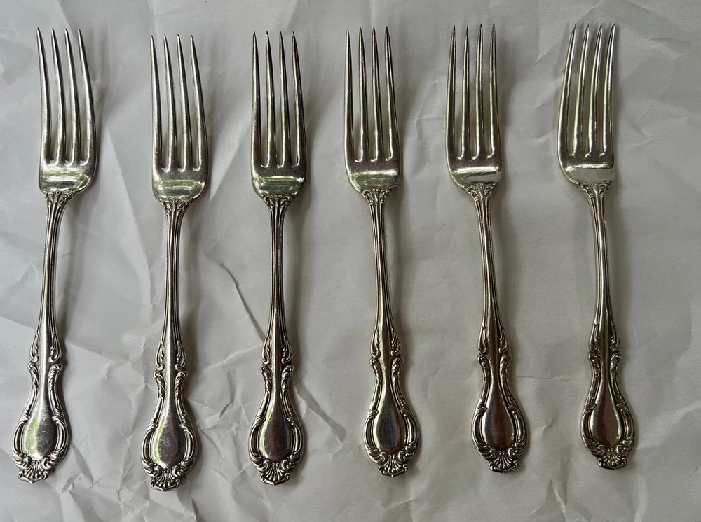 Wallace Silverplate JOAN Dinner Fork Flatware 1835 R Wallace A1 Lot of 6 Forks