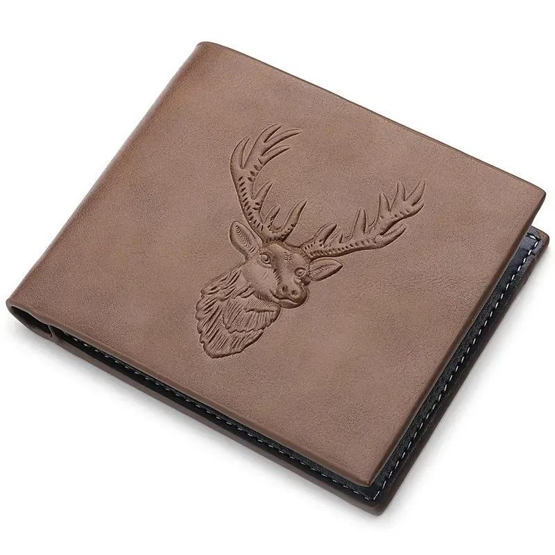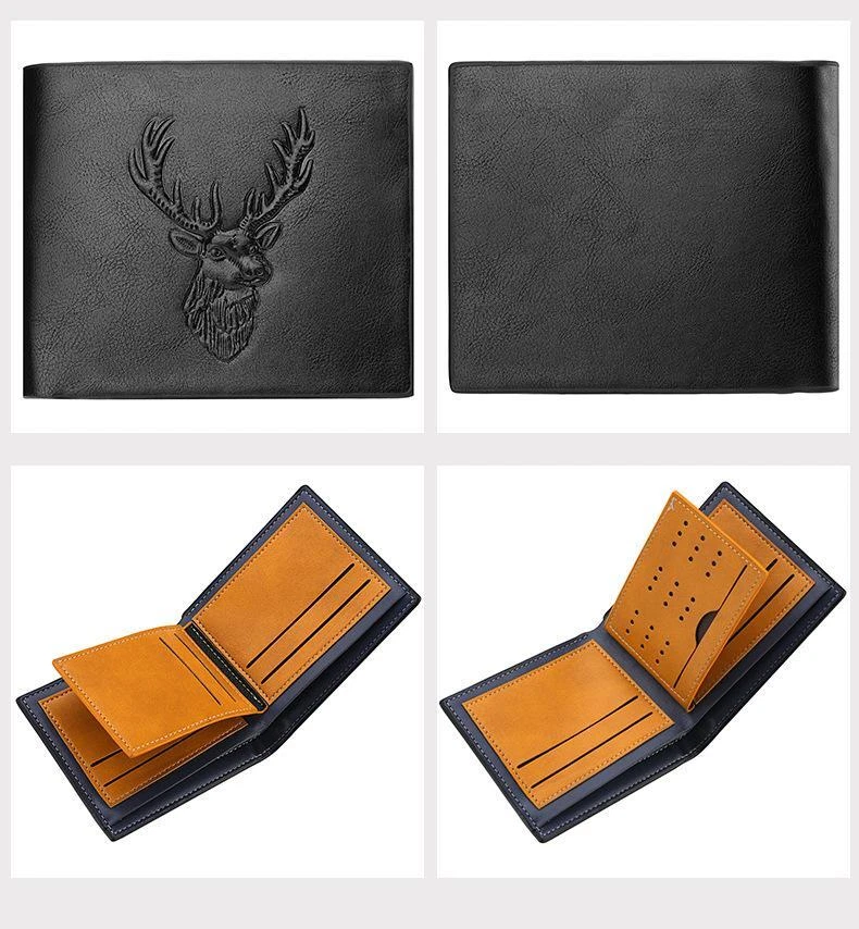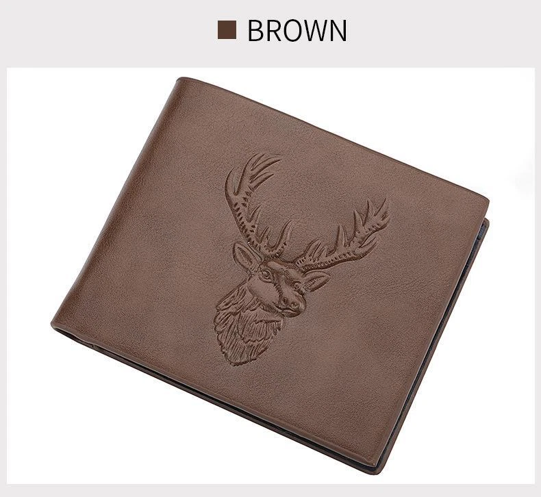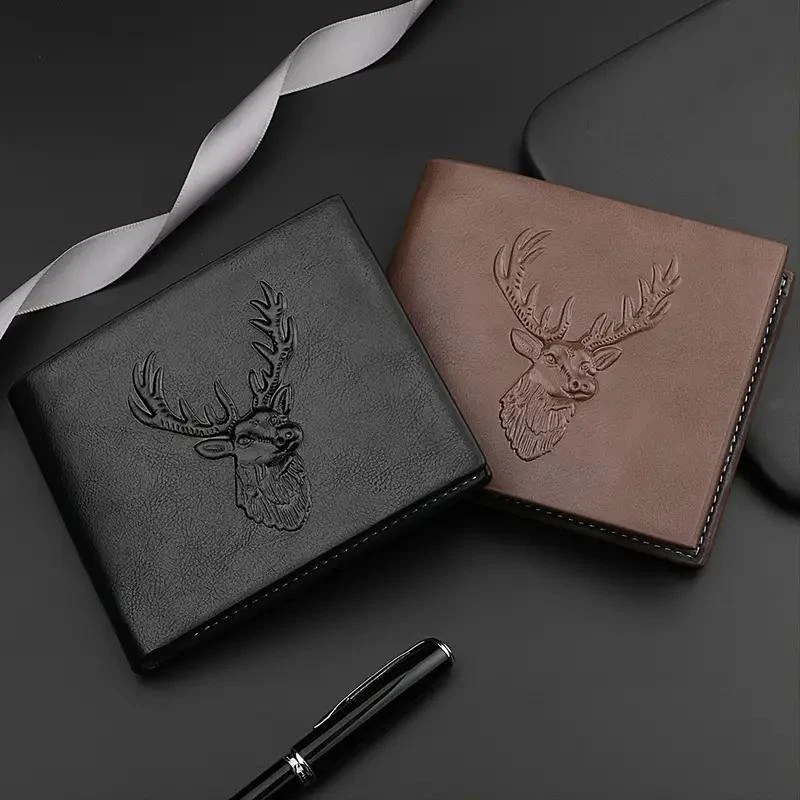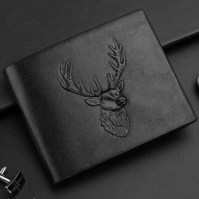 Free and fast shipping , shipping take up 1-7 Business Days 30 Day Return Accepted EASY PAYMENT via PayPal, Credit Card, PayPal Credit, Google Pay... Wallet Credit Card Holder Deer Leather Multicolor Modern Solid Small Slim Man Men's Deer Head Pattern Wallet Classic 3D Embossed Design Make Three-fold Multiple Card Slots Leather Wallet Features: 1. Stylish and Classic: Deer head pattern and 3D embossed design make this wallet a timeless accessory for any business occasion. 2. High-Quality Material: Made of premium PU leather, this wallet is durable and comfortable to touch. 3. Spacious and Organized: With multiple card slots, a clear ID window, and a large bill compartment, this wallet can hold all your essentials in an organized way. 4. Perfect Gift: This wallet is a perfect gift for any man who values style and functionality. REVIEWS The product came very well packaged. I'm very happy. thank you for everything. Seller strongly recommended. This is great! I definitely recommend! Product looks amazing Delivery was fast. Excellent seller, great communication. I advise everyone to buy it!