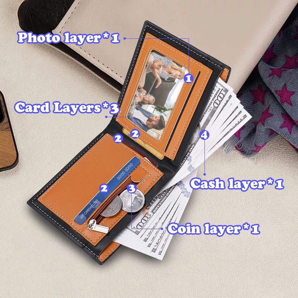 Description: Material: PU leather Color: black / brown Weight: 90g/pc Size: 12*10*1.5cm / 4.7*3.9*0.6inches Package: 1*men wallet Tips: 1. The size is manually measured,and please allow a 1mm error. 2. Due to different shooting light, the color may have a slight error, please understand, thank you. Timeless Sleek: This is made of PU leather, with a comfortable touch and durability. The wallet’s classic carbon fiber finish is exquisitely stylish, effortlessly blending elegance, quality, and practicality into one stunning design. Elite Features: The zippered pocket can store coin, 3 card slots plus 1 ID window enable instant retrieval while traveling, at stores or workplaces, 2 large cash compartments that can accommodate the cash needed for daily use. Minimalist Bifold Wallet: The front pocket wallets for men measure 4.7*3.9*0.6 inches, and this thin wallet is slim enough to slide effortlessly into your front pocket without bulk, and is crafted for seamless everyday carry. Fashion-Forward & Functional Details: The zipper wallet adopts a contrasting color design inside, with black and brown spliced together, simple and elegant, fashionable and full of vitality. A handy leather tab shields the zipper pull, keeping the interior scratch-free. Fashion-Forward & Functional Details: The zipper wallet adopts a contrasting color design inside, with black and brown spliced together, simple and elegant, fashionable and full of vitality. A handy leather tab shields the zipper pull, keeping the interior scratch-free.