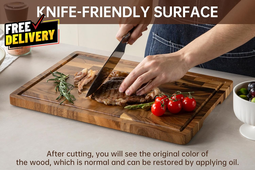 Store New Arrivals Add to Favorite View Feedback Contact Walnut Wood Cutting Board for Kitchen End Grain Chopping Board with Juice Groove Description HIGH-QUALITY END-GRAIN CUTTING BOARD: The unique end grain structure has excellent durability and can withstand heavy cutting without being easily damaged. Its "self-healing" property makes every cut as smooth as silk. The blade cuts between the wood fibers and the fibers quickly close after leaving, keeping the knife sharp as new. JUICE GROOVE AND ANTI-SLIP MAT: Our cutting Board is designed with a deep juice groove with a capacity of up to 3 ounces, which effectively prevents liquid spills and keeps the countertop clean. The included stick-on rubber non-slip feet minimize the risk of injury from sharp knives, allowing the chef to confidently chop and focus on cooking delicious food, enjoying a good time with family. GENTLE ON KNIVES, TOUGH ON TASKS: The 16.5*11.6in cutting board is made of American walnut, which has an ideal hardness to protect the blade while preventing deep cuts. The 0.8-inch thickness ensures that you can complete kitchen preparation tasks such as cutting, chopping, and chopping, suitable for most kitchens and party times. NATURAL WALNUT, HEALTHY LIFE: cutting board is made of premium sustainable wood. Coated with natural beeswax oil before leaving the factory, each cutting board is not only beautiful and durable, but also waterproof and stain-resistant without chemical coating. Natural walnut wood allows you to enjoy the fun of cooking while protecting the health of your family. Included Components Non-slip Feet Number of Items 1 Color Wood Pattern End Grain Material Walnut Wood Material Type Walnut Wood Item Weight 3.8 Pounds Shape Rectangular Product Care Instructions Hand Wash Only Recommended Uses For Product Bread, Fish, Fruit, Meat, Vegetable Special Feature Build-in Groove, Non Slip Feet, Reversible Product Dimensions 16.5"L x 11.6"W x 0.8"Th Cartoon Character Green Size 16.5"L x 11.6"W ABOUT US Prior to making any purchase from our store, we’d like to introduce ourselves. My name is Shahzad Yaqub , and I am the proud owner of Epic Emporium Deals , located in the great state of Illinois, USA. I have been an active and trusted eBay seller since Jan 14, 2025 . At Epic Emporium Deals , we are committed to offering competitive prices and top-quality products . Our extensive collection features a wide variety of items, including media such as books, movies, music, and games , as well as electronics, toys, sporting apparel, clothing, tools , and general home and garden essentials —and much more! If you have any questions or require assistance, please don’t hesitate to reach out. Your satisfaction is our priority, and we look forward to providing you with an exceptional shopping experience. SHIPPING We are always working hard to ensure your package arrives as soon as possible. Please understand that some factors like weather, high postal traffic, and the performance of shipping companies are outside of our control. We offer free shipping to the lower 48 states and ship within 2 business days of payment, usually sooner. We do not accept P.O. Boxes. Please provide a physical address. For shipping outside of the continental USA, we only use eBay's Global Shipping Program. The item is shipped to IL and then sent to the rest of the world. International customers are responsible for all duties and taxes. Continue to 'check out' to calculate costs for shipping the item to your country. Messages regarding eBay's Global Shipping Program MUST be directed at eBay EXCLUSIVELY. RETURNS We do not accept returns under normal circumstances. However, we will gladly consider a return if the item is received broken or if the wrong size is sent to you. In all other cases, returns will not be accepted. CUSTOMER SATISFACTION We try our very best to make sure every customer is completely satisfied. If there's a problem, message us! We're happy to help.