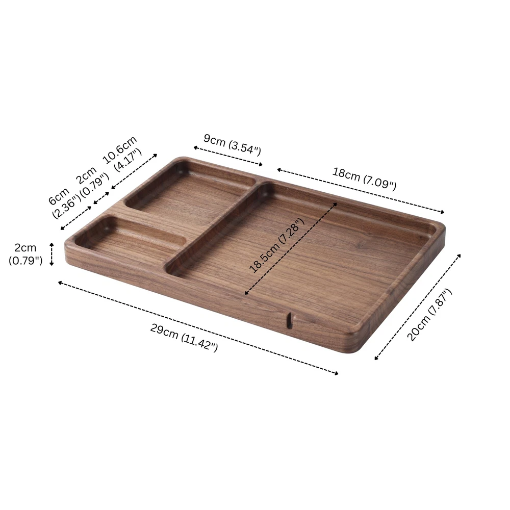 Versatile Organization: Valet tray is the perfect choice for bedside table or entryway console table. It can hold items such as phones, keys, glasses, wallet, and more. Keep your life organized and make your daily routines more convenient and orderly Richly Textured Walnut Wood: Crafted from elegant walnut wood, The delicate texture brings a natural beauty and unique texture to the accessories organizer tray. this walnut edc tray adds a touch of elegant to any space Charging Slot: The slot can secure the charging cable, allowing you to easily find and quickly connect it when you need to charge your device. Enjoy the convenience of a neat and organized desk Smooth Lines: We have meticulously polished the edges of the tray to showcase smooth, rounded lines. This design not only enhances its visual appeal but also adds to the comfort of use Perfect Gift Idea: Edc tray is a unique and thoughtful gift, perfect for presenting to your loved ones on various special occasions, Whether it's Mother's Day, Father's Day, Valentine's Day, or Christmas