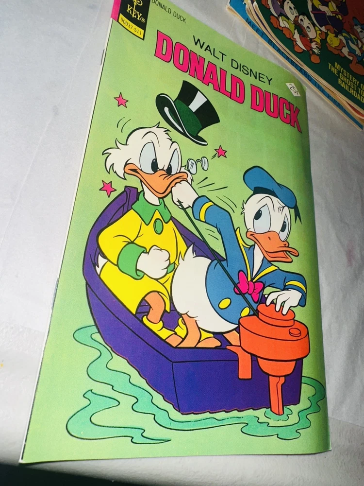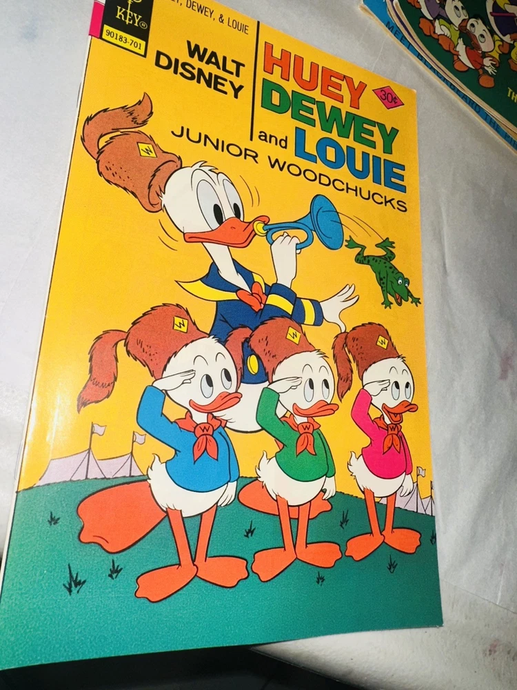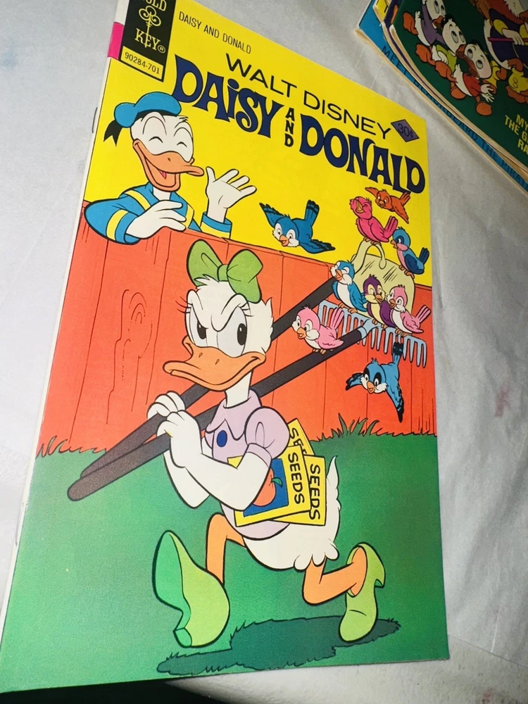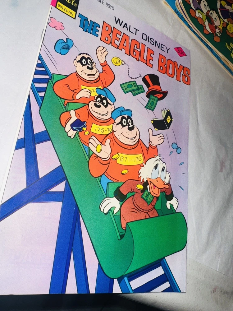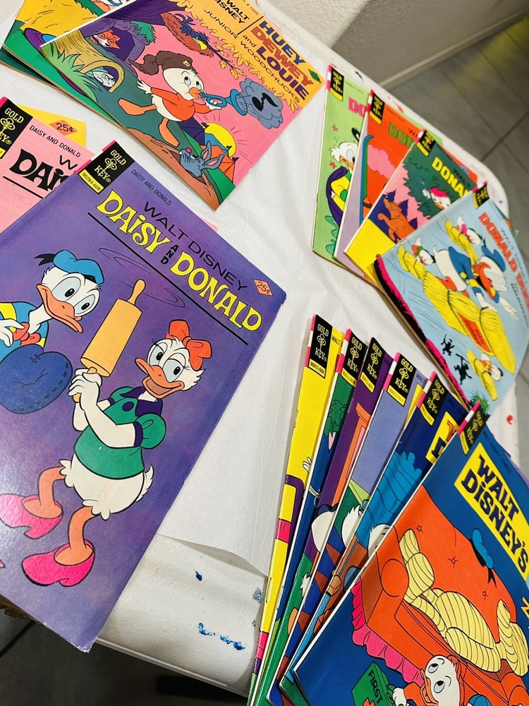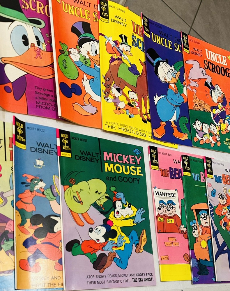 The product is a lot of 29 Walt Disney comic books from the Gold Key series, dating from 1975 to1977. Offers welcome Titles include: 6 Comics and stories 4 Daisy and Donald 4Donald Duck 4HueyDewey&Louie 3Mickey and Goofy 5Uncle Scrooge 3TheBeegleBoys Some are really great condition, others are mid and very little are low.