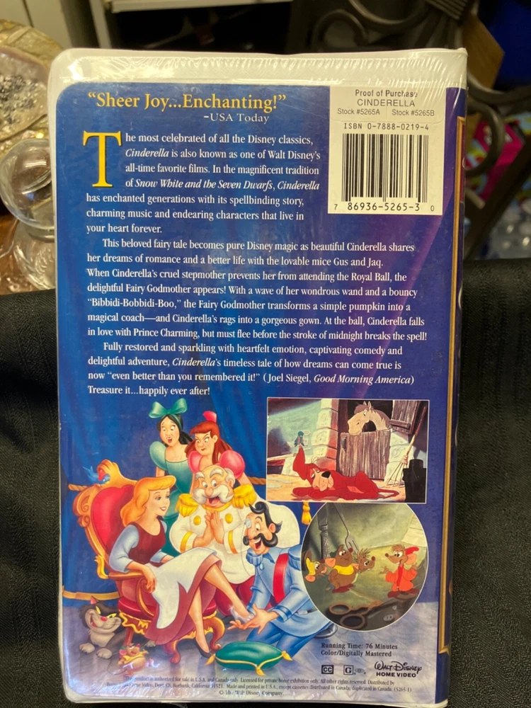 This rare VHS tape of Walt Disney's Masterpiece Cinderella is a must-have for any fan of animation and anime. The tape comes in a limited edition clambshell case and features the classic 1950 film in its original English language and G rating. The film is a fantasy masterpiece and is perfect for family viewing. This VHS tape is not a former rental collection and was manufactured in the United States by Disney. It is a great addition to any movie and TV title collection and is sure to be a treasured possession for years to come. Get your hands on this rare VHS tape today!
