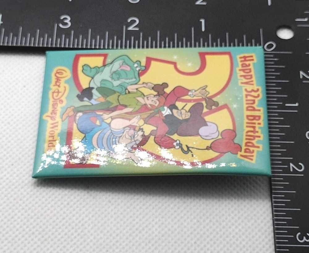 Walt Disney World 32nd Birthday Button Pin Peter Pan Captain Hook Smee Collectible