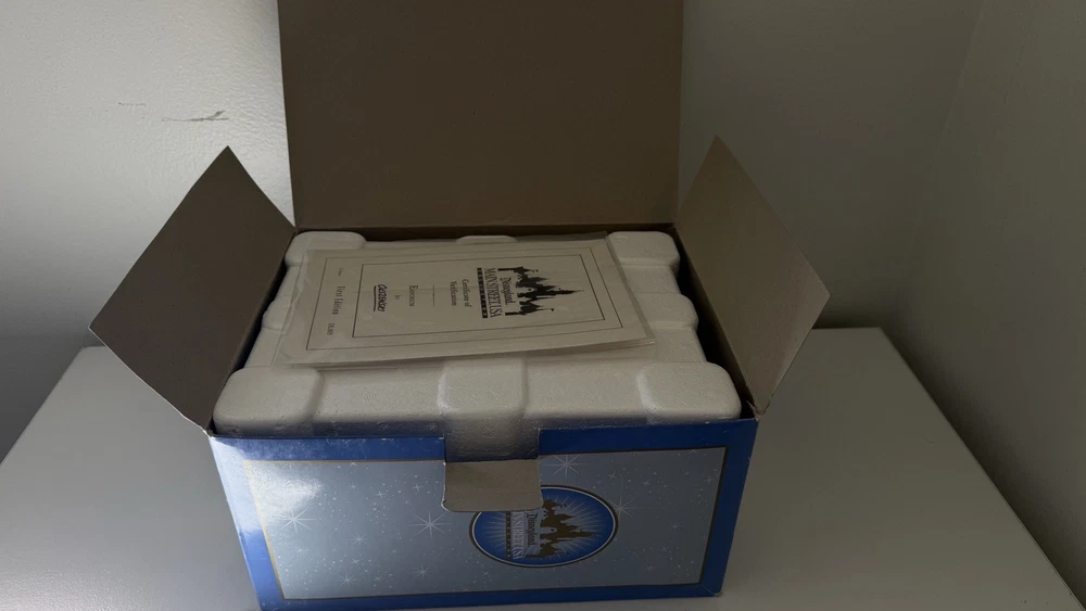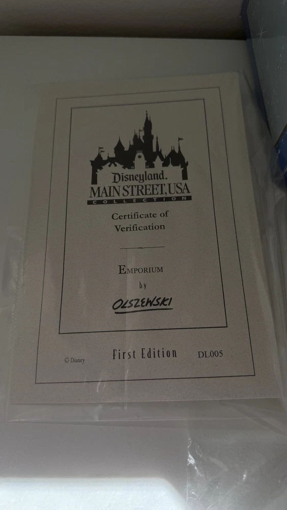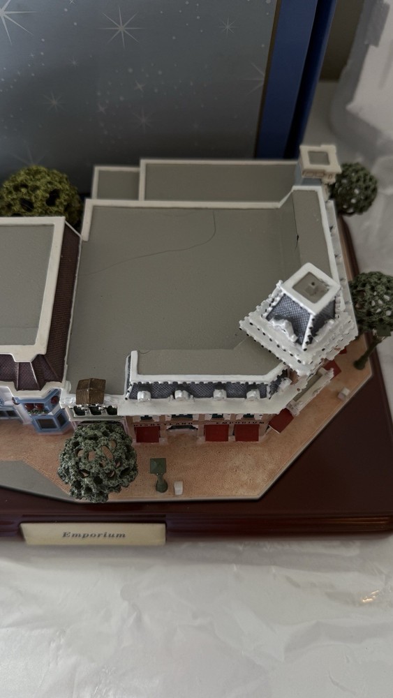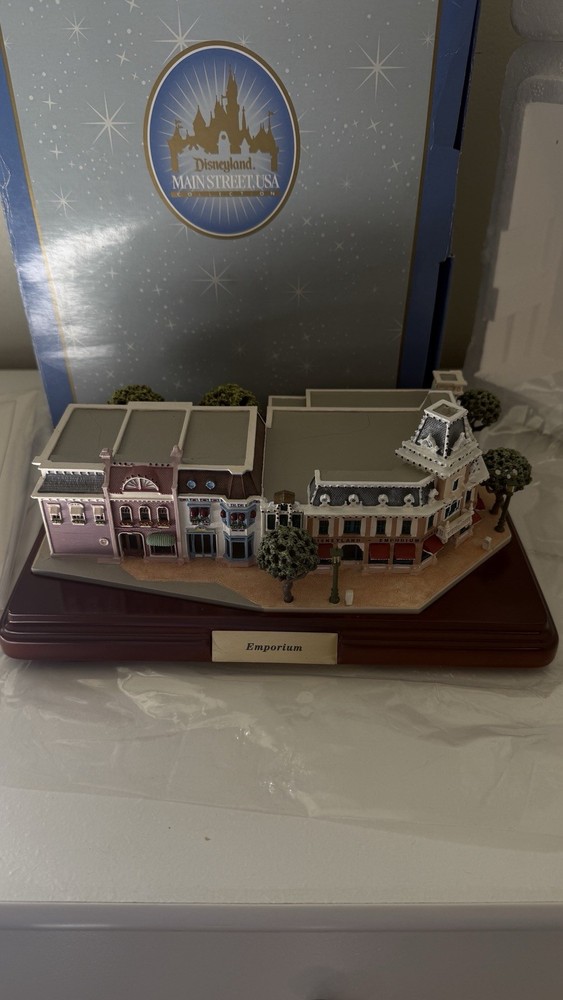 The Walt Disney World Main Street USA EMPORIUM Miniature First Edition by Olszewski is a collectible item that captures the charm and nostalgia of the classic Disney theme. Released in 2010, this miniature replica of Main Street USA from the Disney franchise is a special edition piece that would be a perfect addition to any Disney fan's collection. Featuring intricate details and craftsmanship, this item brings to life the beloved streets of Disney's Main Street USA in a smaller scale, making it a cherished memorabilia for fans of all ages. please view photos to see item condition  as seen in photos there seems to be a little bit of crack on the roof item is new inbox with all original parts and certificates. If you need additional information, please reach out.