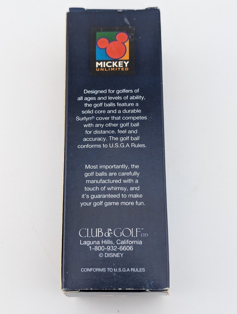 We offer combined shipping! If you purchase all your items in a single transaction (one cart), a shipping difference refund will be processed after the order has shipped. This is a wonderful, vintage collectible for the Disney enthusiast and golfer! Item Details: Product: Disney Mickey Unlimited Golf Balls Character: Golfing Mickey Mouse graphic on the box. Material: Lithium Surlyn Condition: New in original packaging Don't miss out on this charming piece of Disney golf history!