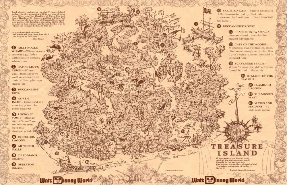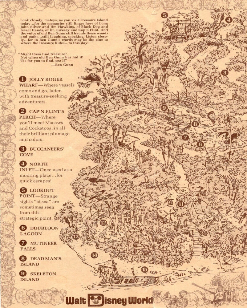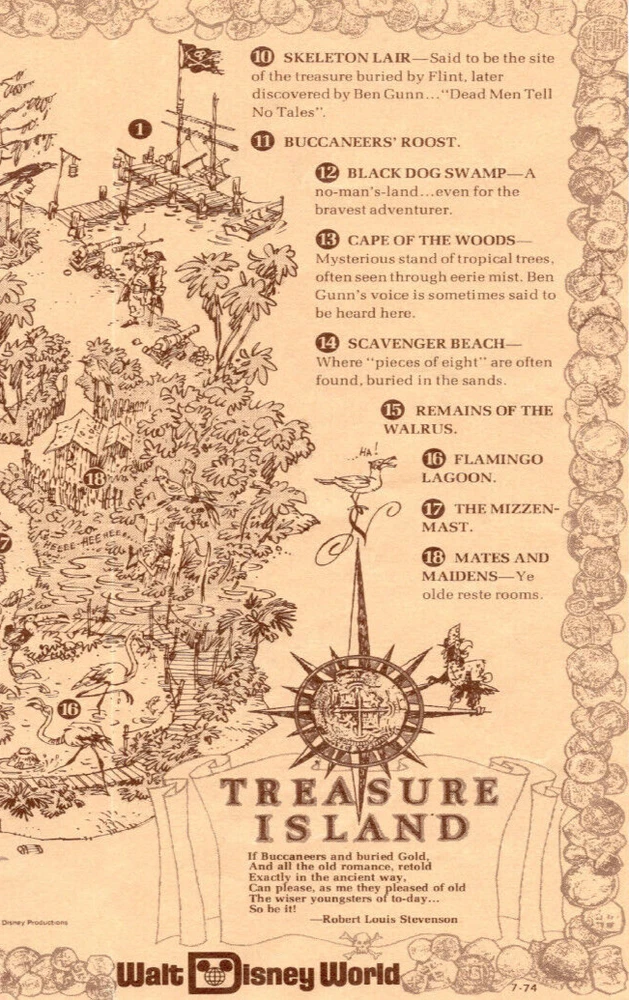 Walt Disney World Treasure Island Map Jolly Roger Skeleton Island Print Poster