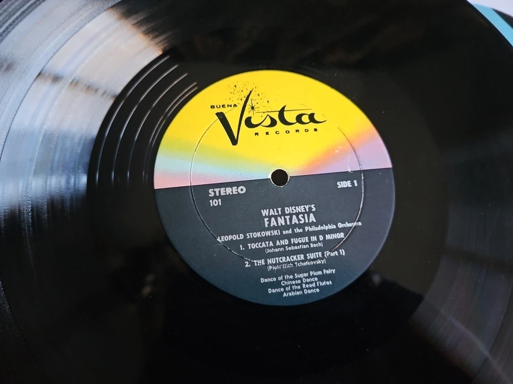 UPC: Does Not Apply Color: Black Format: Record Type: Triple LP Instrument: Acoustic Guitar, Bass Guitar, Cello, Clarinet, Drums, Flute, French Horn, Guitar, Harp, Horn, Organ, Percussion, Piano, Saxophone, Trombone, Trumpet, Tuba, Viola, Violin Artist: Leopold Stokowski Language: English Material: Vinyl gtin13: Does Not Apply Release Title: Walt Disney's Fantasia Country/Region of Manufacture: United States Case Type: Cardboard Sleeve Record Label: Buena Vista Records ‎ Features: Original Cover Number of Audio Channels: Stereo Style: 1970s, Film Score/Soundtrack Era: 1960s Speed: 33 RPM Performer Orchestra: The Philadelphia Orchestra Inlay Condition: Very Good (VG) Record Size: 12" Edition: Reissue Sleeve Grading: Worn (W) Release Year: 1964 Conductor: Leopold Stokowski Genre: Classical Producer: Leopold Stokowski Record Grading: Very Good Plus (VG+) Catalog Number: STEREO 101