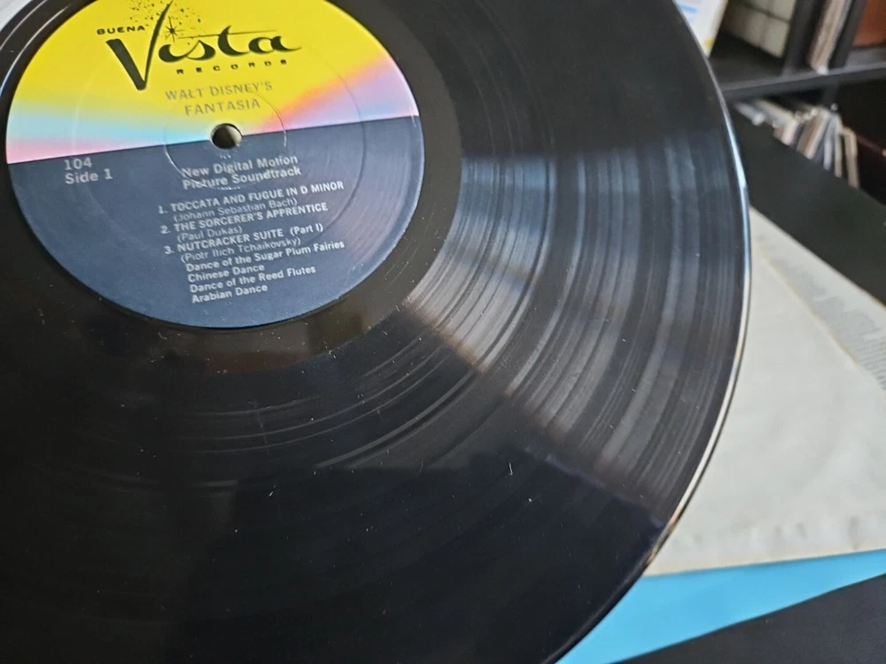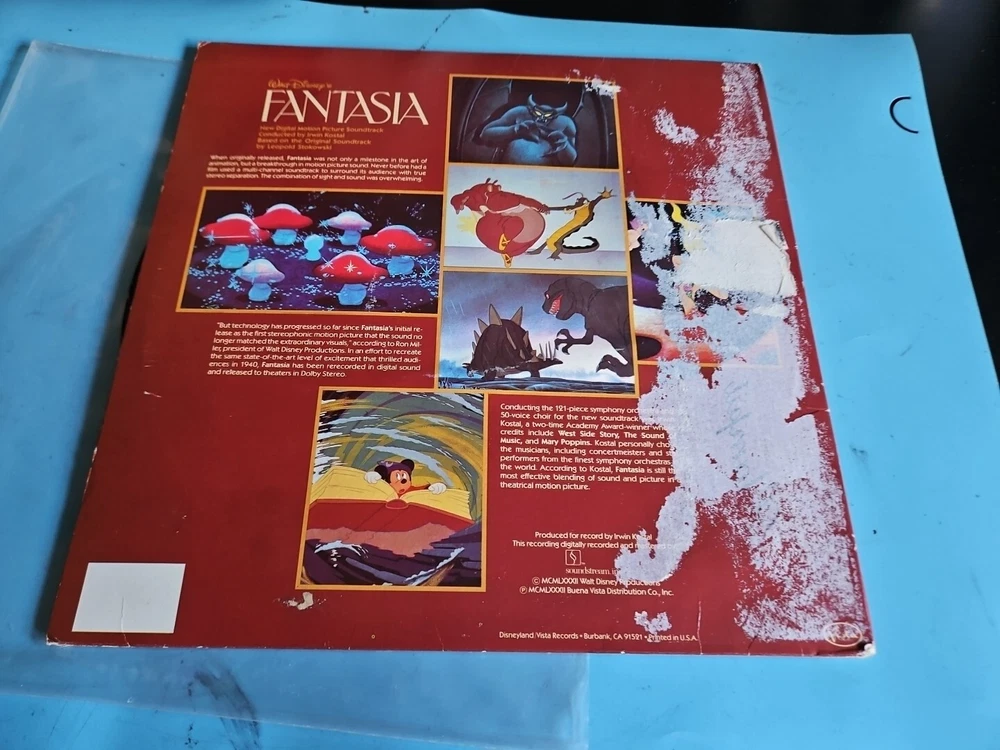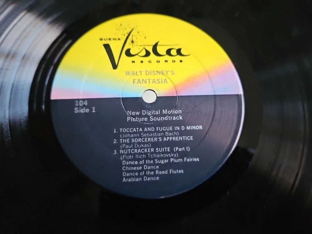 Irwin Kostal – Walt Disney's Fantasia Label: Buena Vista Records – 104, Buena Vista Records – V 104 Format: 2 x Vinyl, LP, Album, Promo Country: US Released: 1982 Genre: Classical, Stage & Screen Style: Soundtrack, Baroque, Romantic, Classical A1 Toccata And Fugue In D Minor Composed By – Johann Sebastian Bach A2 The Sorcerer's Apprentice Composed By – Paul Dukas Nutcracker Suite (Part 1) A3.1 Dance Of The Sugar Plum Fairy Composed By – Peter Ilich Tchaikovsky* A3.2 Chinese Dance Composed By – Peter Ilich Tchaikovsky* A3.3 Dance Of The Reed Flutes Composed By – Peter Ilich Tchaikovsky* A3.4 Arabian Dance Composed By – Peter Ilich Tchaikovsky* Nutcracker Suite (Part 2) B1.1 Russian Dance Composed By – Peter Ilich Tchaikovsky* B1.2 Waltz Of The Flowers Composed By – Peter Ilich Tchaikovsky* B2 Pastoral Symphony (The Sixth) Composed By – Ludwig van Beethoven C1 Rite Of Spring Composed By – Igor Stravinsky D1 Dance Of The Hours Composed By – Amilcare Ponchielli D2 A Night On Bald Mountain Composed By – Modest Mussorgsky D3 Ave Maria Composed By – Franz Schubert Record Company – Disneyland/Vista Records Phonographic Copyright ℗ – Buena Vista Distribution Co., Inc. Copyright © – Walt Disney Productions Pressed By – PRC Recording Company, Compton, CA Conductor, Producer – Irwin Kostal Liner Notes – David R. Smith Recorded By, Mastered By – Soundstream, Inc. "New digital motion picture soundtrack" (Promotional Copy NOT FOR SALE)