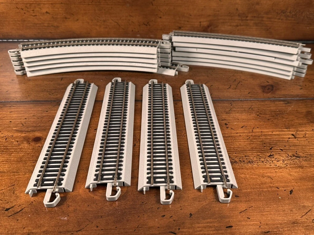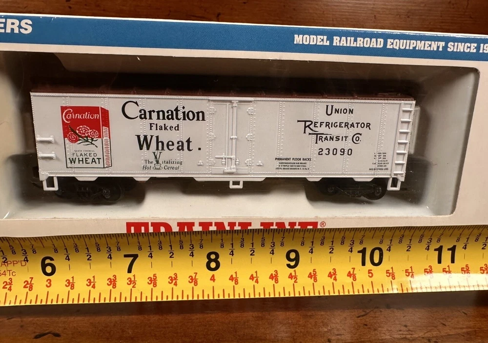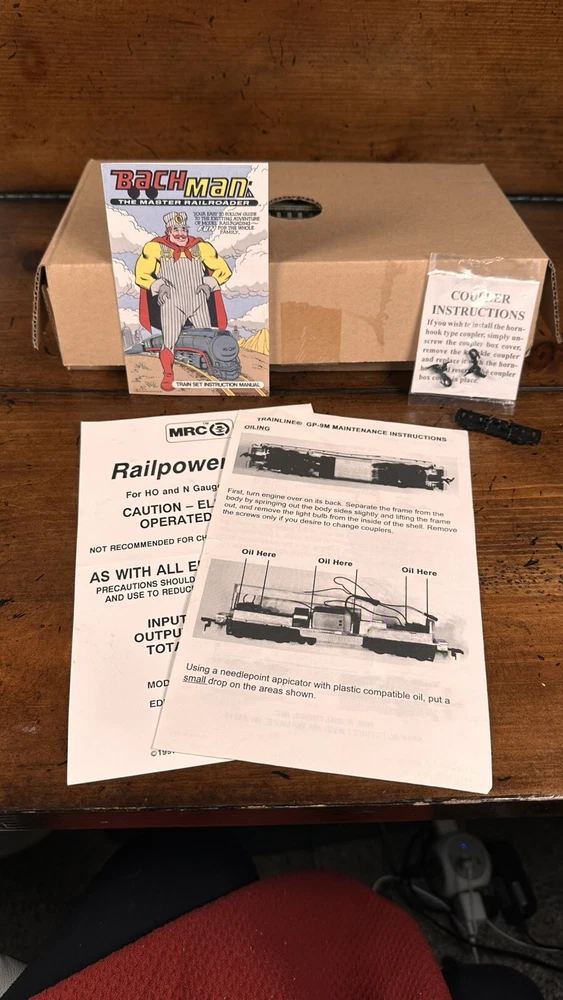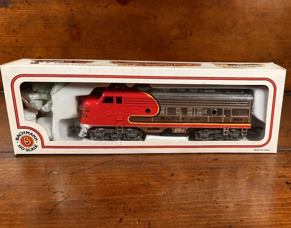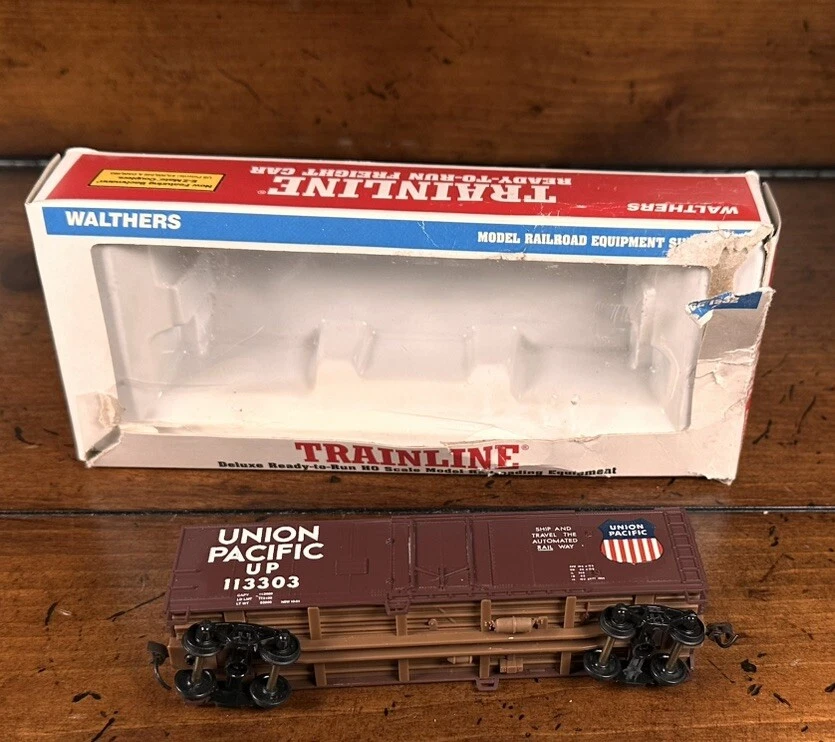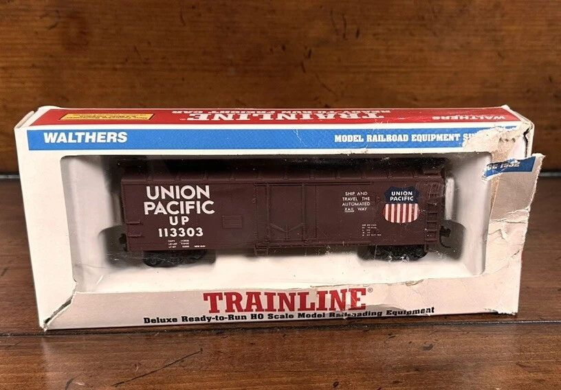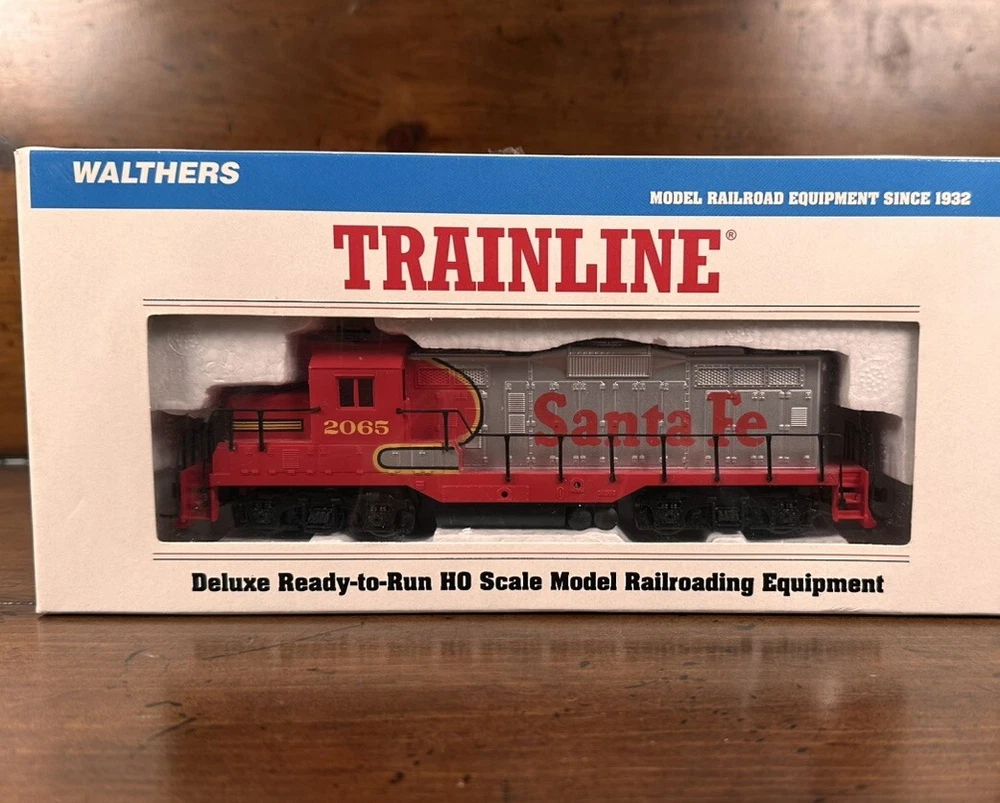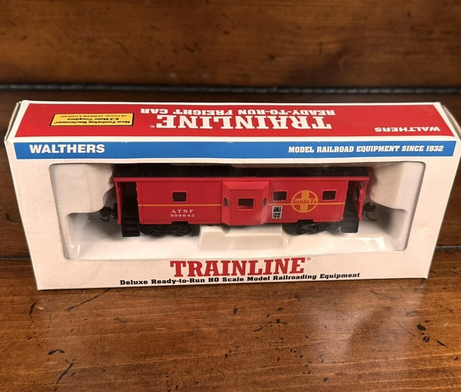 The Walthers Trainline Deluxe HO Model Train Set is a vintage 1998 train set featuring a Santa Fe Southern Railway replica box car. This pre-built set includes a powerful diesel locomotive, 5 train cars, Bachmann EZ Track rail system, MRC Power Pack, and working headlights. Perfect for collectors and model train enthusiasts, this electric train set also includes a Railpower 1300 Powerpack for control. Weighing 6 lb, this HO scale train set is a great addition to any model railroad layout. A few boxes are torn, but are in working condition