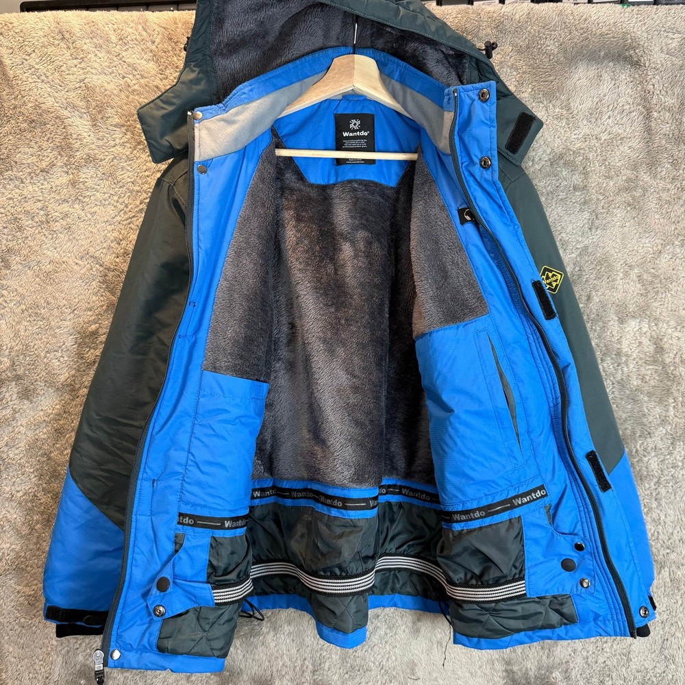 Wantdo Men's Waterproof Winter Jacket Warm Winter Coat Jacket Ski Jacket Hooded Parka Blue Gray M Medium Size medium, approx measurements in photos Gently worn, minor wear, see closeup photos. No stains, rips, ect.