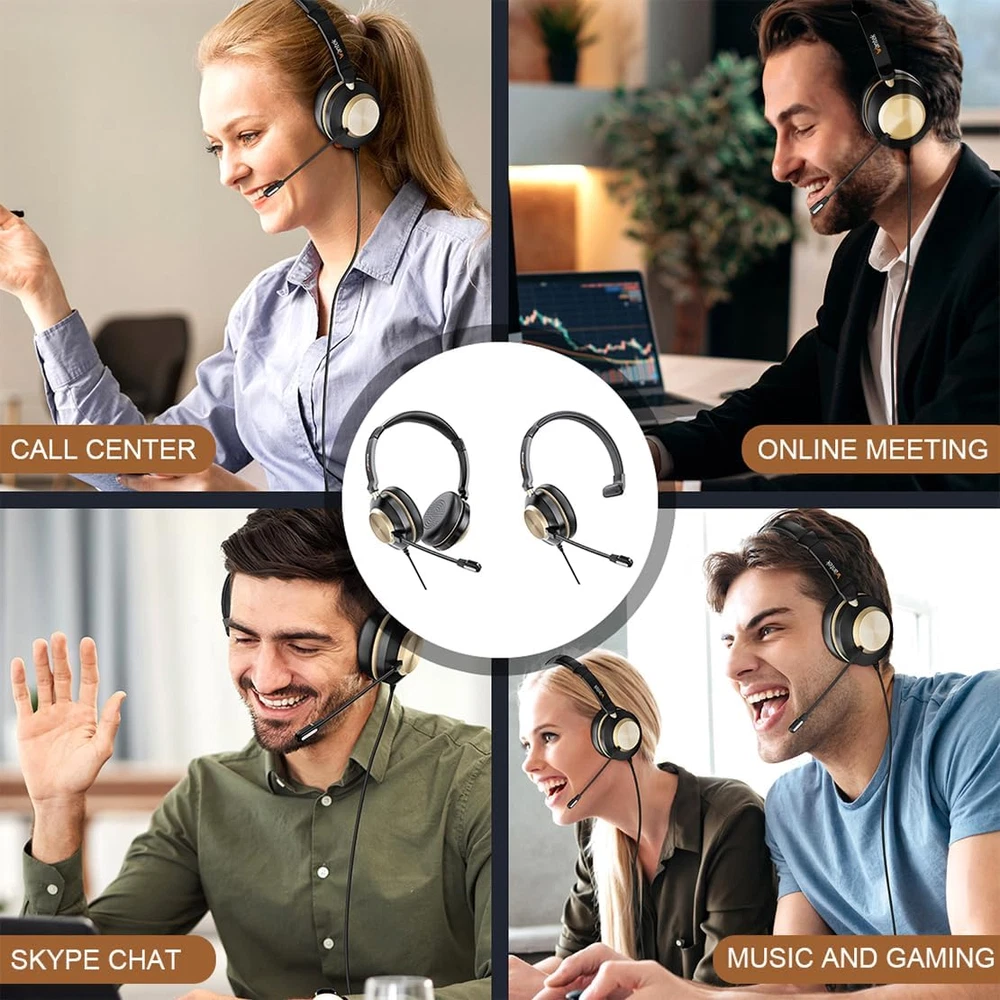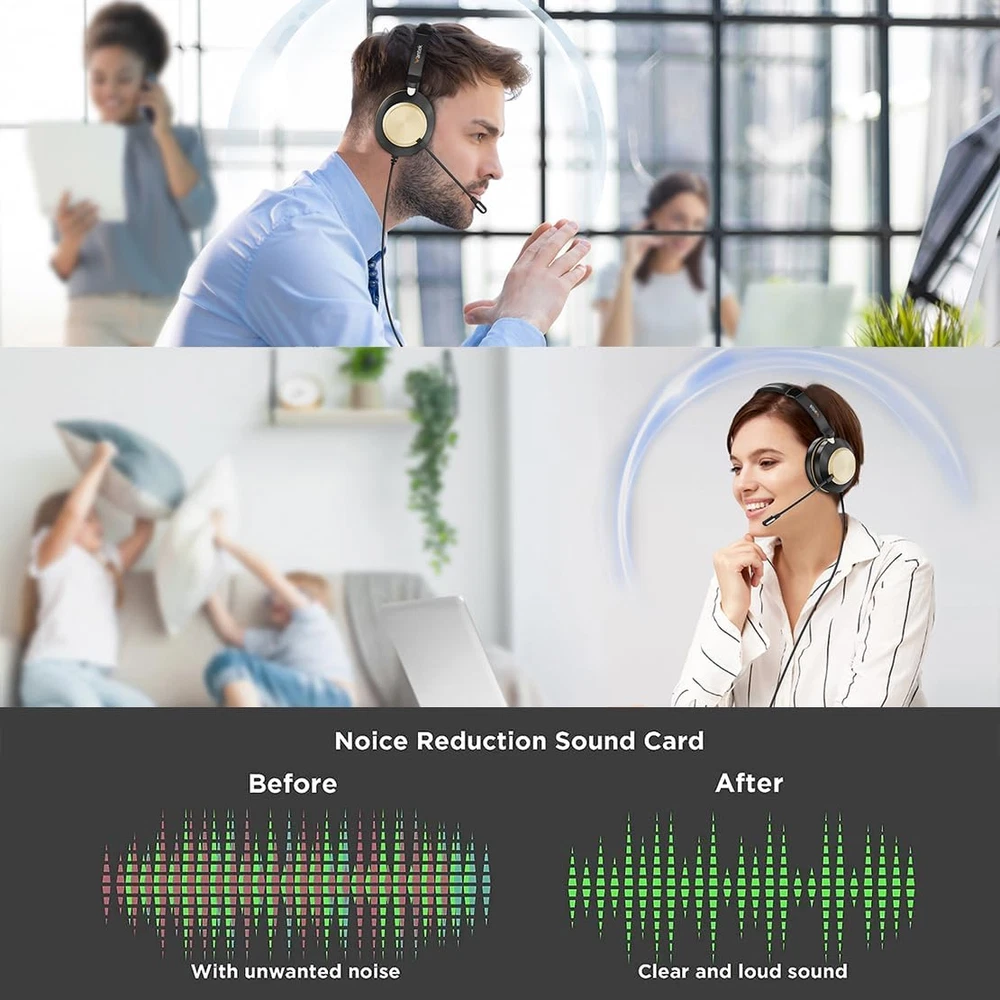 About this item [Wide Compatibility]:Wantek pc headsets can be connected to your devices in three ways including USB, Jack 3.5mm and Type-C. So these headphones are able to meet your music or calling needs both indoors and outdoors to fulfill. [Crystal Clear Calls]:Wantek headsets with microphone are specially designed for online chatting,Music and Gaming, It is equipped with the latest (DSP) chips and high-quality speakers to provide you with high-quality stereo sound. Additionally, the microphone reduces 97% background noise to bring your voice clearly to whoever hears you. [Humanized Design]:Wantek Headsets Ultralight, premium shell feels softer and smoother. Improved headband size fit. Adjustable angle fits all head shapes and ears. Wearing the headphones for a few hours will not make your ears uncomfortable. [Convenient Inline Controls]:This headsets adjust volume and mute your microphone via the wired headset cable. Volume up and down, mute/mute microphone and speaker. Plug and Play, no drivers required for PC, Computer, Laptop, Mac...USB compatible devices. [Business Essentials]:You can wear it for meetings, communicate with customers, connect with colleagues, chat with friends on Facebook, Zoom, WhatsApp, Skype, free your hands.