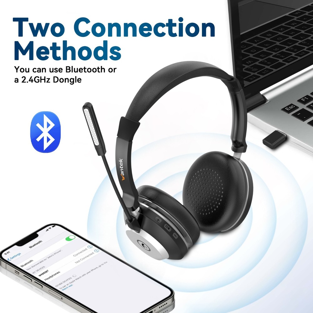 Wantek Wireless Headset with AI Noise Cancelling Microphone Bluetooth Headset