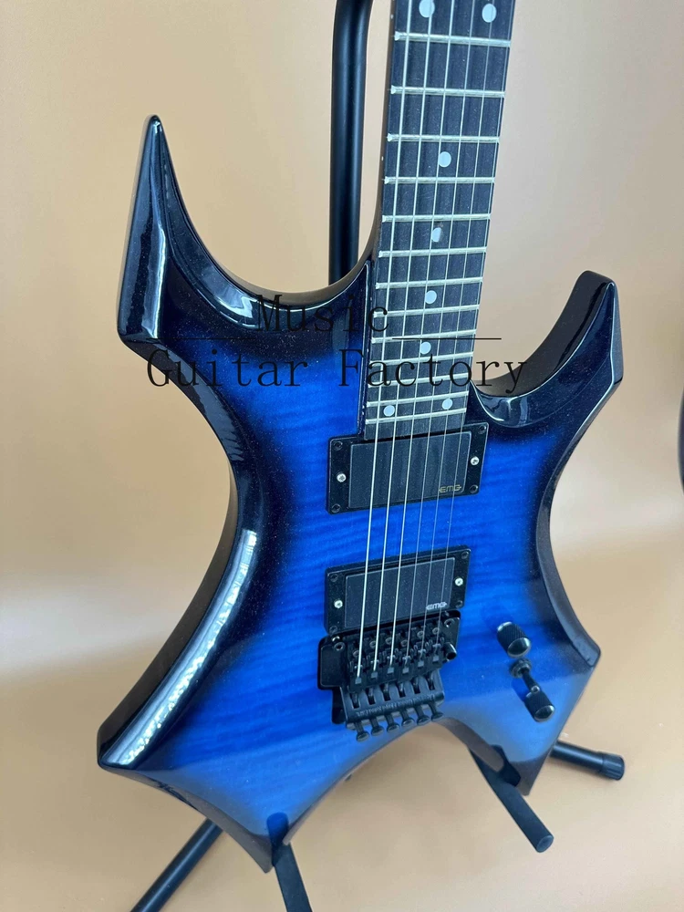 Warlock Blue Flame Maple Top Electric Guitar HH Pickup Black Hardware Fast Ship