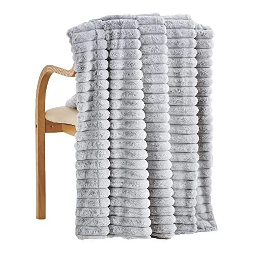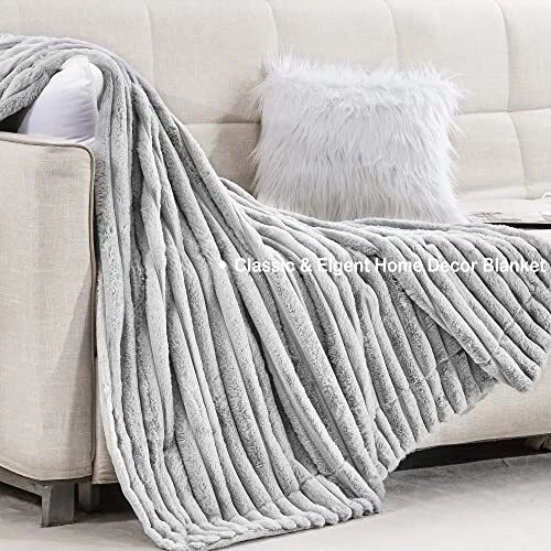 Double-Sided Faux Fur Blanket: High-grade striped rabbit faux fur face design in classic grey color, makes this faux fur throw blanket feel warmer. The skin-friendly flannel fleece fabric in reverse gives you a more cozy feeling. Luxurious and Decor Fleece blanket: This fuzzy blanket is designed for a luxurious feel and elegance, add extra texture to your decor and turns your room into an inviting space with this simple yet classy elegant design. Warm and Cozy Fleece Throw Blanket: fluffy throw blanket (60” x 80”) is better for a twin-size bed or a full-size bed, a perfect companion for snuggling up on the couch, a bed to watch TV, or for nap time. All Seasons Cozy Faux Fur Blanket Gifts: Our gray fuzzy blanket has a beautiful, elegant look and brings you a warm and cozy feeling during daily life, can be a special gift on Valentine's Day, Christmas, and Halloween, Thanksgiving Day, New Year, or Birthday. You can always choose our minky blanket as a sweet surprise for others. Easy-care Faux Fur Throw Blanket: No shedding, anti-static, super soft, durable, breathable, fade resistant, and machine washable, our faux fur throw blanket will look like new after washing, even after using for a long time.