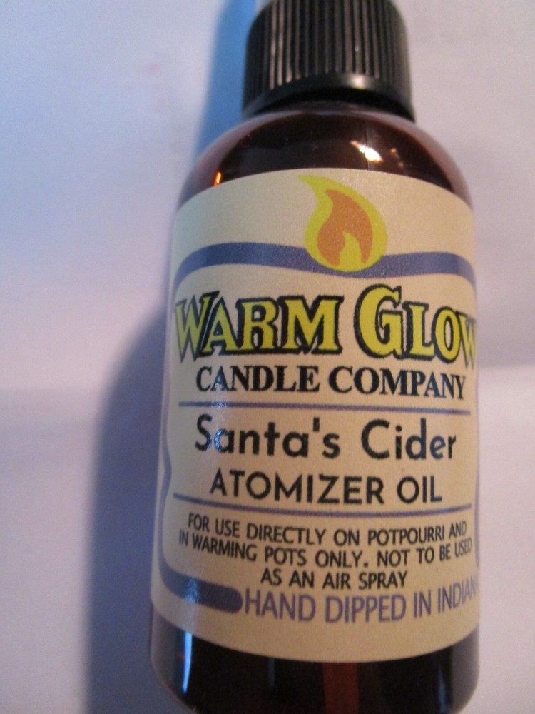 2 oz., bottle of Warm Glow Candle Company Air Freshener Atomizer Oil. Can be used to rejuvenate candles, potpourri, rose hips, or pour into a burner to release a compelling fragrance. Spray a little in your car for a wonderful aroma, furnace filters, vacuum bag or in a register vent. *** SANTA'S CIDER *** This fragrance has captured what Santa's elves could have whipped up for this delectable aroma of fresh apple cider with a hint of cinnamon. Great fragrance during the holidays and winter time. DO NOT ASSUME AN ITEM IS FROM A PET/SMOKE-FREE ENVIRONMENT. If you have less than 10 feedbacks, contact me first before bidding please. >>>Please Read Terms Below Before Bidding<<< PAYPAL ONLY Many items we acquire come from estate and tag sales, along from our own home so please do not assume that an item comes from a pet-smoke free environment. If clothing I would recommend to launder before wearing. Paypal payments expected within 3 days of auction ending. We accept paypal ONLY. We ship to U.S.A. ONLY . If you have any questions please ask before bidding, All sales are Final and SOLD AS IS . Buyer pays all shipping & handling charges. We no longer ship to Alaska & Hawaii. Winner needs to remit payment within 3 days end of the sale. Thanks for looking . Shipping charges will include shipping, delivery confirmation, and packing material. We ship to confirmed address only. Please leave feedback once you have received your item and we will gladly do the same for you! Thank You.