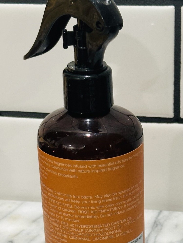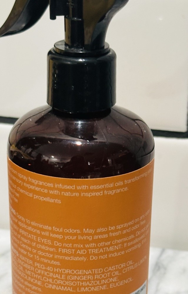 The "Pumping Spice Scent Sweet Warm & Spicy Linen & Room Spray Essential Oil 8oz" is a modern-style spray air freshener designed for indoor use, specifically in bathrooms. It comes in an 8 fl oz plastic bottle with a brown color scheme and a floral theme. Manufactured in 2024 by Absolute Aromas under the brand Essential, this aerosol spray features a linen scent that serves as a deodorizer. The product is a single pack and is powered by an aerosol mechanism for easy dispensing.