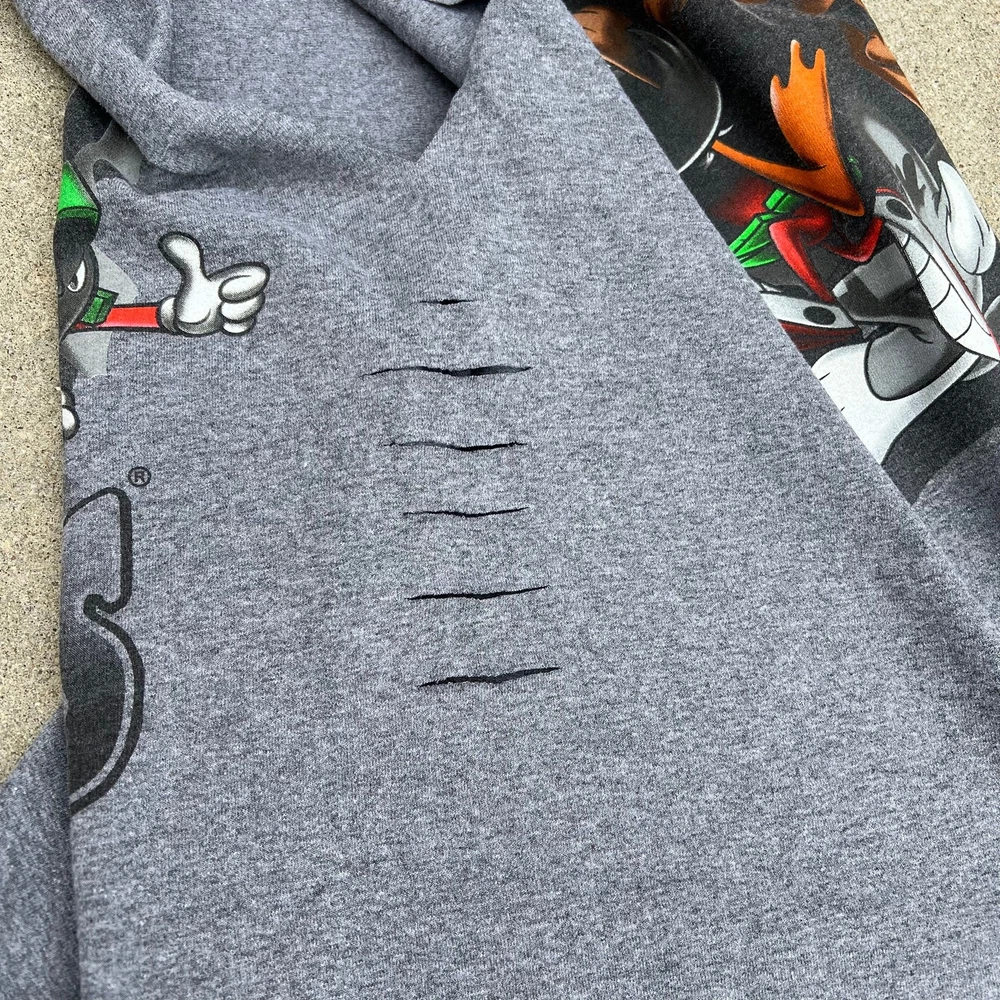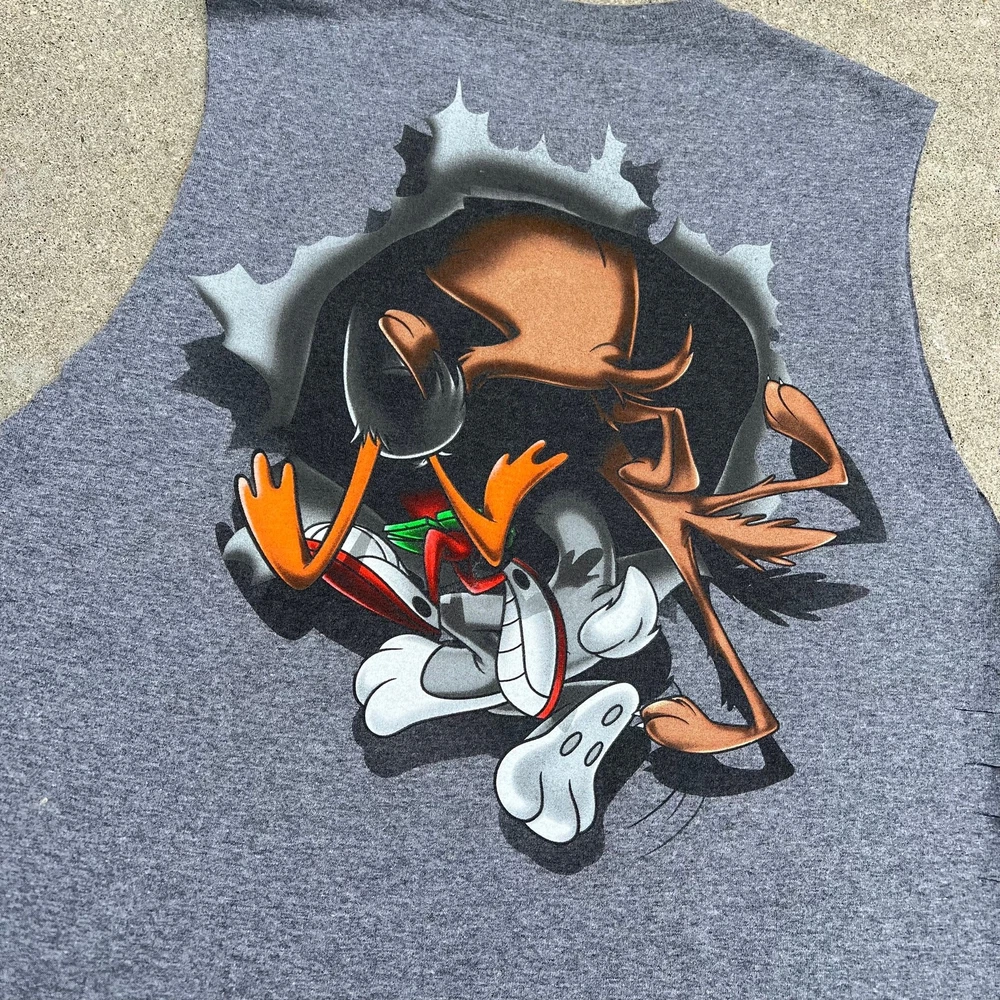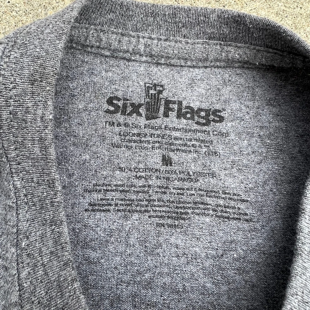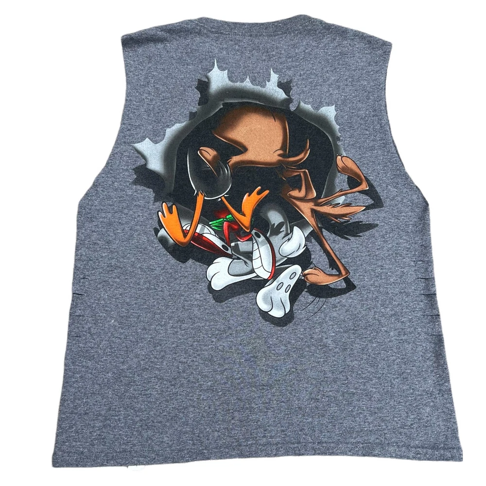 Warner Brothers WB Looney Tunes Six Flags 2015 Reimagined Double-sided Character Sleeveless Shirt Kids Sz M Upcycled sliced sleeves - cuts on side - photos are pre-washed (will share additional photos once washed) - all of the favorite characters: Wil E. Coyote, Taz, Daffy Duck, Marty Martian, and Bugs Bunny tearing through the front of the shirt with SIX FLAGS spelled-out Shop our many other Looney Tunes and reimagined listings!