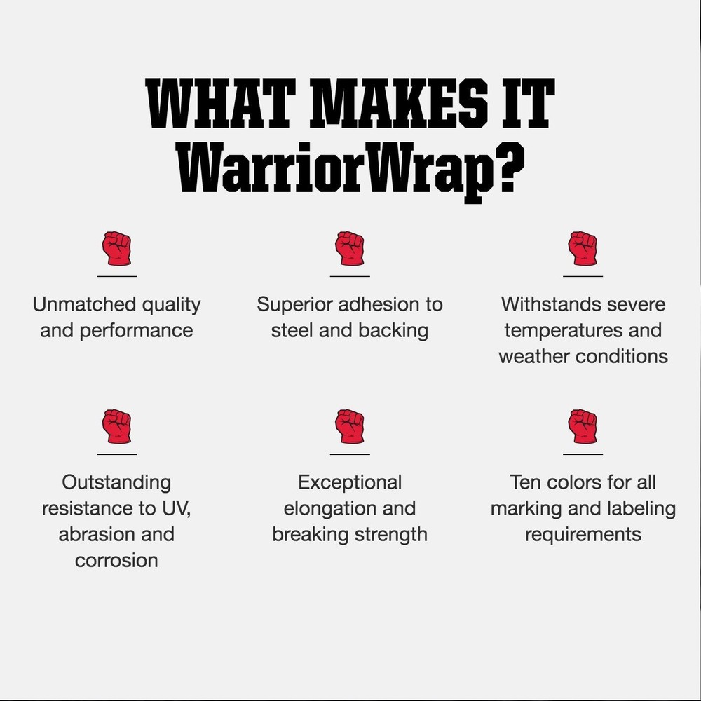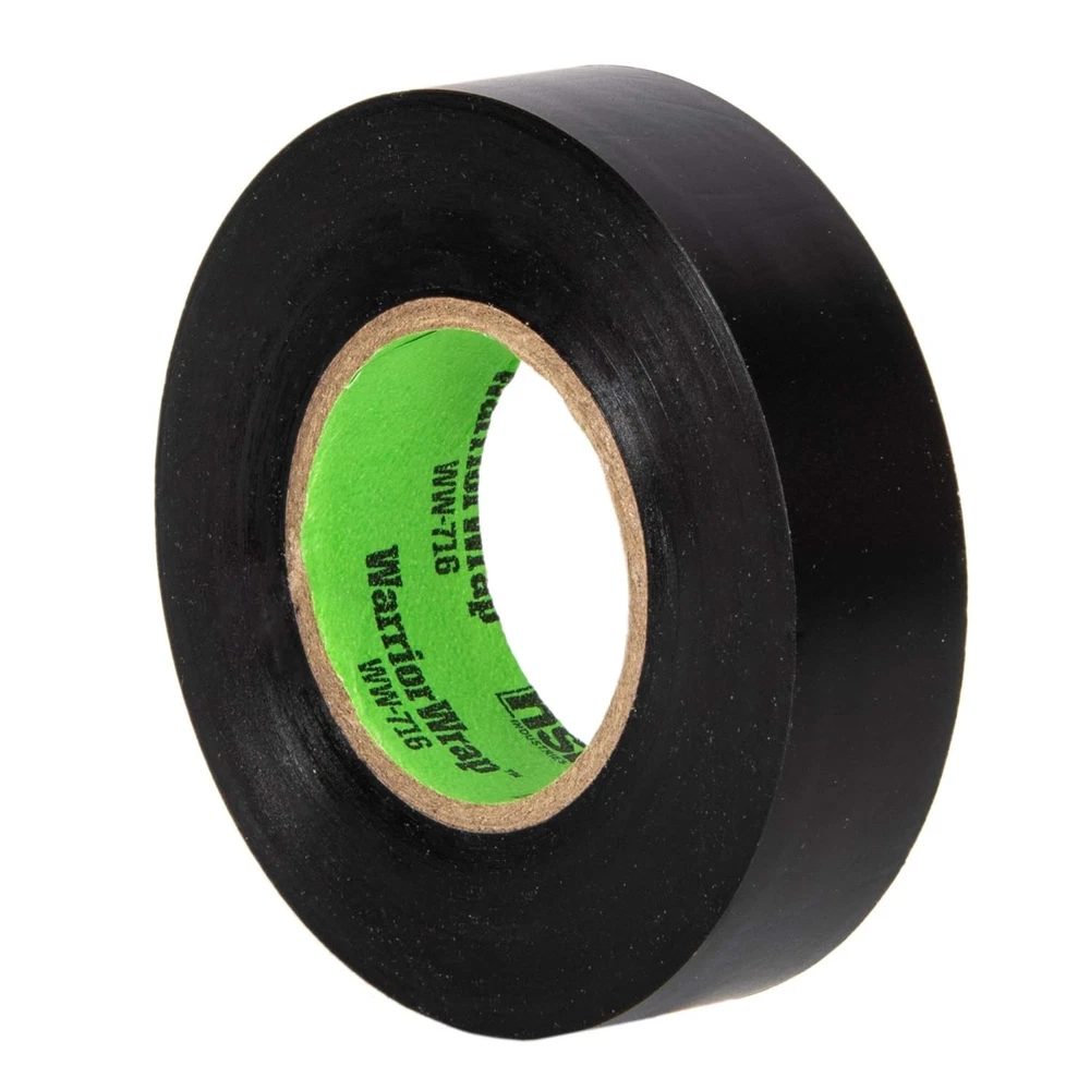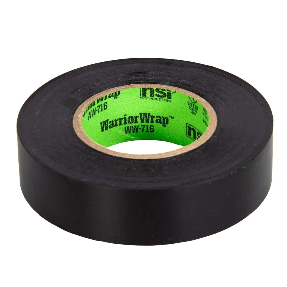 Provides secure protection withstanding all weather conditions Good adhesion, strength and elongation for indoor/outdoor use Flame retardant and resistant to harsh UV, abrasion and corrosion The Warrior Wrap General black electrical tape provides tight and secure protection with high quality and durability, combining good adhesion, elasticity and resistance for all weather conditions. This tape can wrap up every residential or commercial project from simple jobs to complex. Withstanding weather elements without flagging, cracking or losing adhesion — from below zero to scorching temperatures — this electrical tape's rugged durability is engineered to resist harsh UV rays, rain, wind and snow. The Warrior Wrap 7 mil product family is available in 10 total colors for specific project needs to help with color coding cables or labelling other items. The additional colors include brown, red, orange, yellow, green, blue, violet, gray and white. The Warrior Wrap electrical tape product line also offers Select (WW-722) and Premium (WW-732/WW-832) tapes for enhanced performance and capabilities. The Warrior Wrap Premium line offers an 8. 5 mil thickness product available in black for the most extreme environments. Warrior Wrap products are UL Listed and CSA Certified for consumer confidence, adding peace of mind to safety and quality concerns.