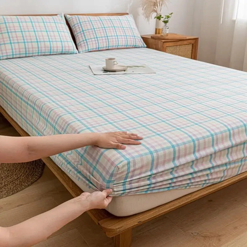 Japanese Washable Cotton Bedding Fitted Sheet Warm Full Package Non Slip Adjustable Elastic Bedspread Cover Mattress Protector