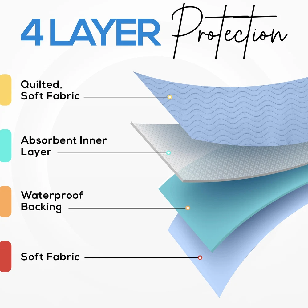 Maximum Absorbency – reusable underpads are designed for optimal fluid absorption, quickly drawing moisture away from the surface. Unlike other bed pads, it channels liquids towards the edges, providing reliable protection and helping prevent leaks, keeping beds and furniture dry. Versatile Use – These bed pads are a practical solution for managing incontinence for all ages, from kids to adults, seniors, and even pets. They're ideal as a bed pads, pet pads, or training pads, offering dependable protection for mattresses and furniture. Enhanced Fluid Control – These washable incontinence pads quickly absorbs liquids, providing a dry surface for longer periods. Its durable design can absorbs up to 6 cups of water (1600 cc). Durable & Washable – Our waterproof bed pads can be machine washed up to 500 times without losing effectiveness. They stay in place throughout the night, keeping you dry and comfortable. Multi-uses – These medical bed pads can also be used as cots and cribs mattress protector, potty training, wheelchair seat protection, pee pads, or hospital bed pads. (Packaging might slightly vary)