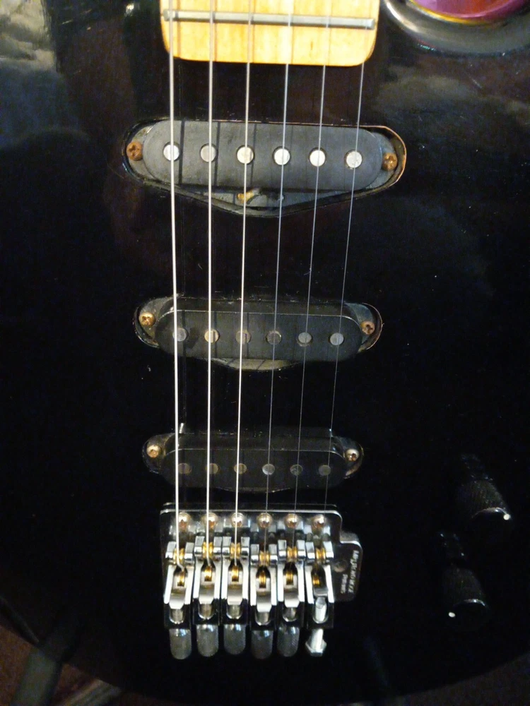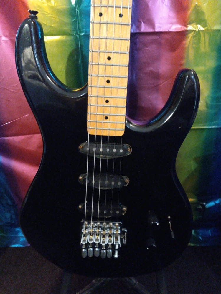 This Washburn G3v electric guitar super strat Please examine photos in gallery to best judge cosmetic condition of guitar. Some stickers were removed Some scuffs and marks throughout guitar not visible in photos. Probably a heavily gigged guitar although I was able to string it up with Slinky 8s and get it tuned. It has a floyd rose tremelo missing the tremelo arm 😢 All electronics are functional with no static in potentiometers or switch It is a vintage gem from the 80s with a black mahogany body and bolt-on neck. Its double cutaway design and offset waist provide a unique playing experience that is sure to satisfy any guitar enthusiast. The brand, Washburn, is known for producing high-quality instruments, and this model is no exception. The guitar's body material and color are the perfect combination for a stylish instrument. The Washburn G3v is a great choice for anyone looking for a high-quality electric guitar that can handle any musical genre. This guitar is perfect for musicians who want to elevate their playing and stand out from the crowd. offset double cutaway mahogany body, bolt-on Canadian rock maple neck, 22-fret maple fingerboard with dot inlays, pointy headstock with six-on-one-side tuners, Fine Tune Washburn tremolo with locking nut, three single coil pickups, two knobs, five-way switch, chrome hardware, available in various finishes, mfg. 1987-88. Please ask for more photos or information if needed Thank you, Anthony