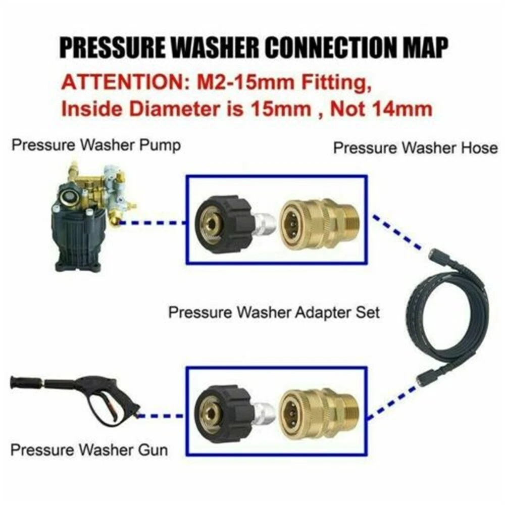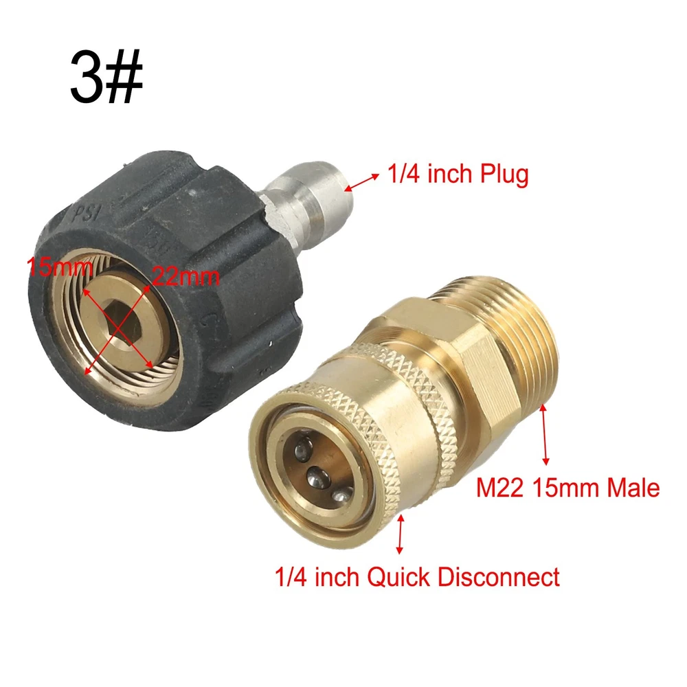 Washer Adapter Pressure Washer Adapter Set Hose And Pump Quick Connect DESCRIPTION Features: *. for spray tool, hose and pump, can convert M22 thread connection to 3/8 " 1/4'' quick connector; *. Compatible with most M22 and quick connection accessories on the pressure washer; *. Replace the connector to provide a safe and fast connector, easy to connect and disconnect. Specifications: Material: plastic + brass + stainless steel Maximum working pressure: 5000 PSI Type :Pressure Washer Adapter Set Package Contents1#: 2PCS M22 14mm to 3/8inch Package Content #: 2PCS M22 14mm to 1/4inch Package Contents3#: 2PCS M22 15mm to 1/4inch Package Contents4#: 2PCS M22 15mm to 3/8inch Package Contents5#: 1PCS M22 14mm to 15mm POLICES Shipping Payment WARRANTY We only ship to confirmed ebay Order addresses. Please comfirm that your Order address is in line with your shipping address. Please kindly note that the c ombined shipping is not provided because the shipping fee is calculated by weight. Also, the each additional item means exactly the the same color and size. It takes about 7 -15 working days to US; about 10-30 working days to other countries. Transit time may be a little delayed because of the bad weather and customs inspection . If you do not receive your item within 30 working days since payment finished, please contact us immediately for further assistance. Payment must be completed within 5 days. If you have any problems about payment, please contact us via ebay message. We strive for 100% customer satisfaction! Positive Feedback is very important to us. If you have any questions, p lease feel free to contact us via "Ask seller a question" . We will reply your email within 24 working hours. On Jan 22, 2025 at 21:43:55 PST, seller added the following information: