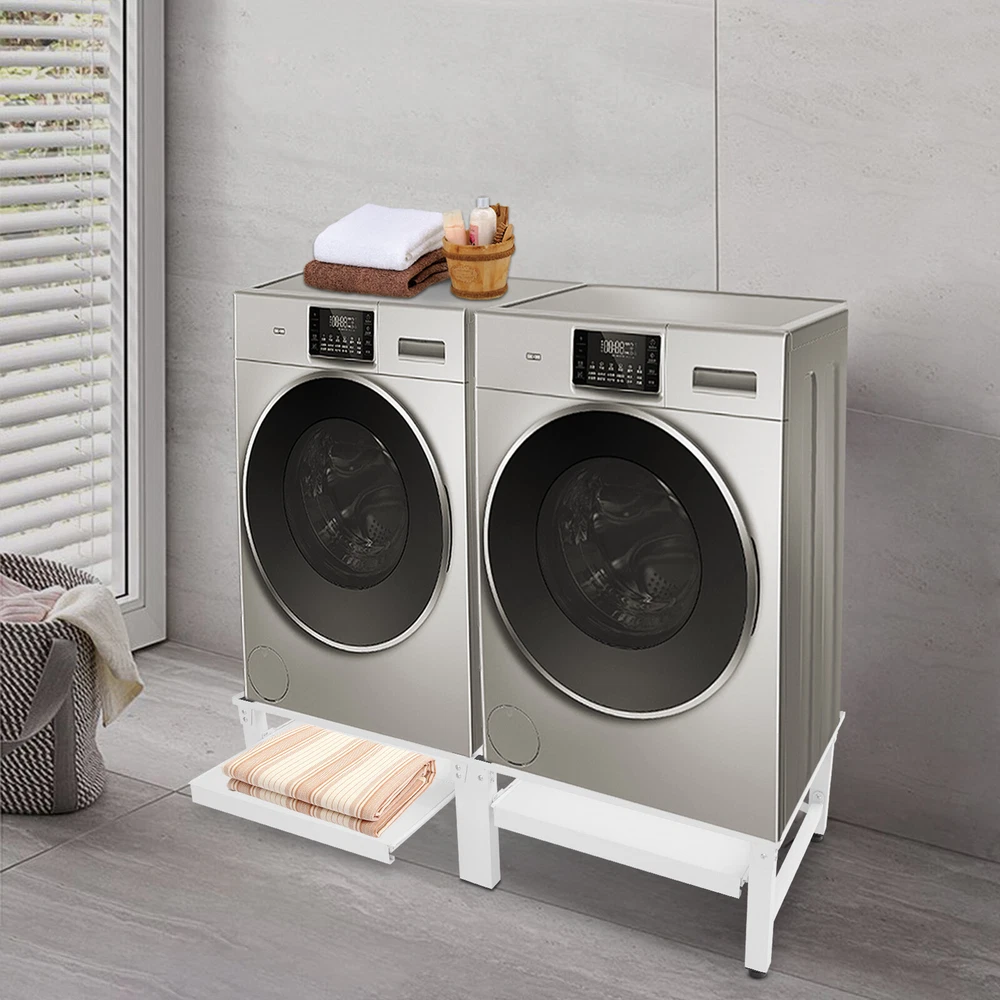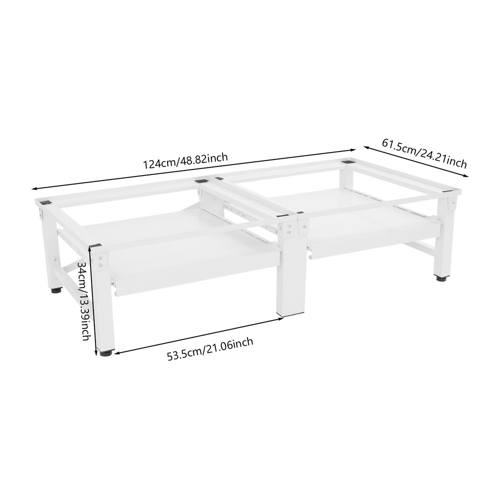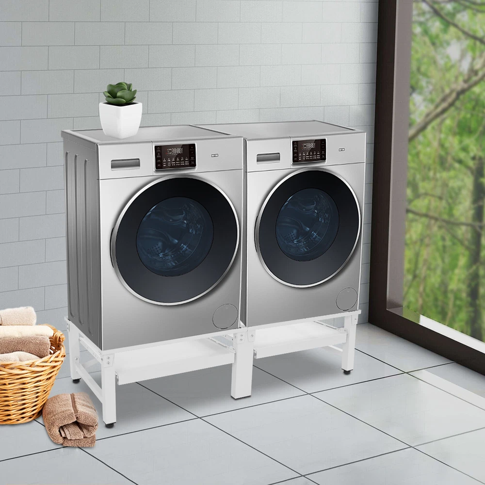 Washing Machine Pedestal Washer and Dryer Stand Adjustable Washing Machine Stand Description Placing a washing machine or refrigerator directly on the floor may cause rust at the bottom due to accumulated water and make it difficult to clean the bottom area. Our washing machine stand is a great solution to these worries. With its sturdy structure and strong load-bearing capacity, it can lift your appliances well. It can hold two washing machines or dryers at the same time, meeting your usage needs. With this product, you can make your home life easier and more convenient. Key Features Build to Last : Premium stainless steel, EVA, and exquisite painting process make the product rust-resistant, scratch-resistant , and sturdy, ensuring long-term use. Strong Load-bearing Capacity : The thick materials, stable rectangular construction, and sturdy support tubes allow this product to hold up to 330.69 lbs, so you can rest assured that it will hold a heavy-duty refrigerator, washing machine, and more. Great Home Helper : This stand can hold two washing machines or dryers at the same time, helping raise them to a more suitable working height, so you don't have to bend down too much to remove the clothes from it. It also allows for easy cleaning of the bottom of the machine, preventing electrical appliances from getting damp and rusting. Thoughtful Design: The two shelves pull out smoothly and quietly and can hold up to 8.82 lbs of weight, which can be used to place laundry baskets and other items for added storage capacity. Modern Appearance : The classic white color and smooth lines give this stand a simple and modern appearance, making it suitable for most usage scenarios. Easy to Assemble : The simple structure, complete accessories, and a detailed English diagram allow you to quickly finish the installation and start using it. Labor-saving Cleaning: With its simple construction and smooth surface, you can simply rinse it with water or wipe off surface dust with a damp rag (not included). Protective Package: To prevent the product from being damaged and bumped during transportation, we packed it with foam, bubble bags, and paper corner protectors to protect your products to the maximum extent possible. Good Customer Service: We stand behind all our guests and look forward to assisting you with your purchase. It is our pleasure to answer your confusion and questions. The end of the story between us is not "we sell and you buy". Details Shock-absorbing Mats: They can effectively alleviate the vibration generated by the washing machine during dehydration and protect them from scratches. Raised Edges: The raised edges can prevent slipping and enhance stability during use. Adjustable Feet: The foot pads can be fine-tuned in height to accommodate uneven floors and they can reduce the movement that occurs when the washing machine is spinning. Application Its universal size is compatible with most washing machines and dryers and can be used in homes, restaurants, dormitories, dry cleaners, and laundries to lift and secure refrigerators, washers, dryers, freezers, planters, cabinets, or other furniture. Specifications Color: White Material: Stainless Steel, EVA Process: Painting Shape: Rectangle Style: Modern Assembly Required: Yes Mounting Type: Floor Standing Load-bearing Capacity: 150kg/330.69 lbs Bottom Shelves Bearing Capacity: 4kg/8.82 lbs Each Stand Length: 53.5cm/21.06in Product Size: 124*61.5*34cm/48.82*24.21*13.39in Package Size: 71.5*33*16cm/28.15*12.99*6.3in Gross Weight: 15.7kg/34.61 lbs Net Weight: 14.92kg/32.89 lbs Package Included 1* Washing Machine Stand 4* Foot Pads 1* English Diagram All Accessories for Installation Notes Please check the size carefully before ordering. It is not recommended to adjust the bottom foot pad too high, otherwise it will affect the load-bearing capacity. Please allow the slight color difference caused by the shooting light and the 1-3 cm error due to manual measurement, and make sure you do not mind before ordering. Payment Delivery details Terms of sales About us Contact us Payment We accept ebay payment 。 Fees such as import duties, taxes are not included in the item price or shipping costs. These charges are the buyer's responsibility. Delivery details Shipping: 2-9 working days to: USA Terms of sales We maintain high standards of excellence and strive for hundred percent customer satisfaction. Feedback is very important to us. We hope that you contact us immediately before you give neutral or negative feedback, so that we can address your concerns. It is impossible to address issues if we do not know about them! About us Your satis faction is our ultimate goal. We work hard to earn your trust and future business. Our certified technicians have tested each item before shipping. The unit comes with 1 year limited warranty on all manufacturing defects. a) If you receive a defective item, you may return it or ask for a discount. Please contact us within 14 days after you receive the package. b) What you returned must be intact and in its original packaging as re? u. Customer is responsible for shipping costs of the returned item. c) We will cover the cost of shipping back t with the shipping rate indicated in the registration page. We will send you a new unit or refund the full payment you paid. Thank you. Contact us Business Hour Business Hour: Monday To Friday: 8:30 AM to 5:00 PM (Beijing China time) Due to time zones, our reply to your questions may not be immediately. But within above working time, we will reply your email within 24 hours. If it's non-workdays, please kindly be patient and wait till Monday. Please contact us with ebay message. Please feel free to contact us if you have any questions. Monday To Friday: 8:30 AM to 5:00 PM (Beijing China time) Due to time zones, our reply to your questions may not be immediately. But within above working time, we will reply your email within 24 hours. If it's non-workdays, please kindly be patient and w