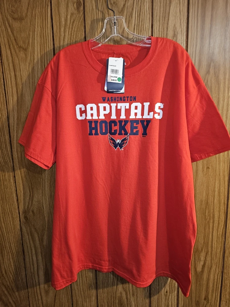 Show off your love for the Washington Capitals with this brand new, officially licensed NHL t-shirt from Fanatics. This vibrant red shirt features the team's graphic logo prominently on the chest, making it the perfect addition to any fan's wardrobe. Constructed with high-quality materials in Nicaragua, this men's 2XL shirt is perfect for regular season games and beyond. Whether you're at the stadium or just out and about, this t-shirt is sure to make a statement and show your support for the Capitals.