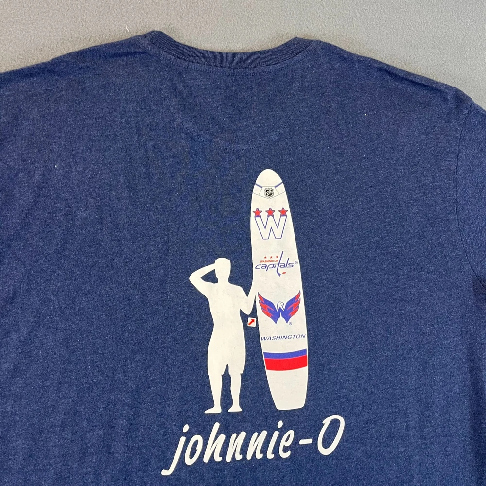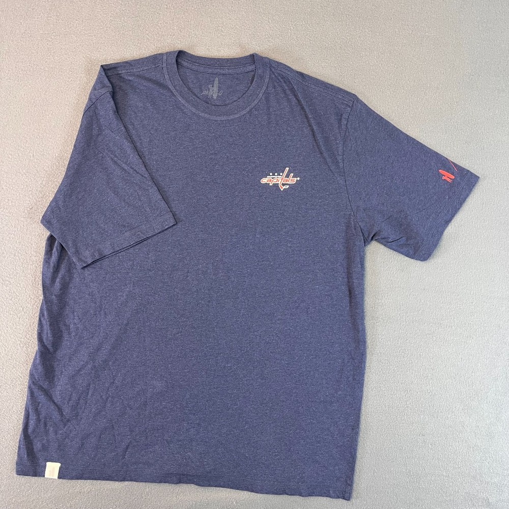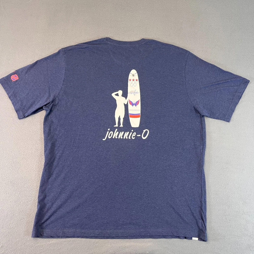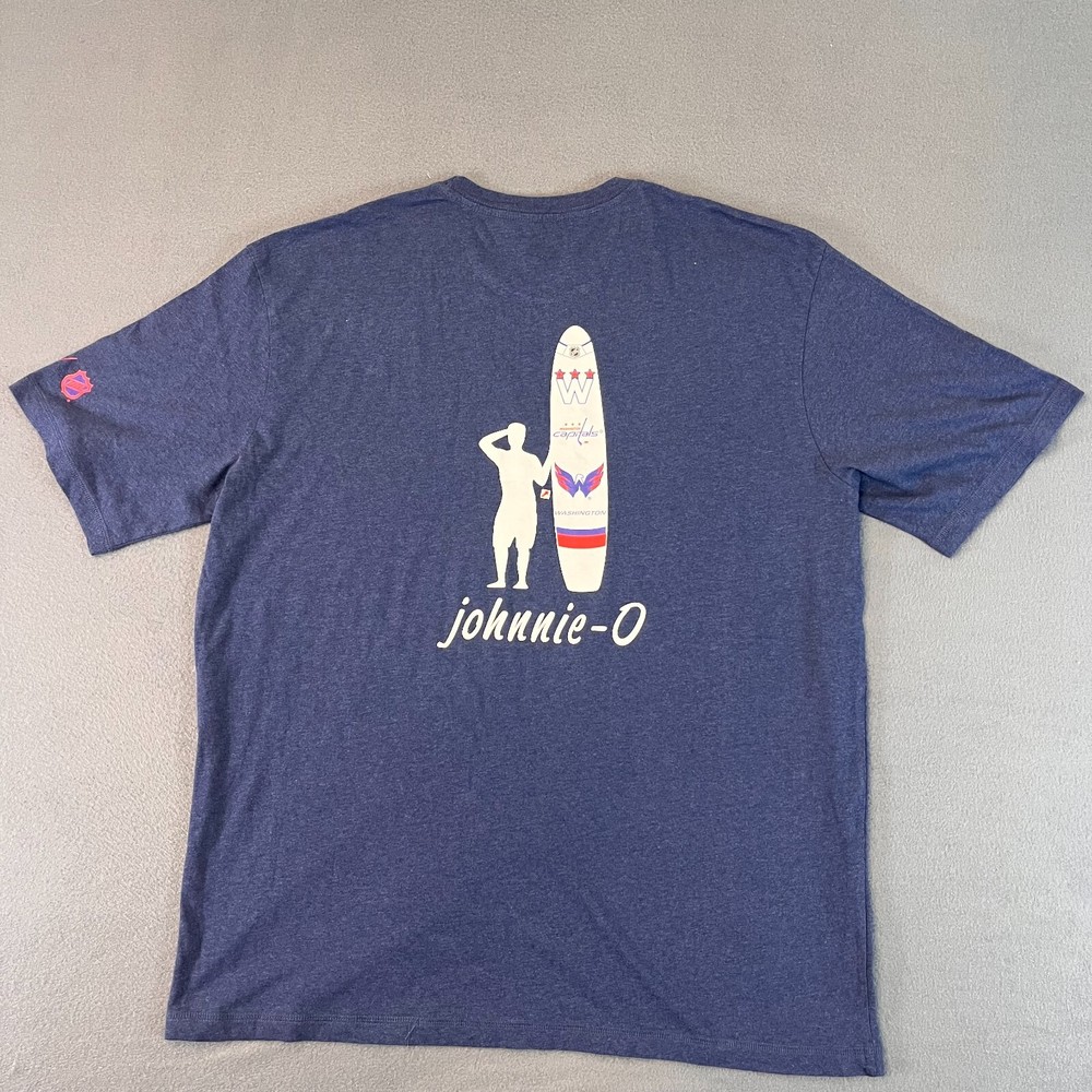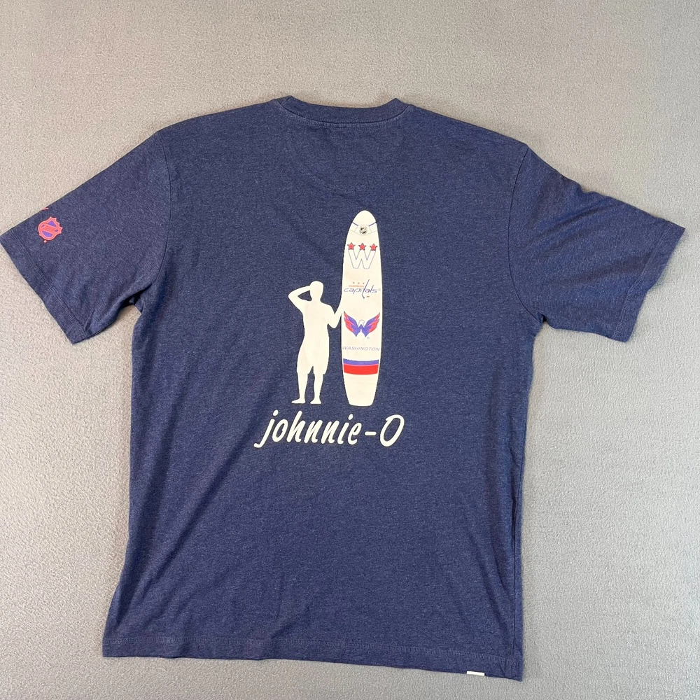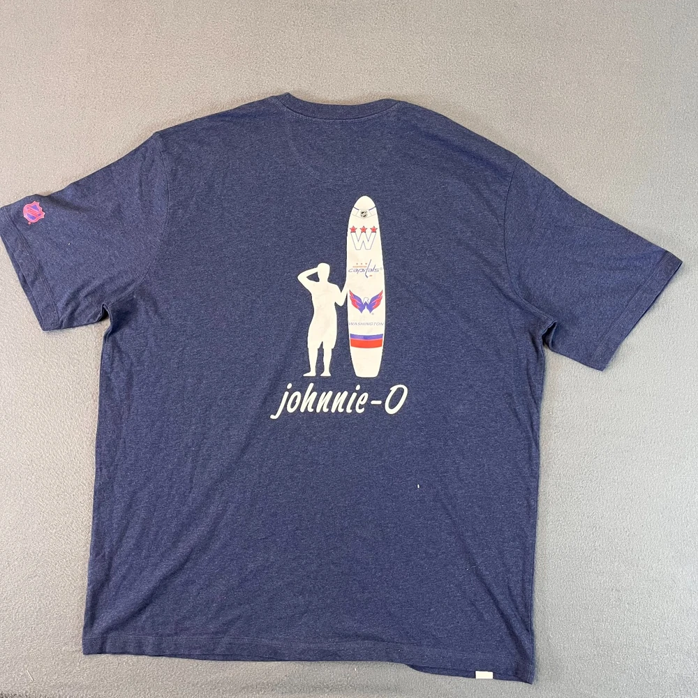 Item is New Without Tag Measurements are approximate S - Chest 38 in, Front Length 25.5 n L - Chest 42 in, Front Length 27.5 in XL - Chest 46 in, Front Length 28.5 in XXL - Chest 48 in, Front Length 30 in Crafted for the dedicated hockey fan, this johnnie-O Washington Capitals T-Shirt is a must-have addition to any enthusiast's wardrobe. The shirt features a stylish blue hue that proudly represents the team, complemented by a bold graphic that showcases your support for the NHL's Washington Capitals. In men's size XXL, this officially licensed NHL apparel is designed for both comfort and style. Whether you're at the game or out with friends, this tee is an ideal choice for displaying your team spirit while enjoying the sport you love.