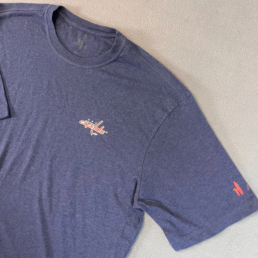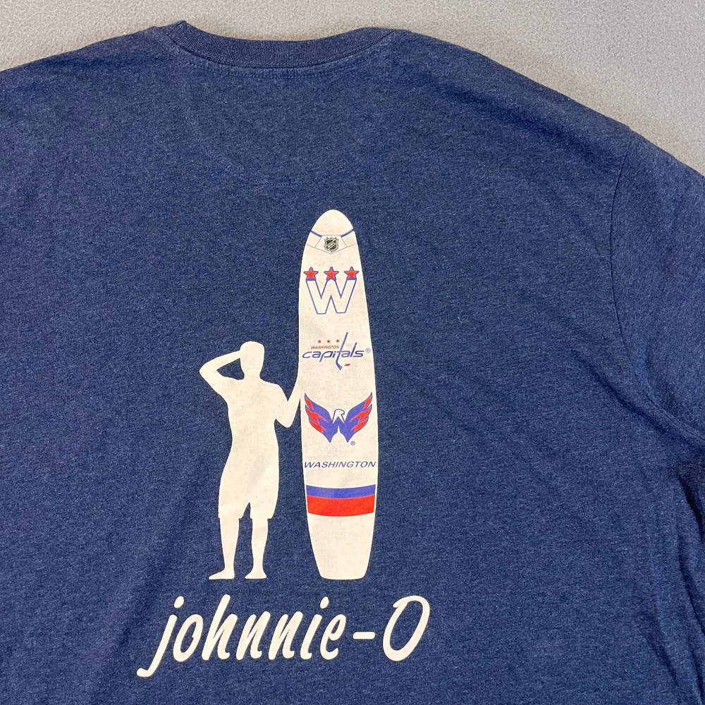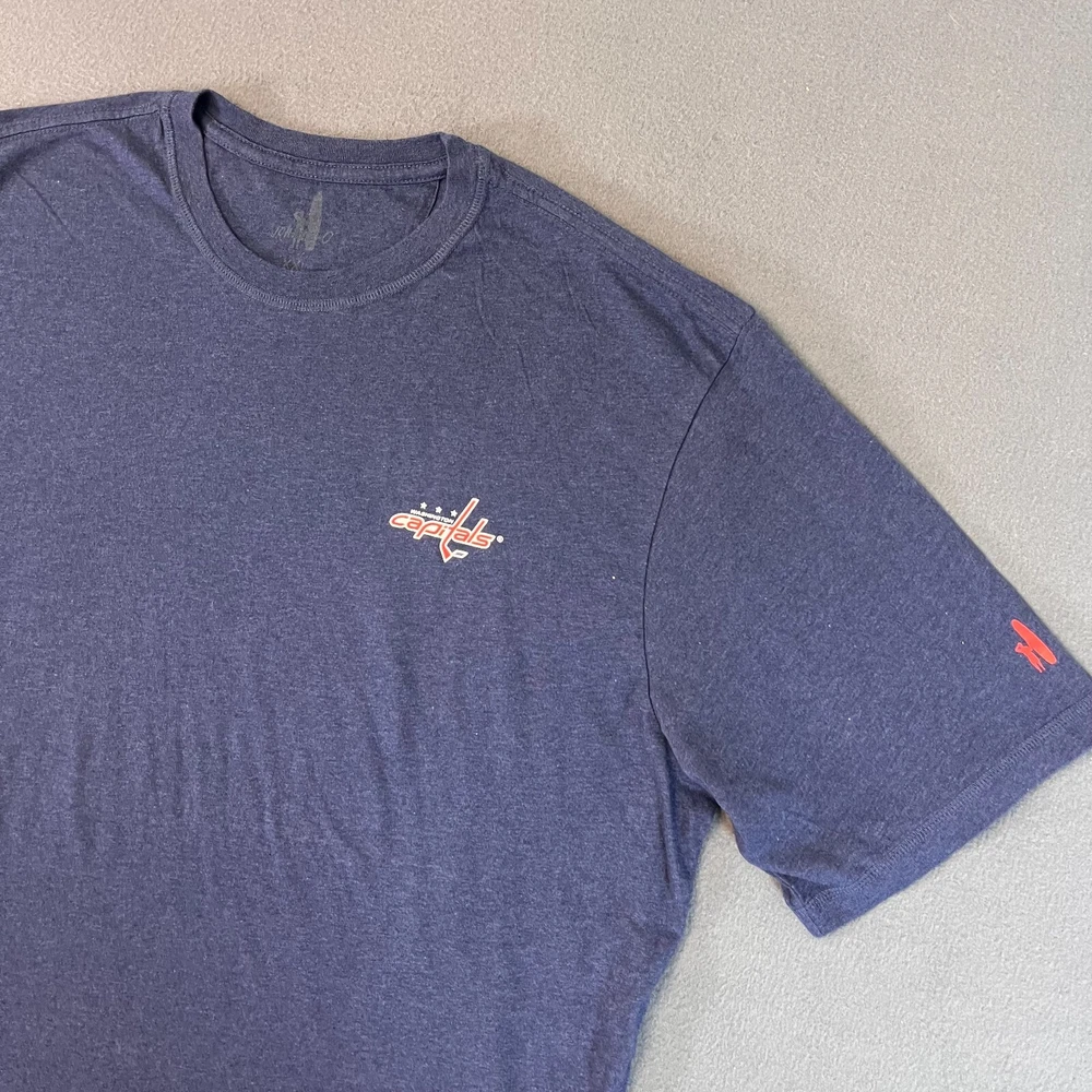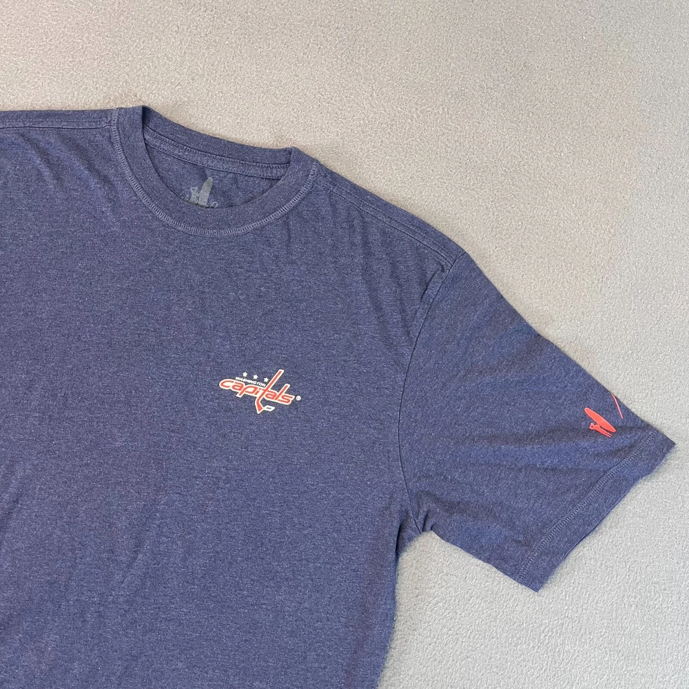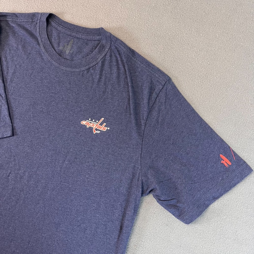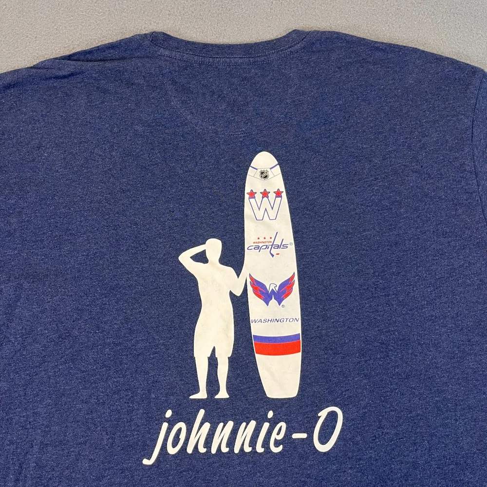 Item is New Without Tag Measurements are approximate S - Chest 38 in, Front Length 25.5 n L - Chest 42 in, Front Length 27.5 in XL - Chest 46 in, Front Length 28.5 in XXL - Chest 48 in, Front Length 30 in Crafted for the dedicated hockey fan, this johnnie-O Washington Capitals T-Shirt is a must-have addition to any enthusiast's wardrobe. The shirt features a stylish blue hue that proudly represents the team, complemented by a bold graphic that showcases your support for the NHL's Washington Capitals. In men's size XXL, this officially licensed NHL apparel is designed for both comfort and style. Whether you're at the game or out with friends, this tee is an ideal choice for displaying your team spirit while enjoying the sport you love.